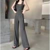 Pantalones de mezclilla con tirantes de cintura alta para chica caliente, atmósfera, pantalones de verano para mujer, nicho, corte ajustado, adelgazantes, versátiles, temperamento, rectos, de pierna ancha