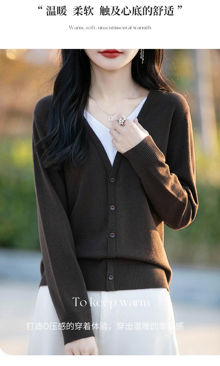 Primavera 25 Nuevo Cárdigan de Punto de Lana Peinada con Cuello en V, Combinación de Colores, Diseño Holgado Versátil, Top Falso de Dos Piezas