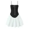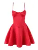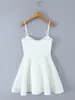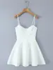 Estilo Europeo y Americano Sexy Cuello en V con Varillas Cintura Falda Tutú Vestido con Tirantes Verano Sexy Ajustado Color Puro Vestido Falda Corta