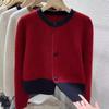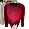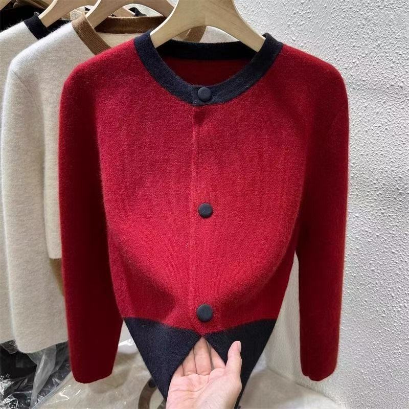 Diseño Sentido Primavera y Otoño Nicho Bloque de Color Cálido Cárdigan de Punto Otoño e Invierno Nuevo Cuello Redondo Prendas de Punto Holgadas Abrigo Top