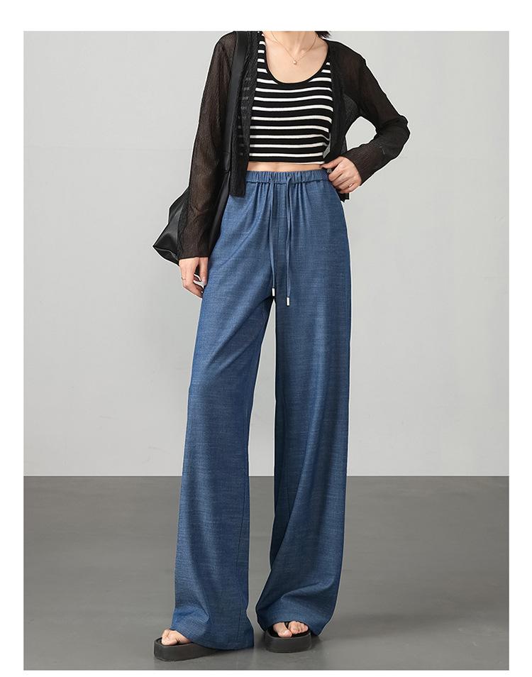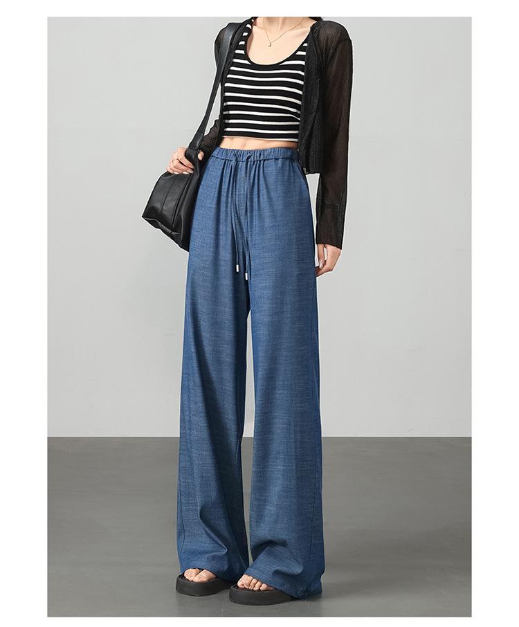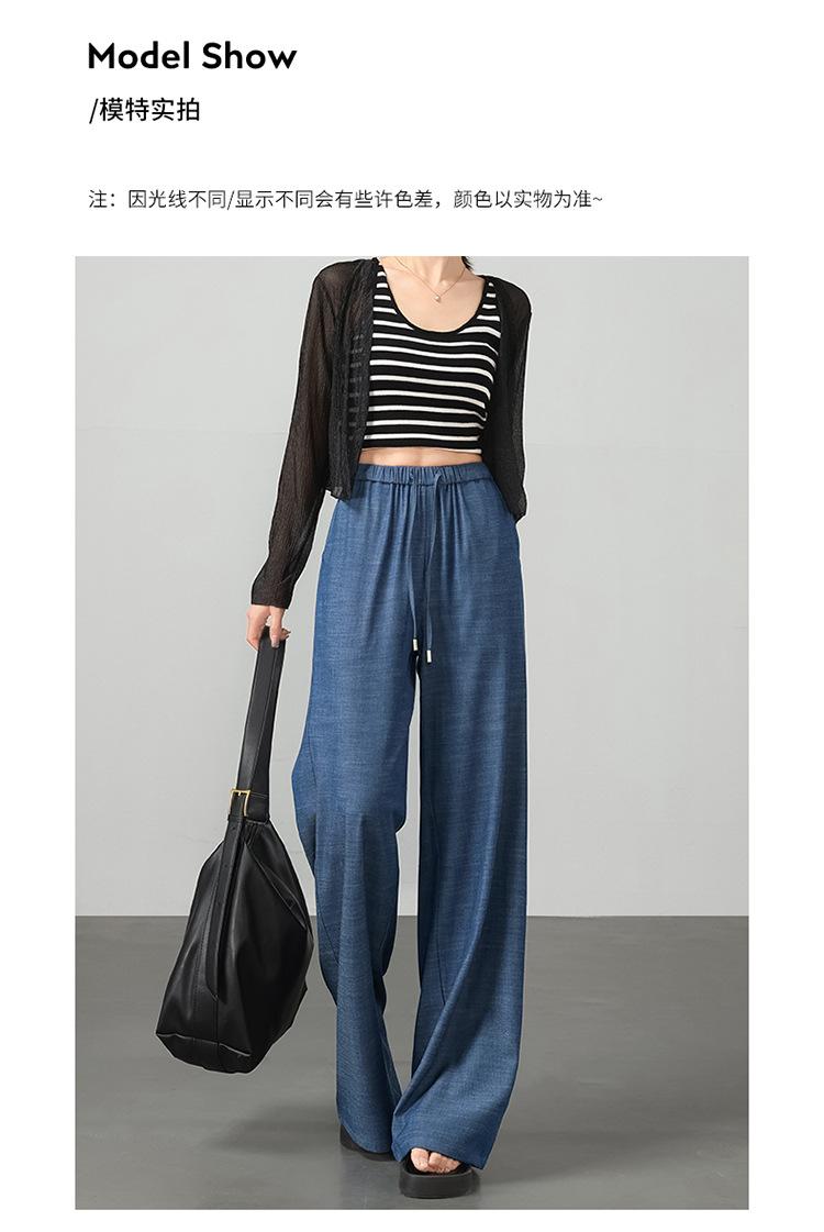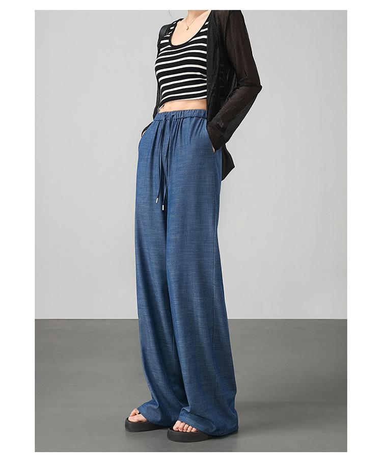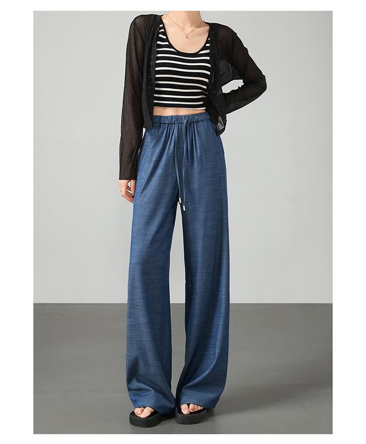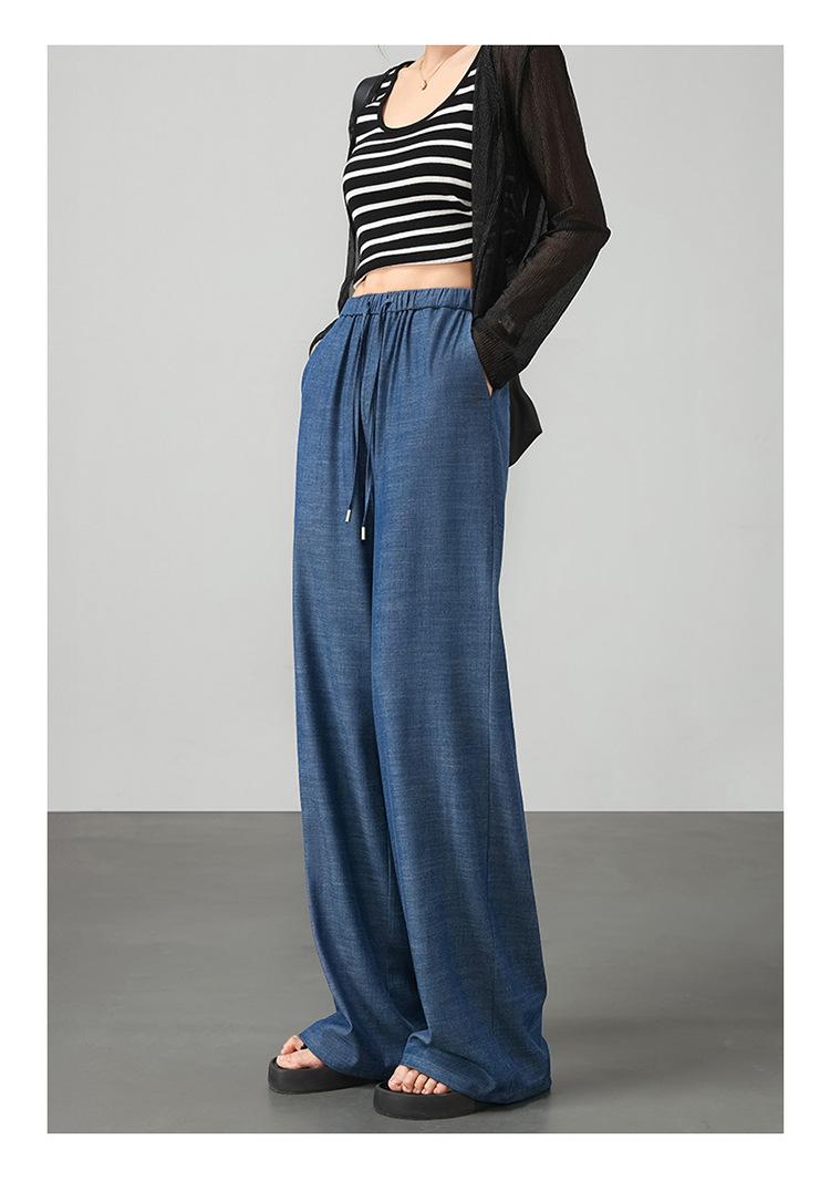 Pantalones de pierna ancha transfronterizos para mujer, sentido de caída de alta gama 2025 nuevos pantalones rectos casuales de seda helada delgada de verano para mujer