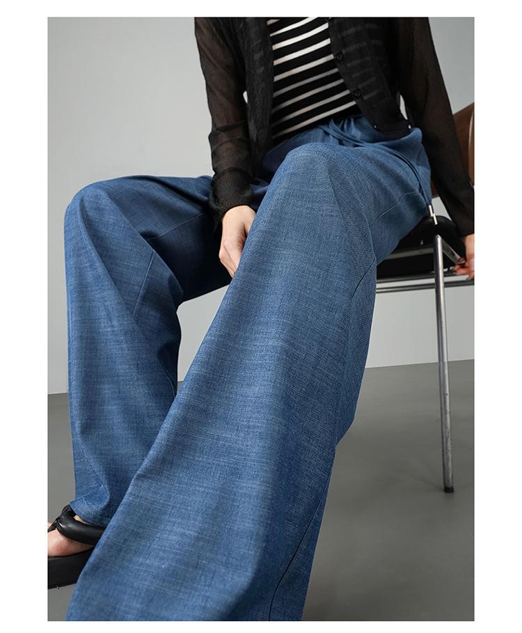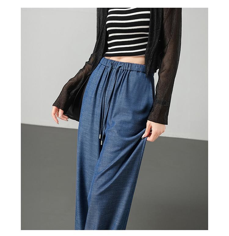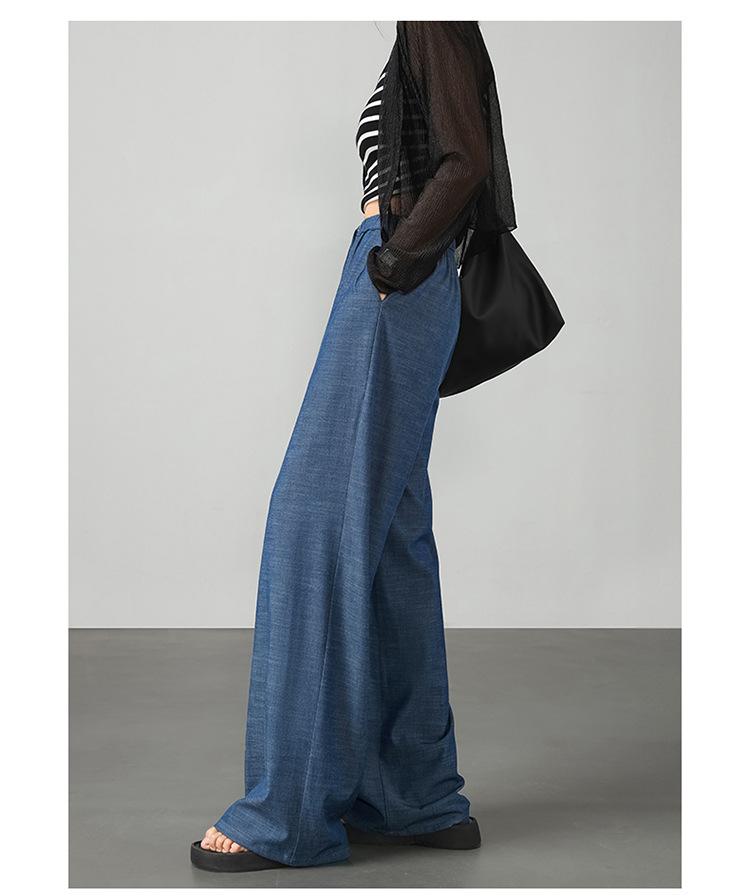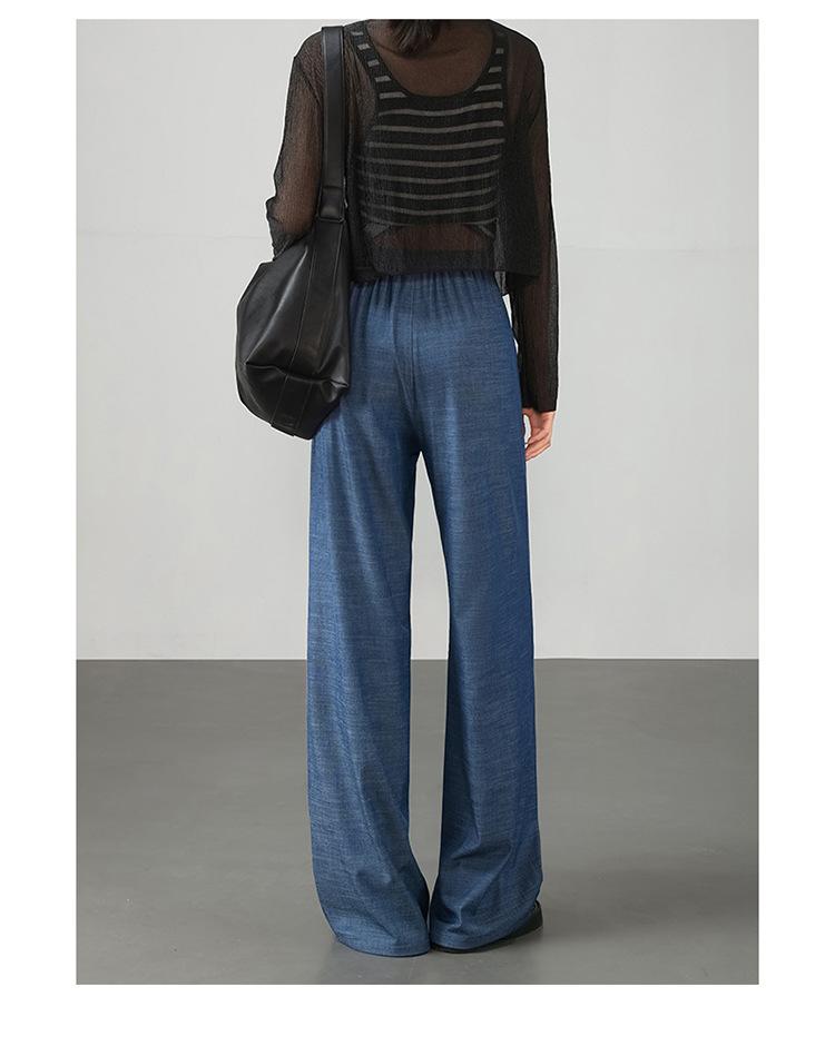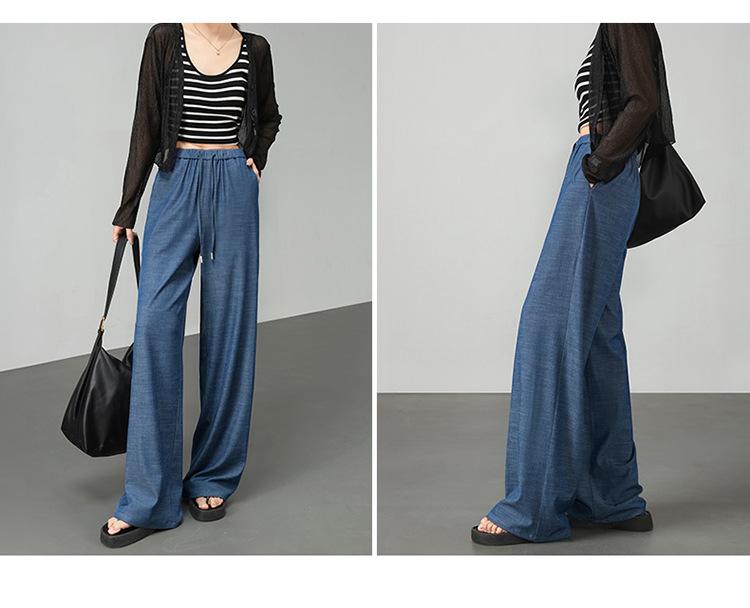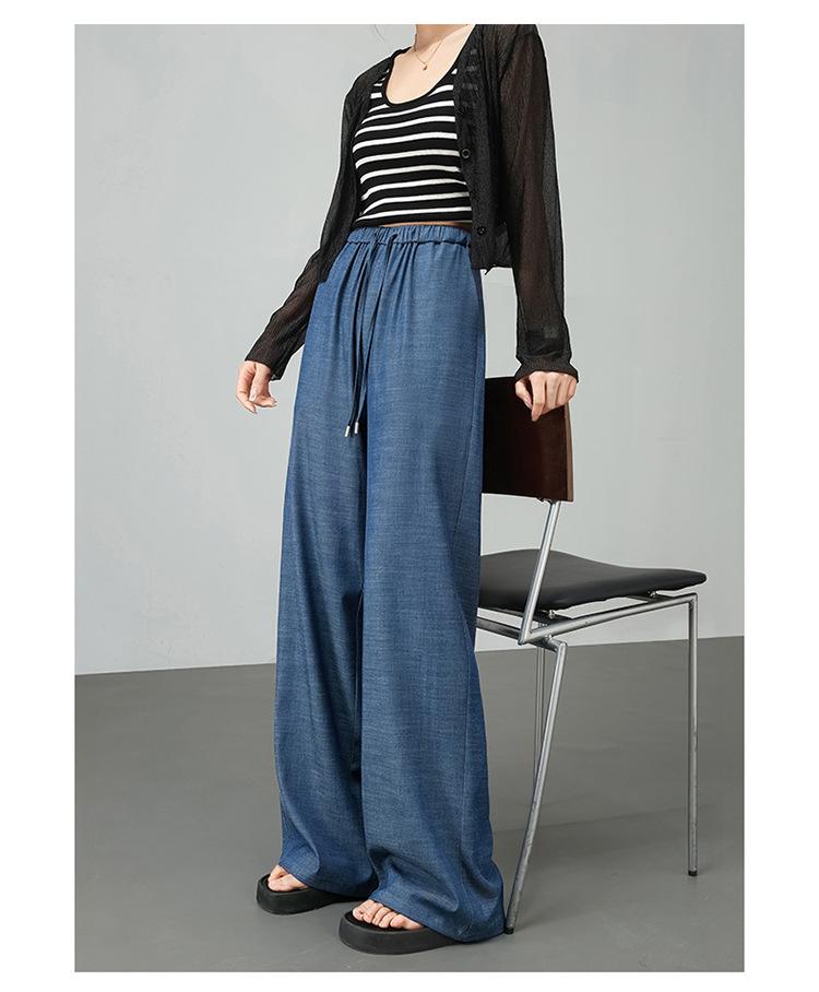 Pantalones de pierna ancha transfronterizos para mujer, sentido de caída de alta gama 2025 nuevos pantalones rectos casuales de seda helada delgada de verano para mujer