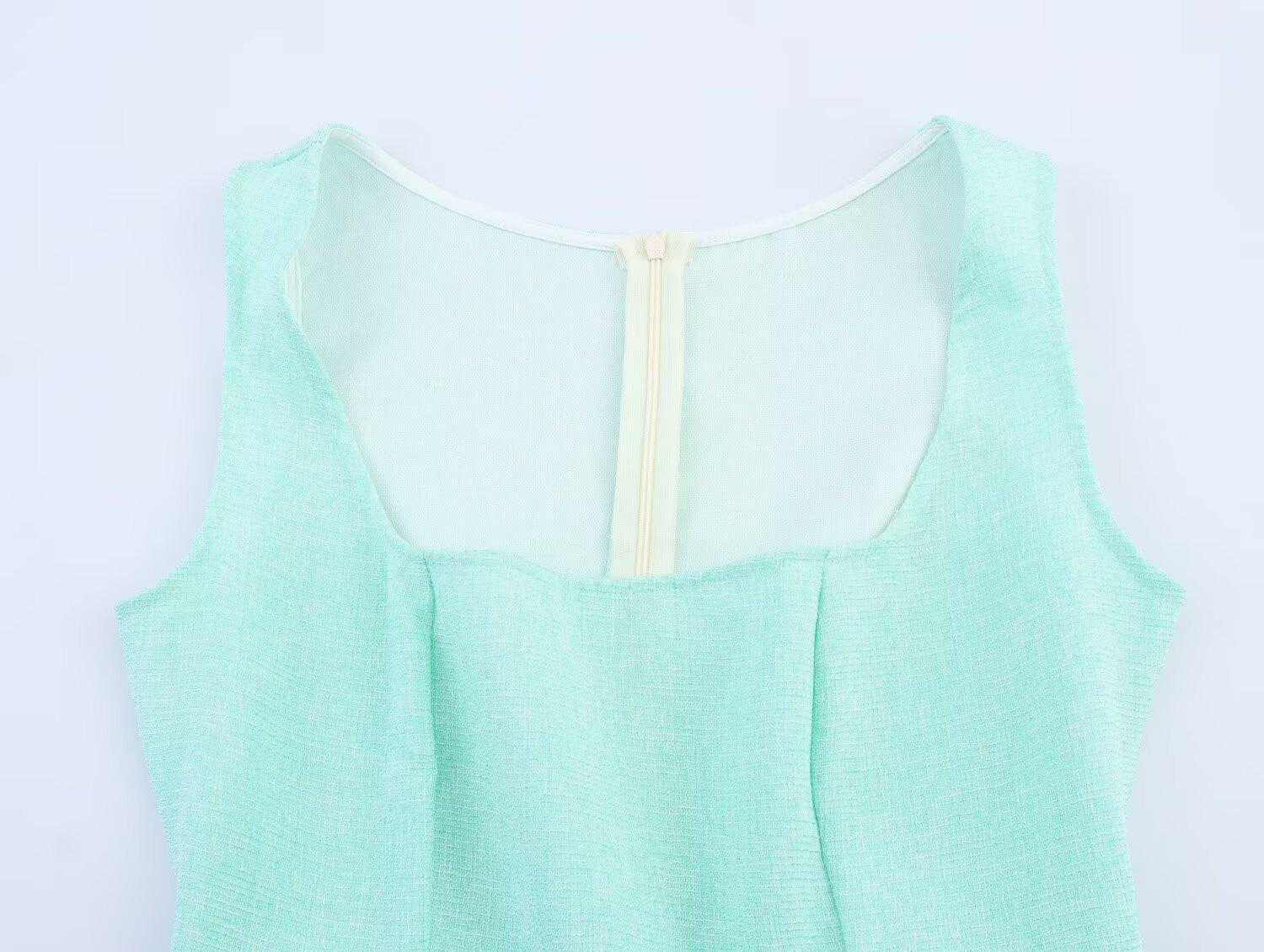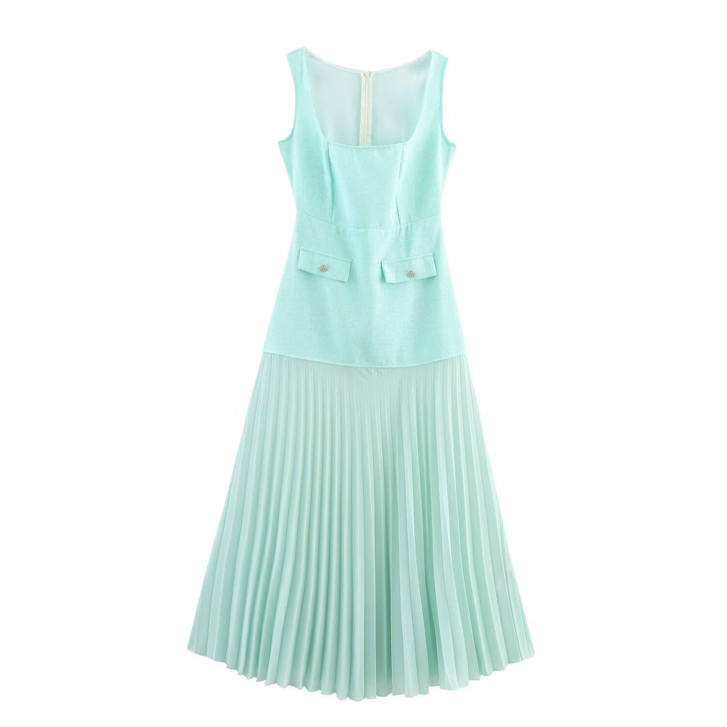 Z Transfronterizo Europeo y Americano 2025 Verano Nuevo Vestido de Tirantes sin Mangas Estilo Retro Francés Dobladillo Plisado