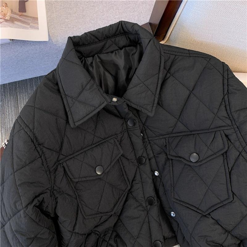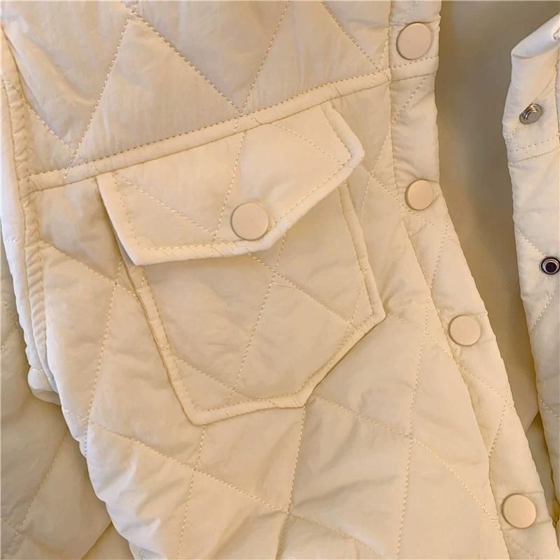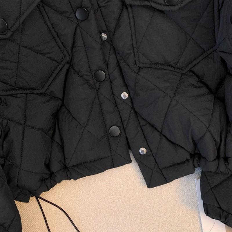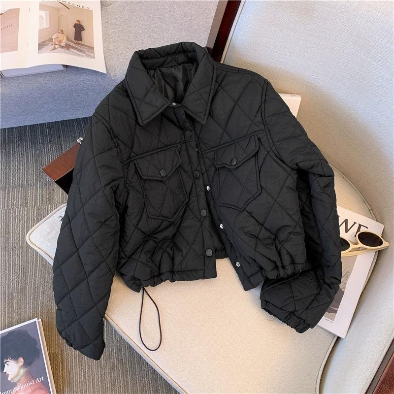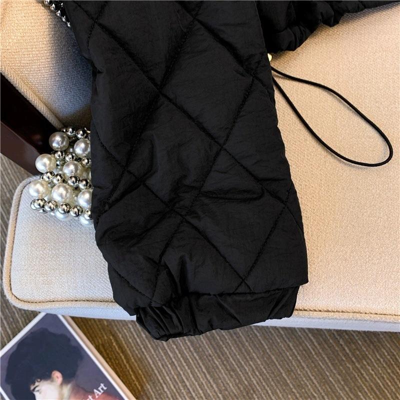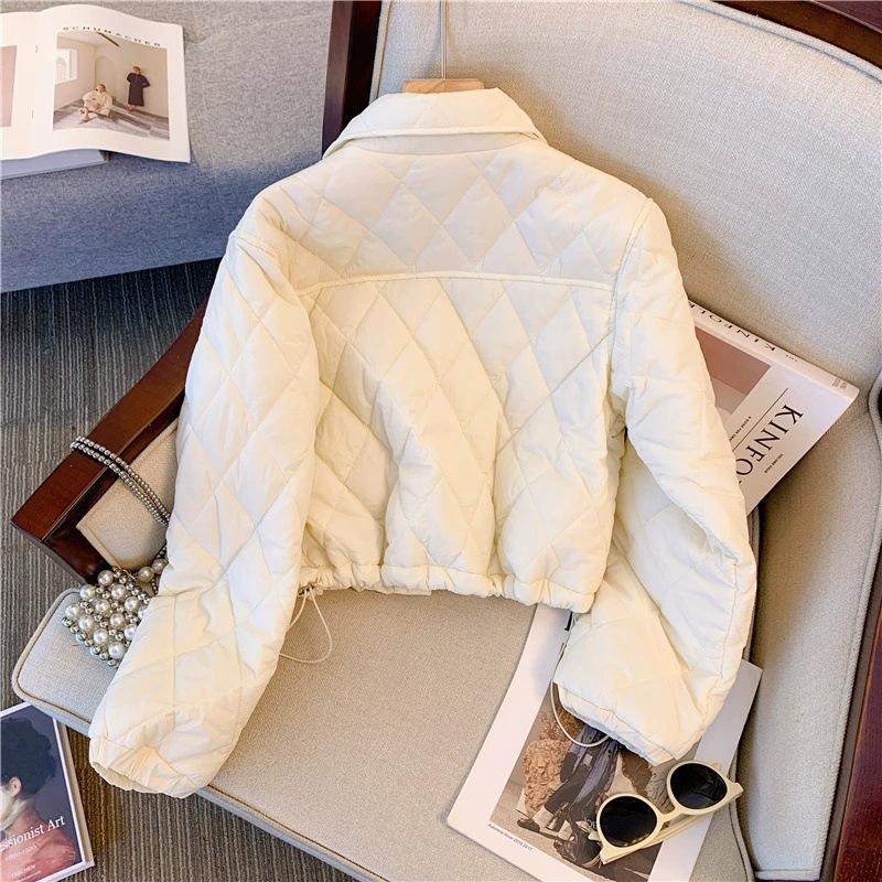 Diseño Grueso de Otoño e Invierno Cordón Rombos Chaqueta Corta de Traje de Béisbol para Mujer Nuevo 2024 Ropa de Algodón Cálido