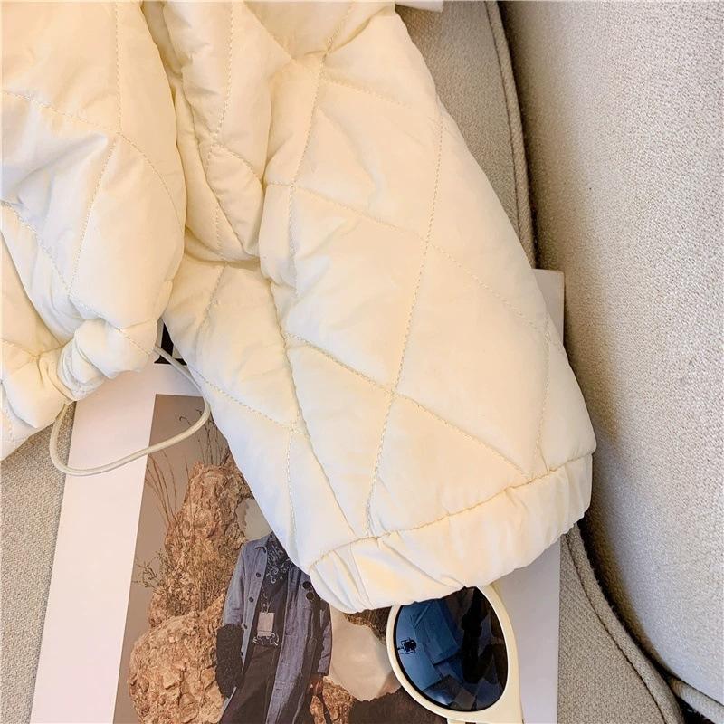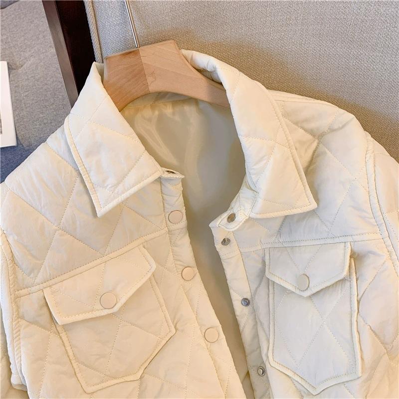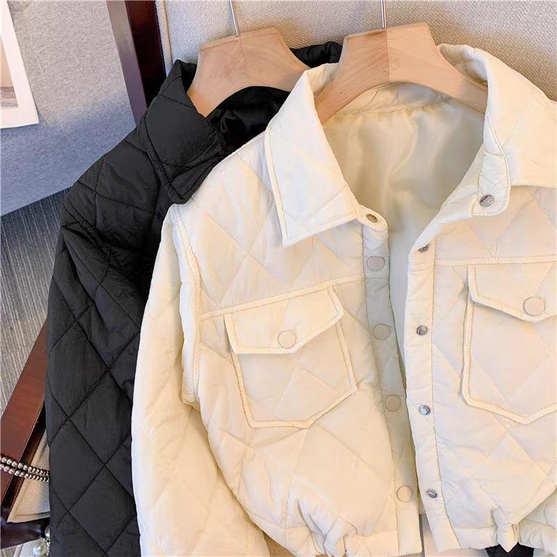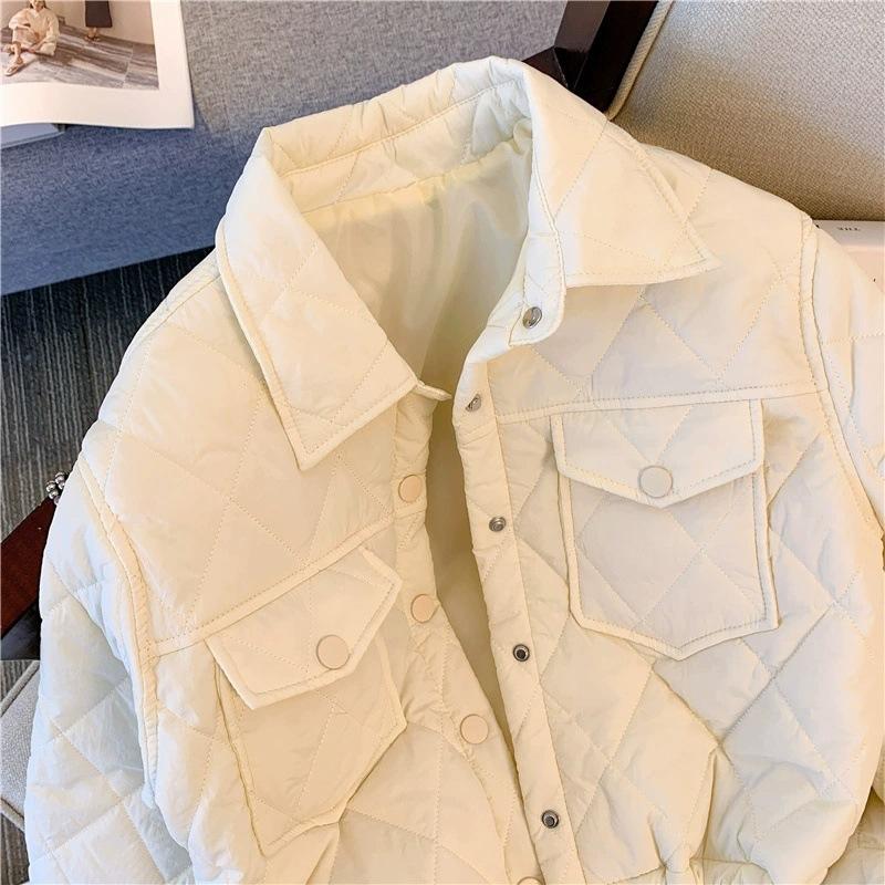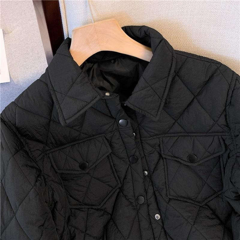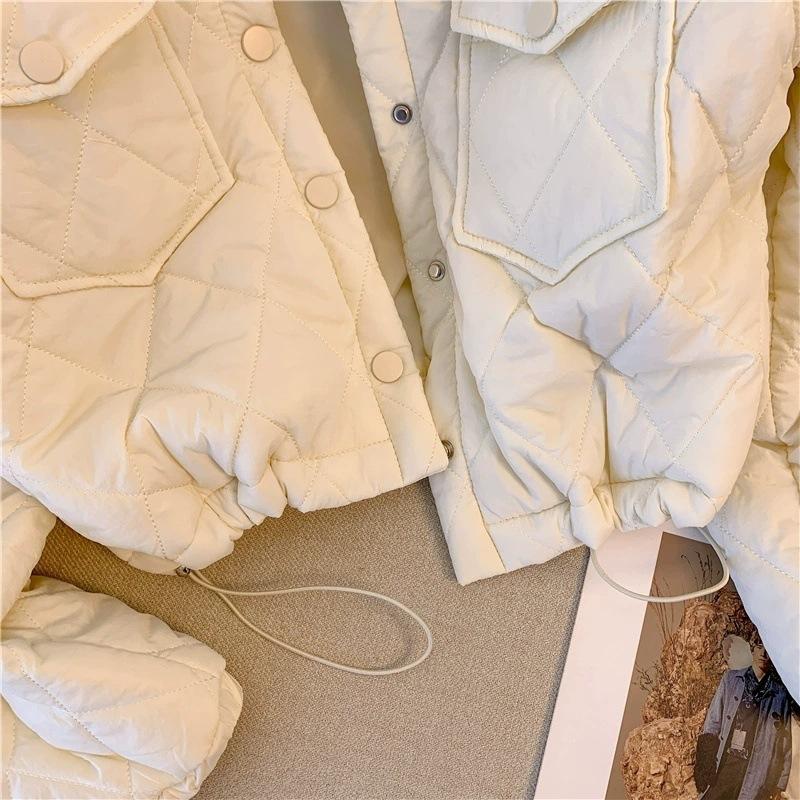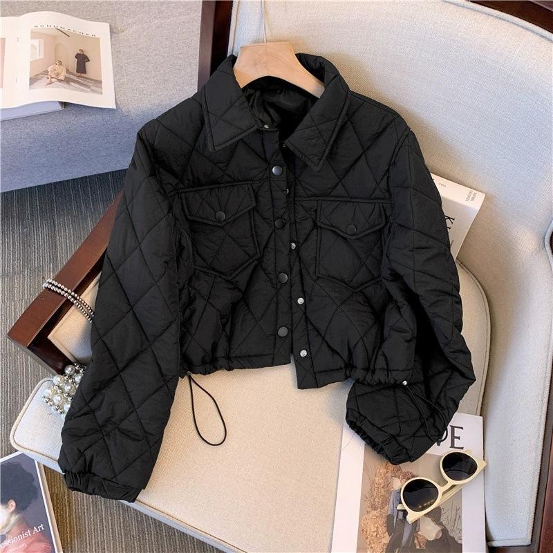Diseño Grueso de Otoño e Invierno Cordón Rombos Chaqueta Corta de Traje de Béisbol para Mujer Nuevo 2024 Ropa de Algodón Cálido
