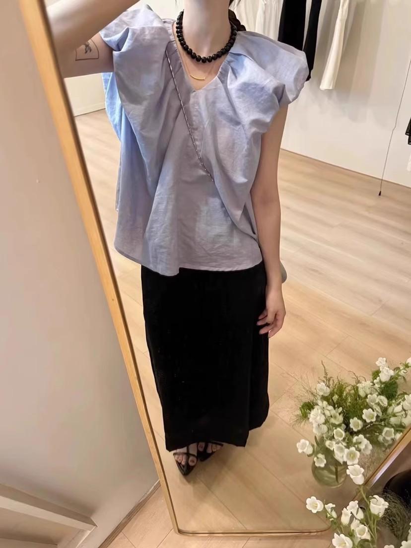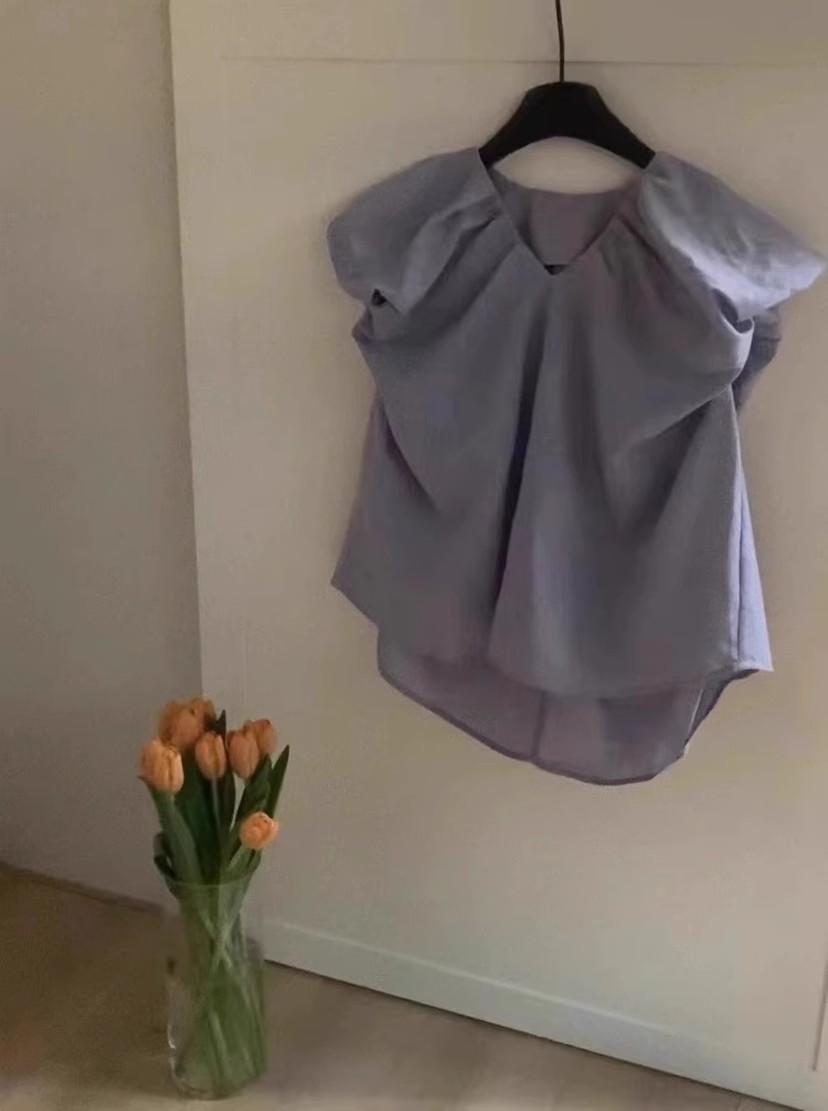 Ropa de Verano Nueva para Mujer 2024 Estilo Coreano Sentido del Diseño Nicho Camisa de Manga Corta Combinable Sencilla Cuello en V Top Plisado Moderno