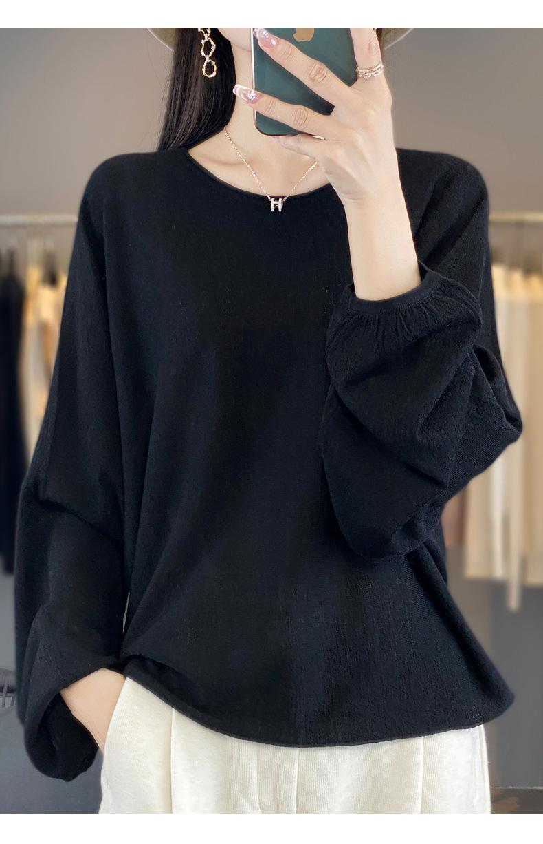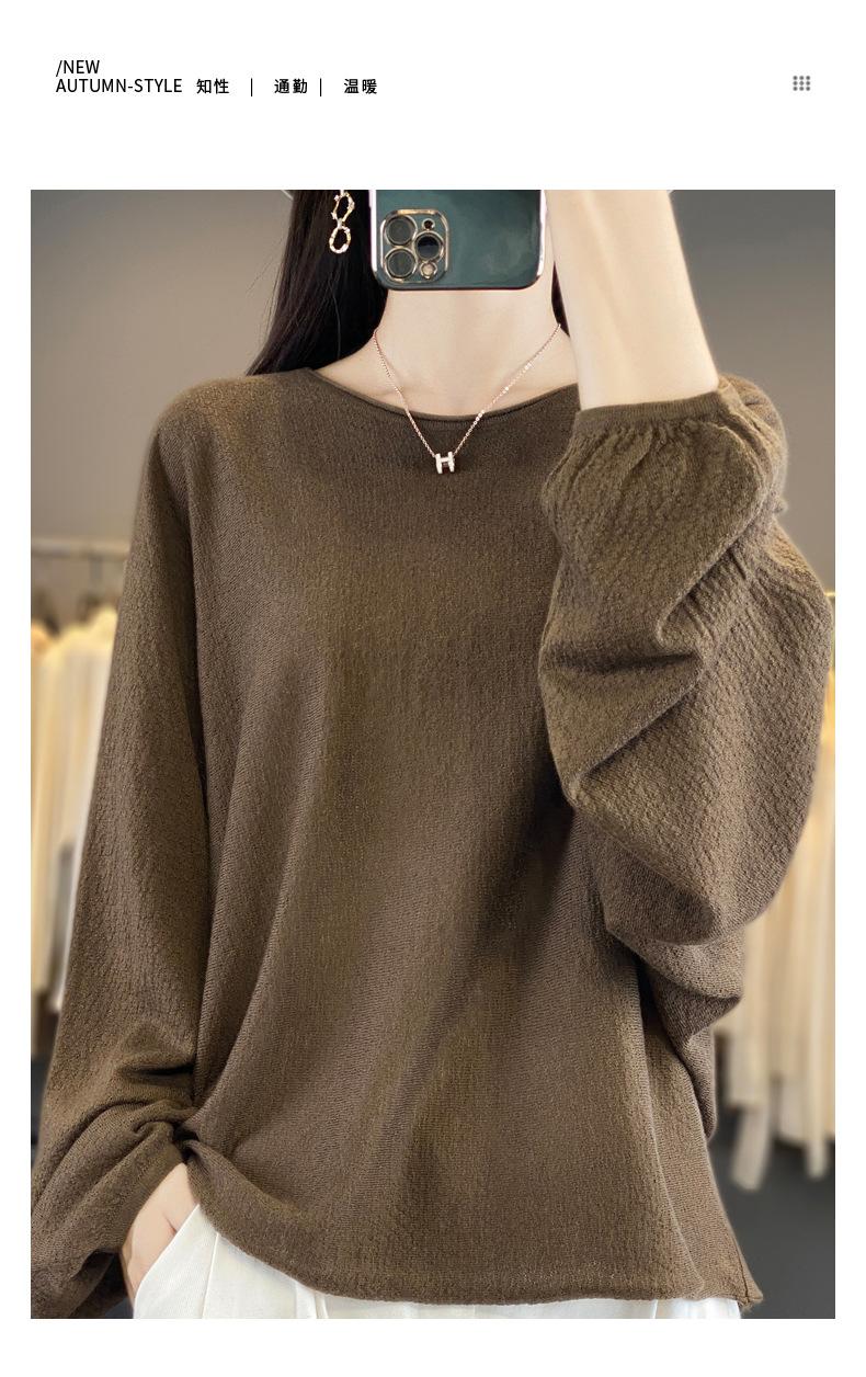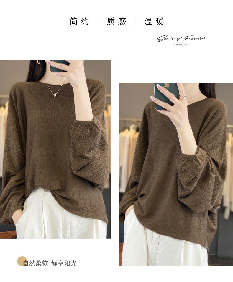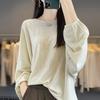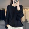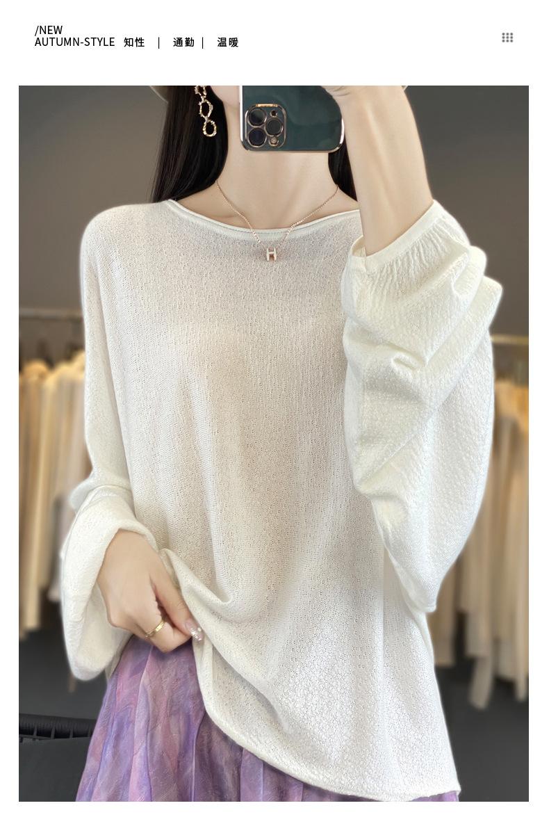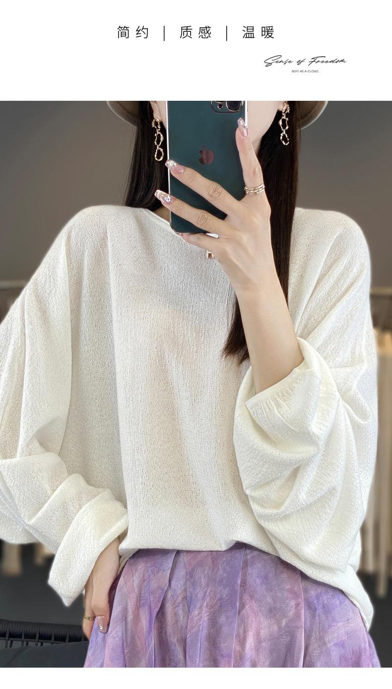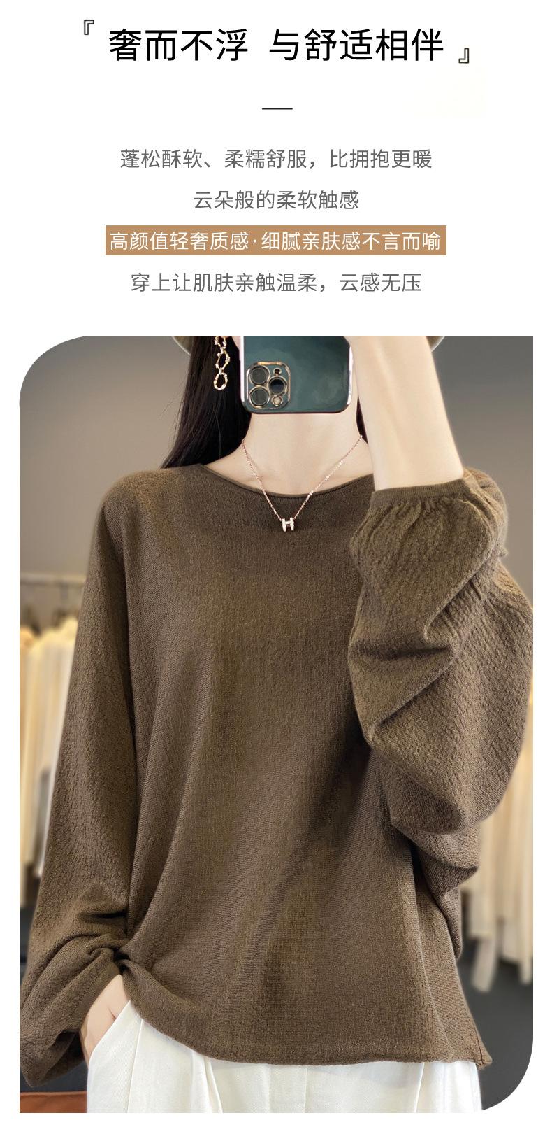 2025 primavera y verano nuevo suéter de lana peinada de viento perezoso, cuello redondo, manga larga de murciélago, color sólido, camisa base delgada