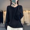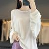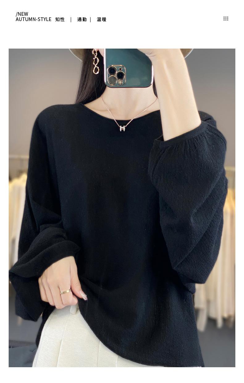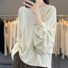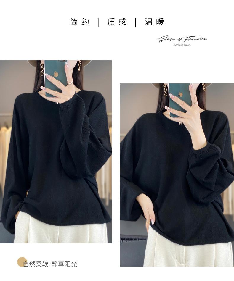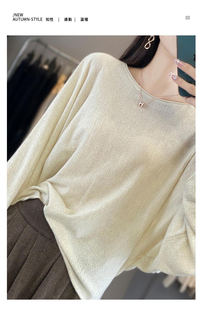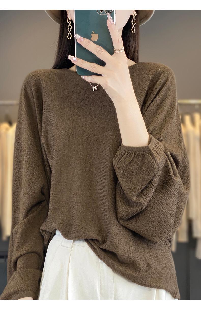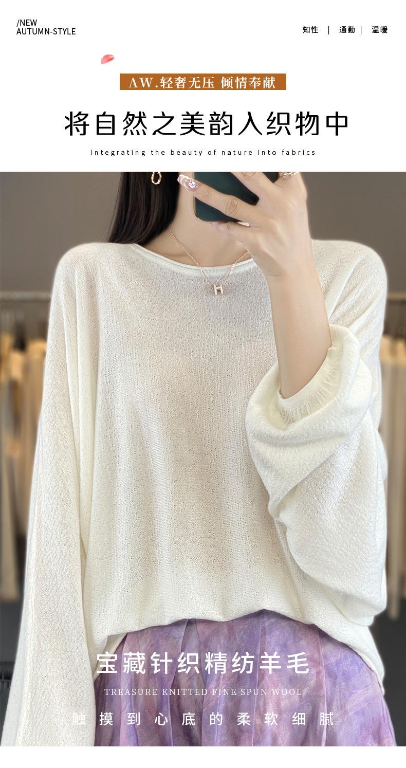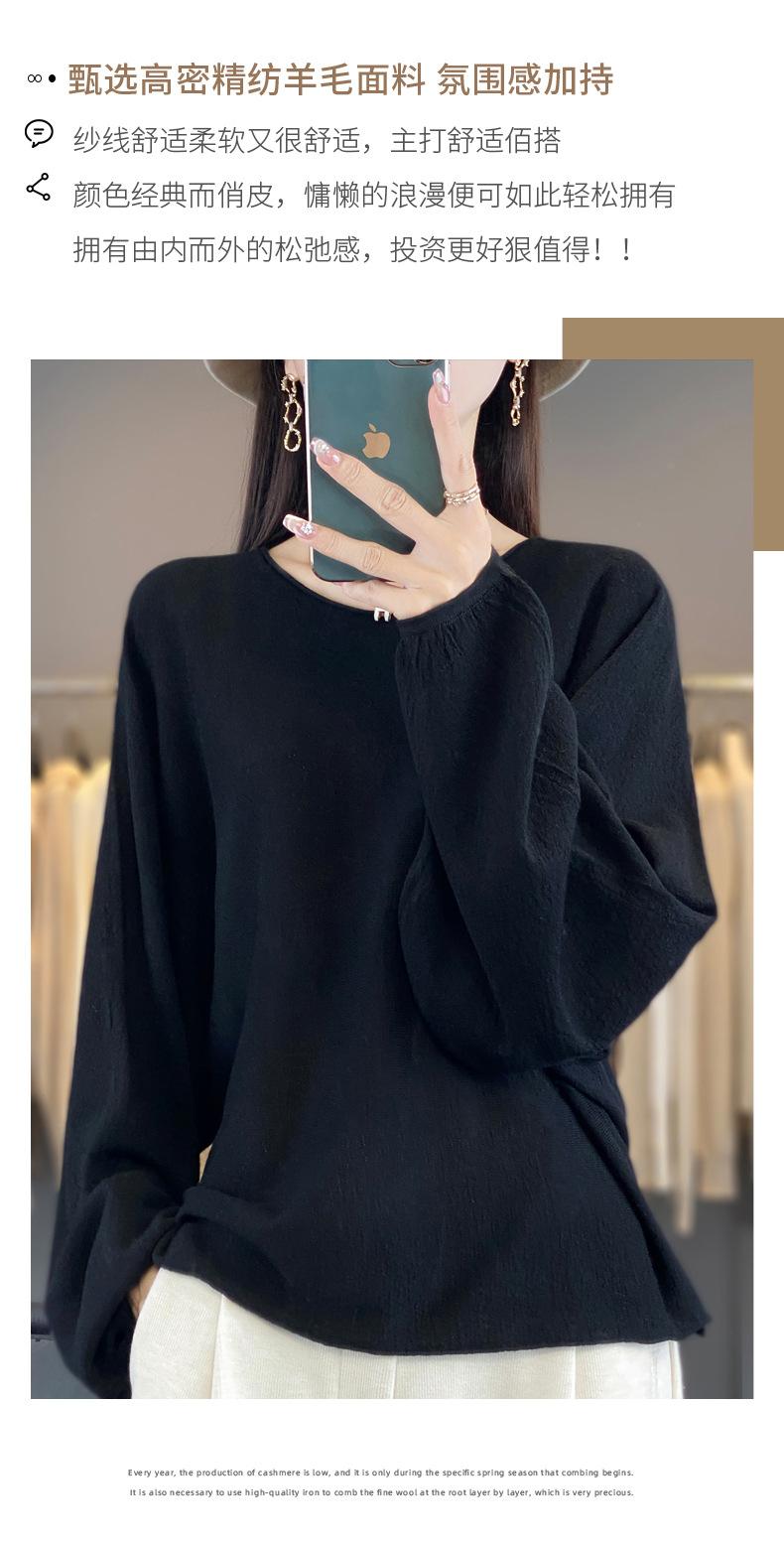 2025 primavera y verano nuevo suéter de lana peinada de viento perezoso, cuello redondo, manga larga de murciélago, color sólido, camisa base delgada