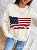 Suéter de Punto Transfronterizo Europeo y Americano Otoño e Invierno Nuevo Bandera Americana Casual Holgado Versátil Jersey Cuello Redondo Ropa de Punto Transfronteriza