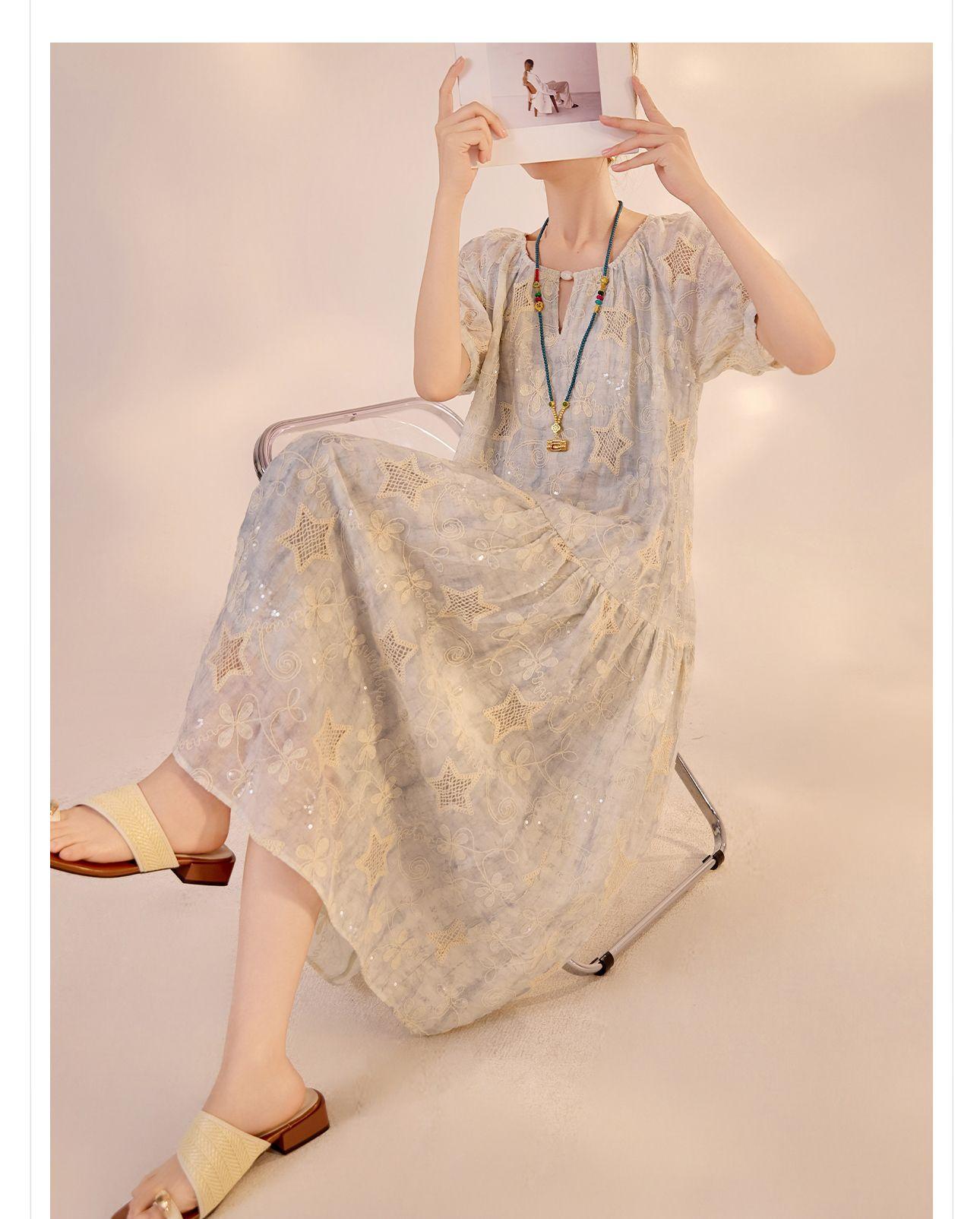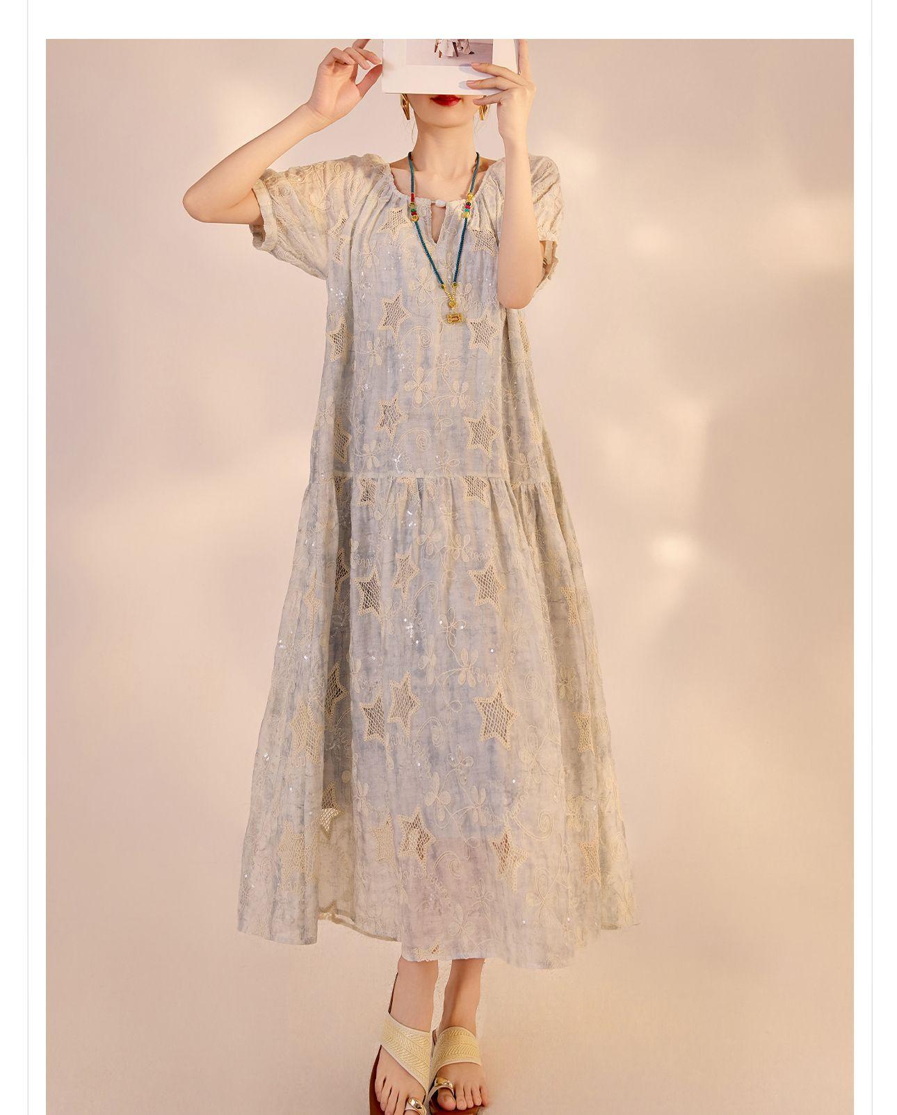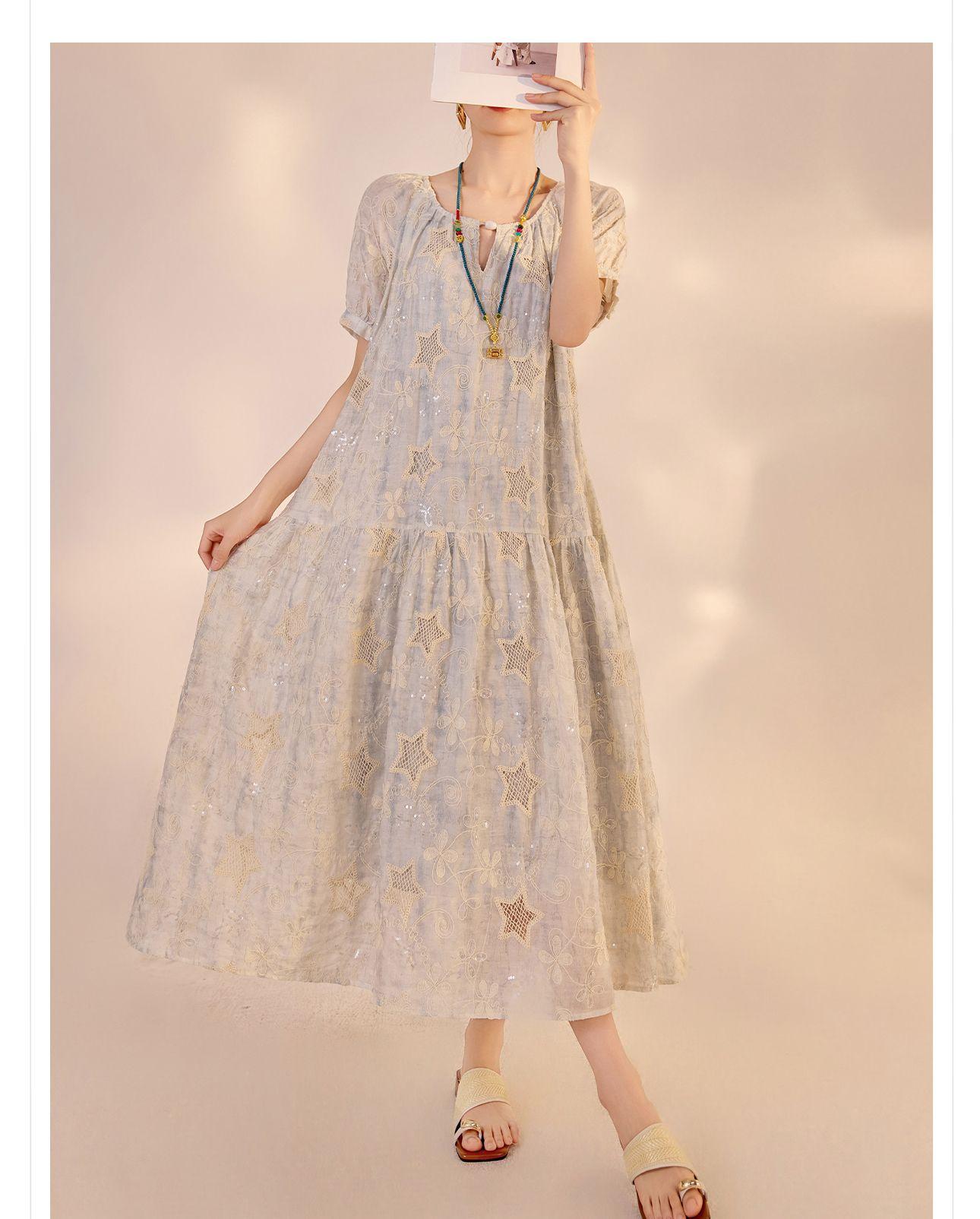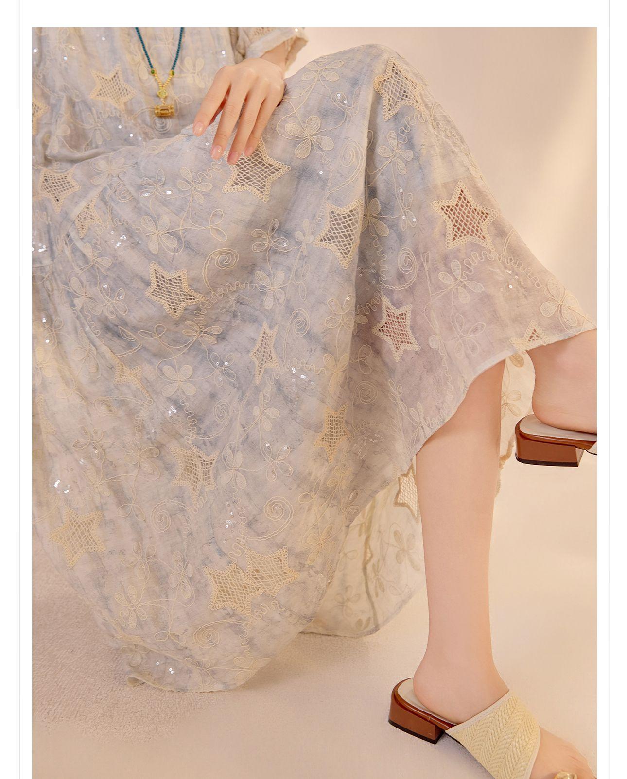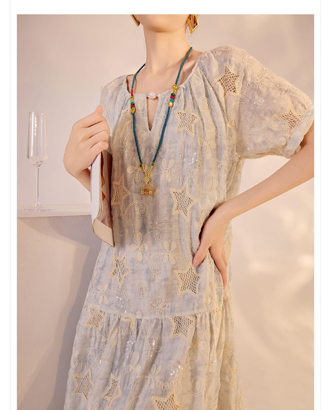 Estilo Nacional de Alta Gama 2025 Vacaciones de Verano Estilo Suave Vestido Largo para Mujer Suelto Bordado de Estrella Puntadas vestido N3099