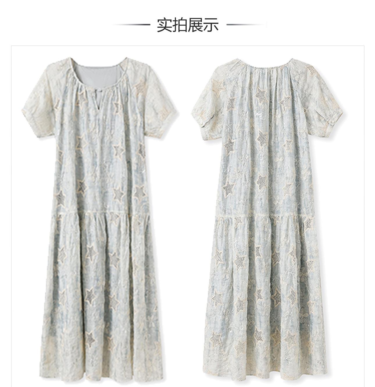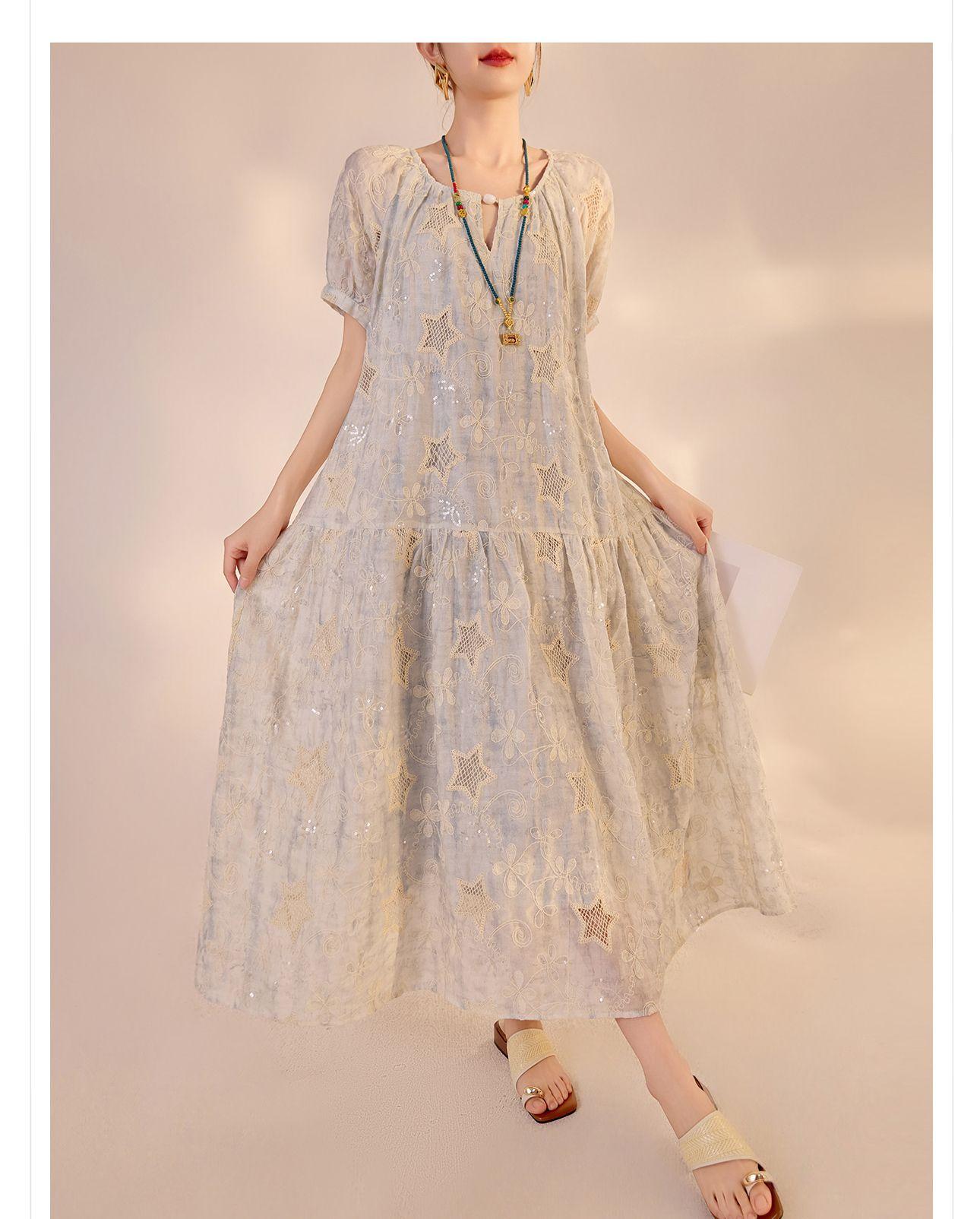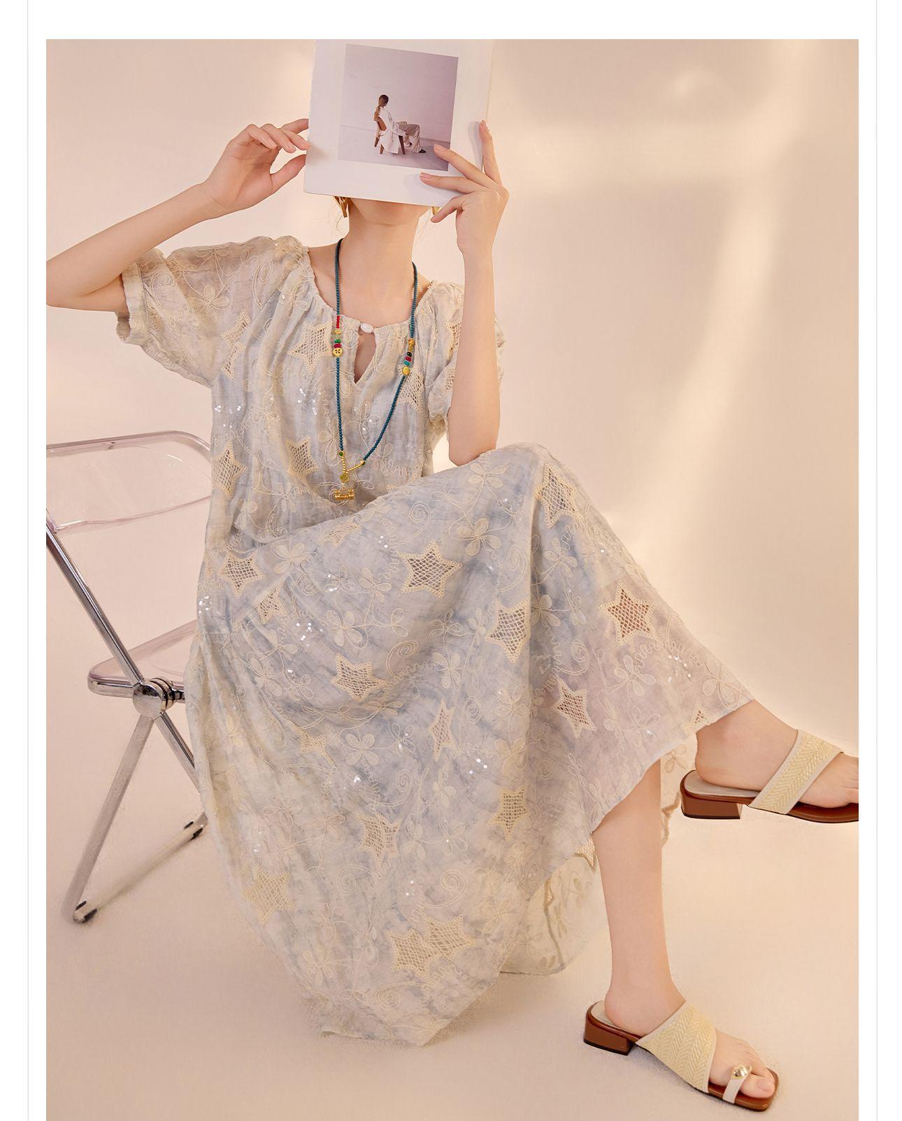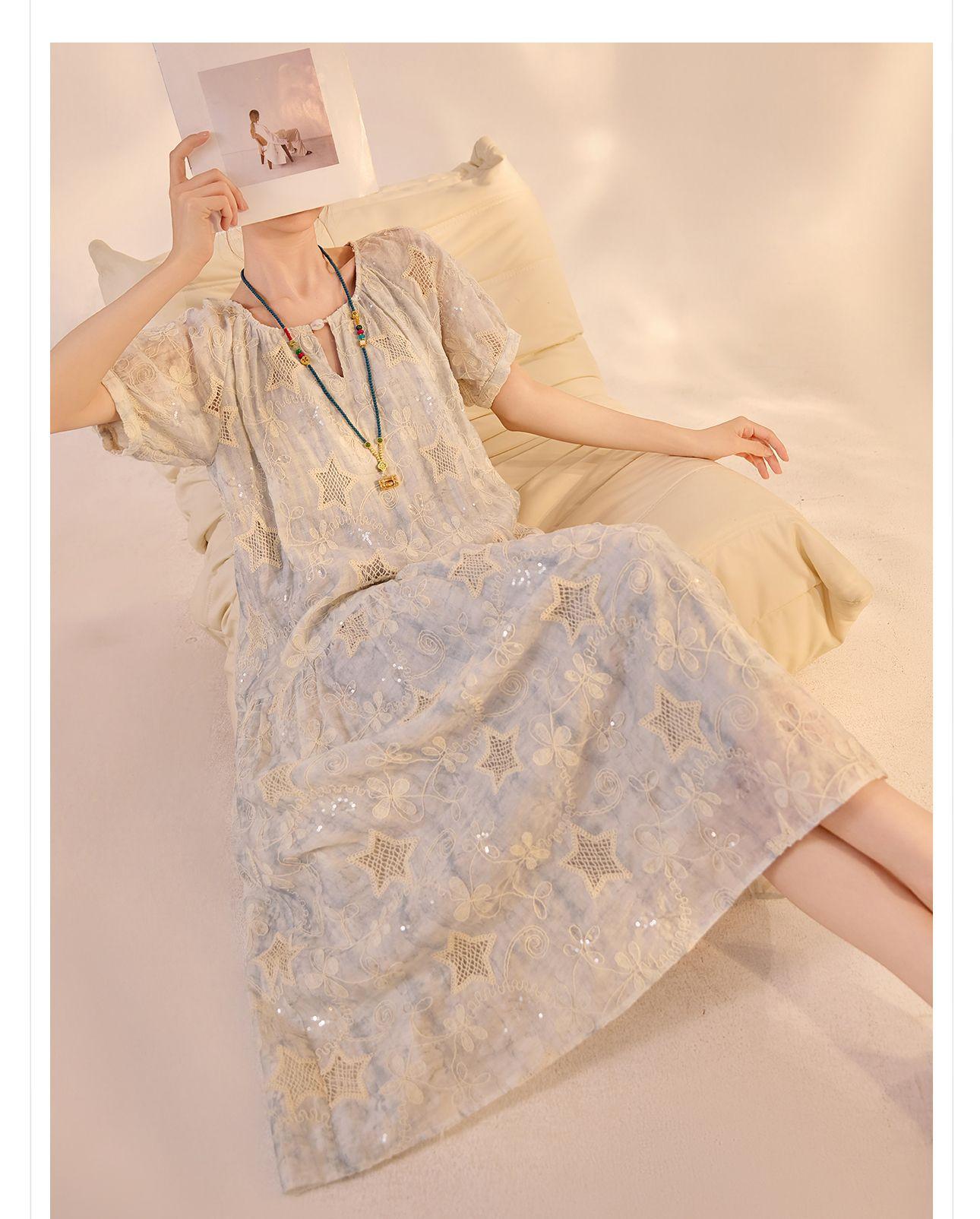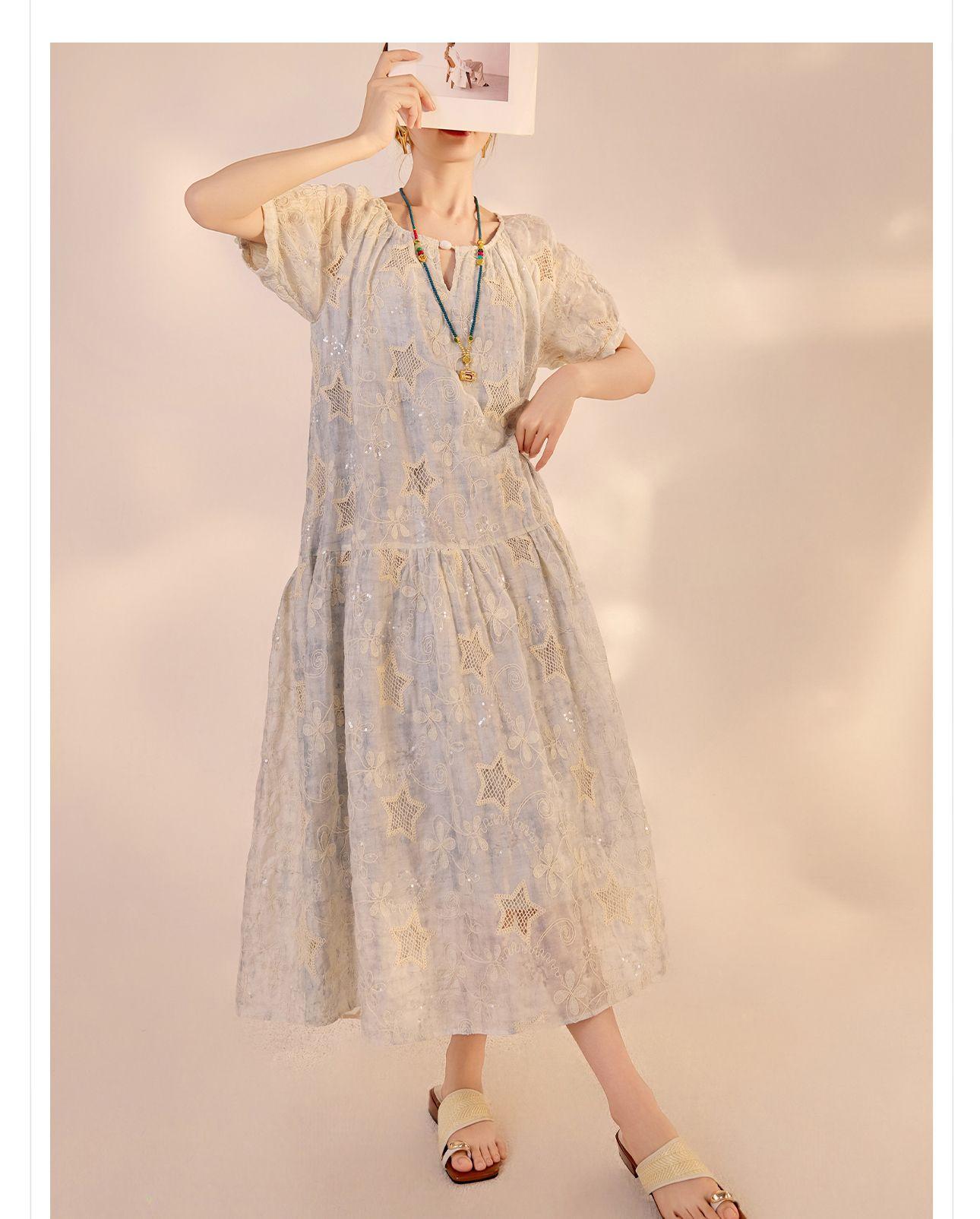 Estilo Nacional de Alta Gama 2025 Vacaciones de Verano Estilo Suave Vestido Largo para Mujer Suelto Bordado de Estrella Puntadas vestido N3099