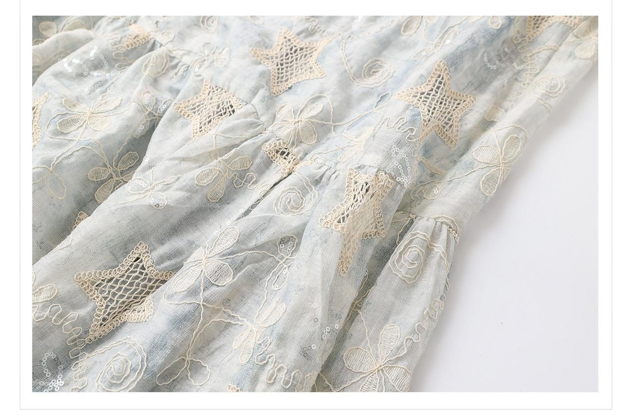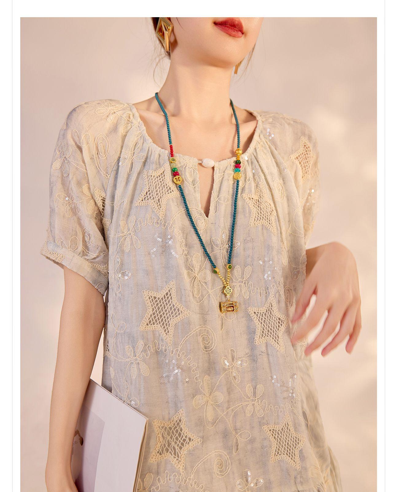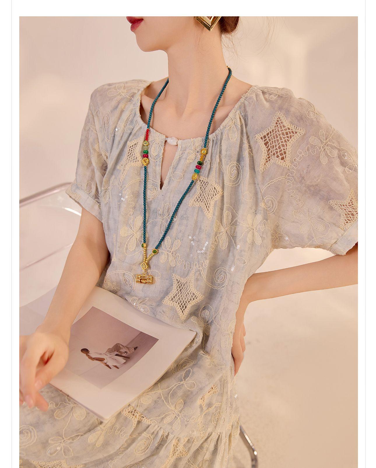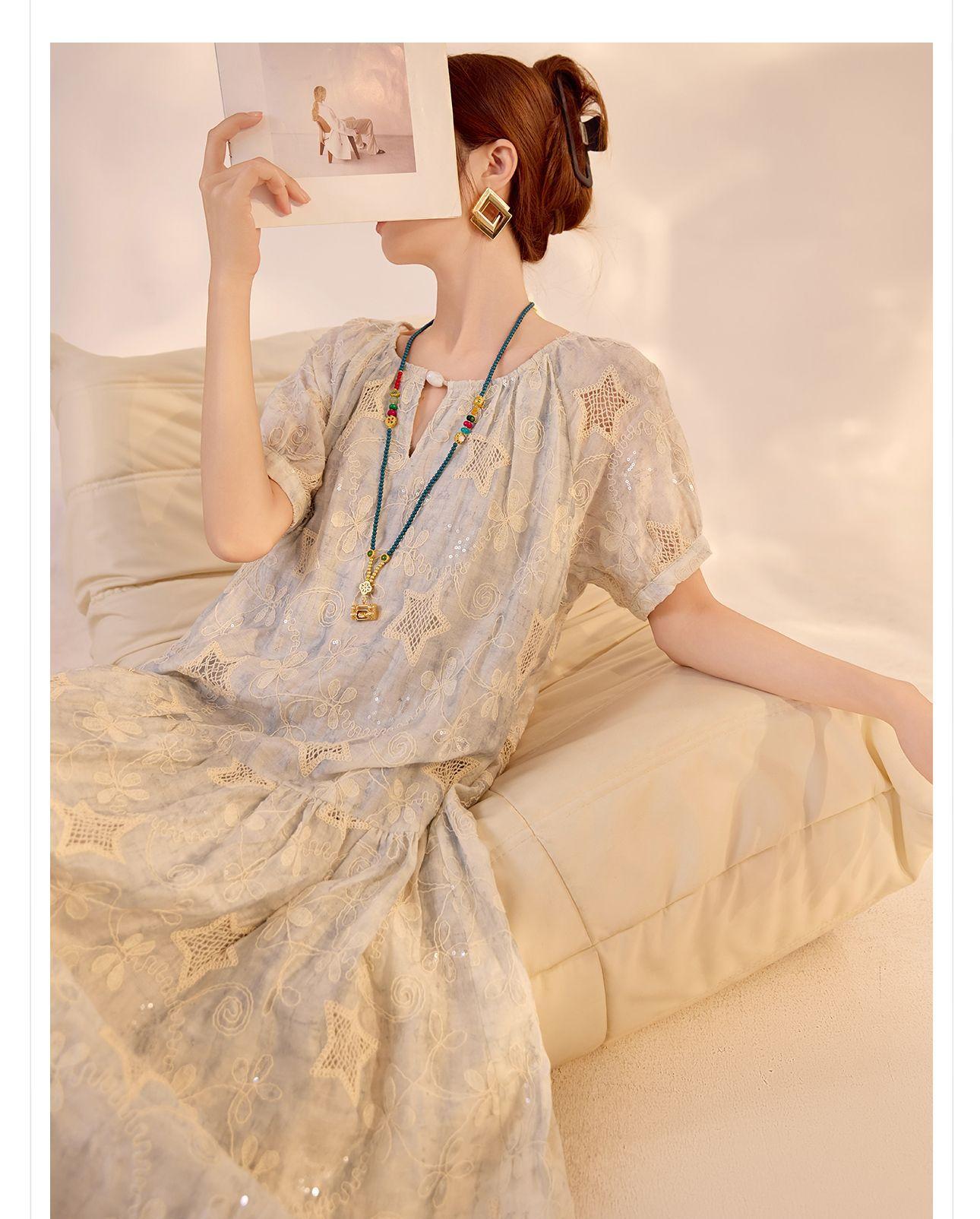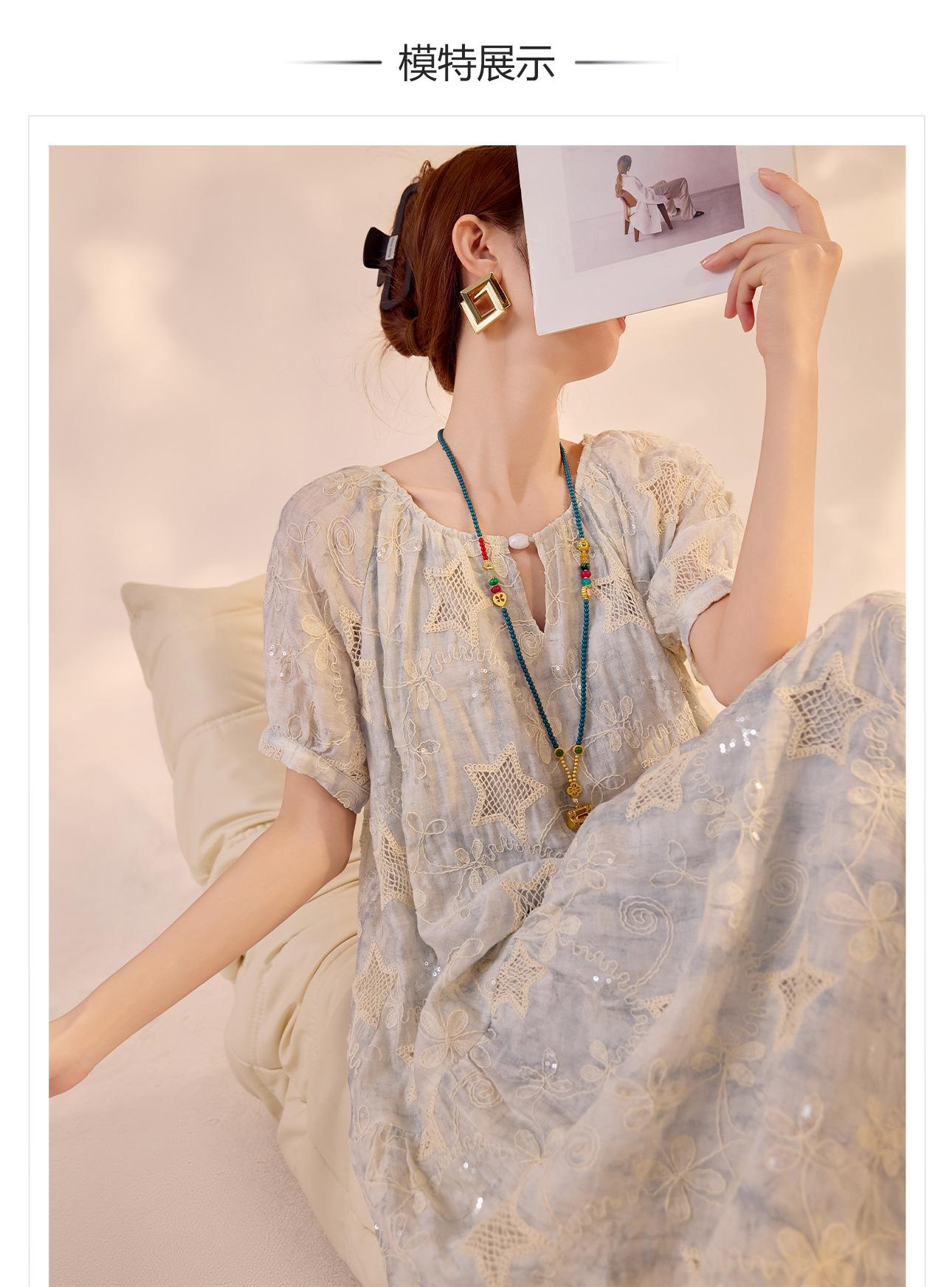 Estilo Nacional de Alta Gama 2025 Vacaciones de Verano Estilo Suave Vestido Largo para Mujer Suelto Bordado de Estrella Puntadas vestido N3099