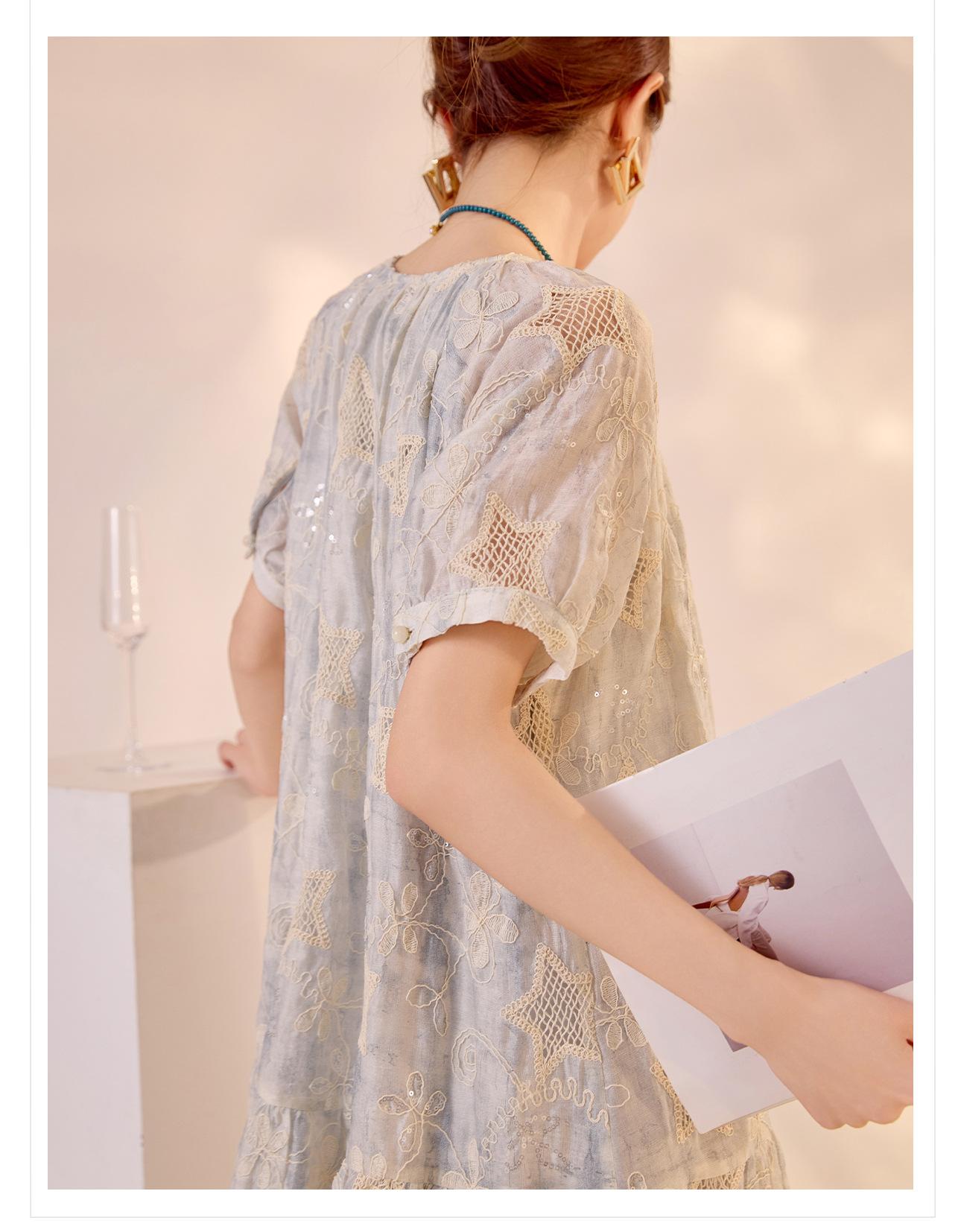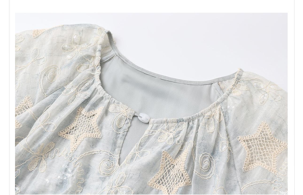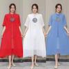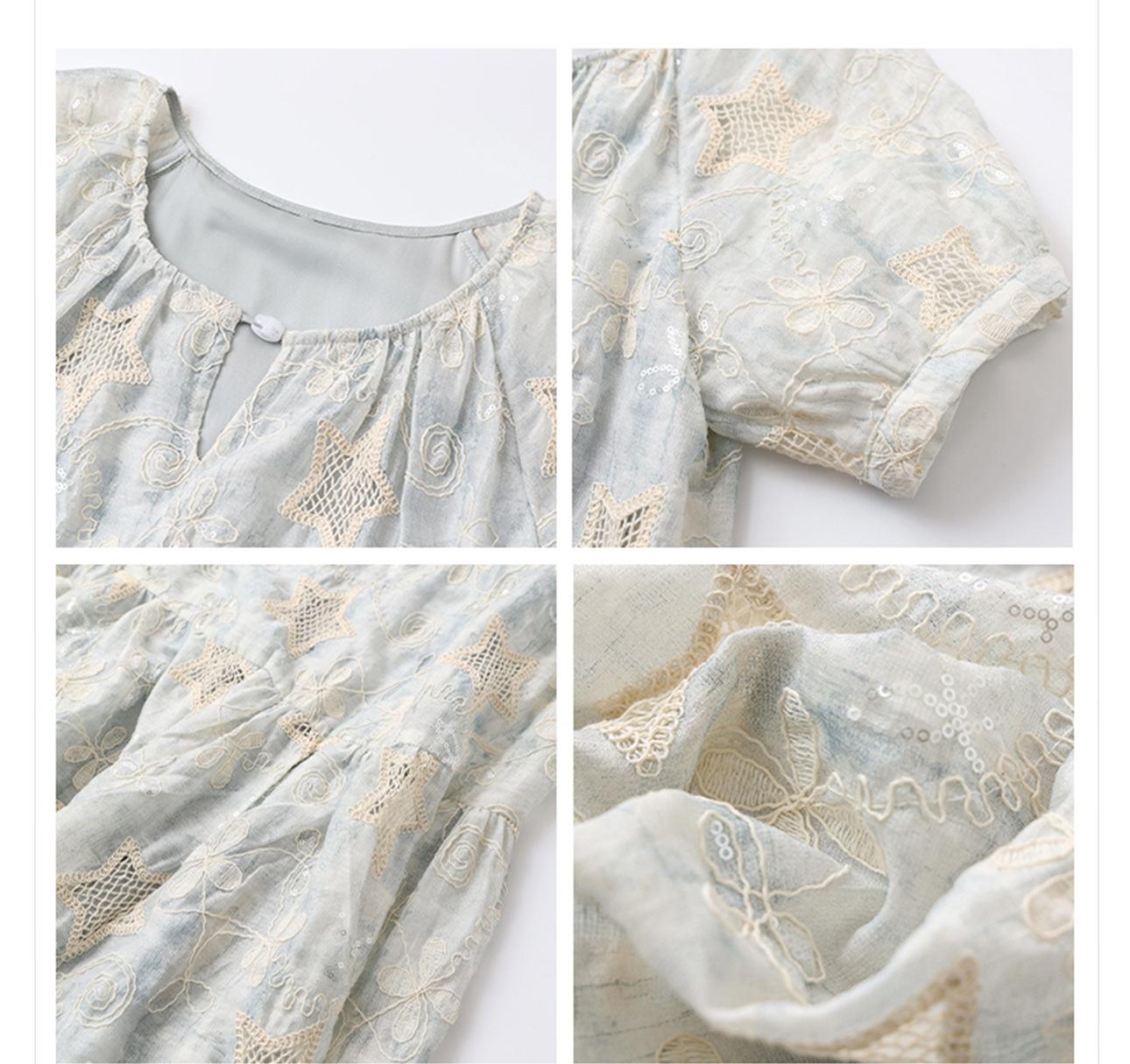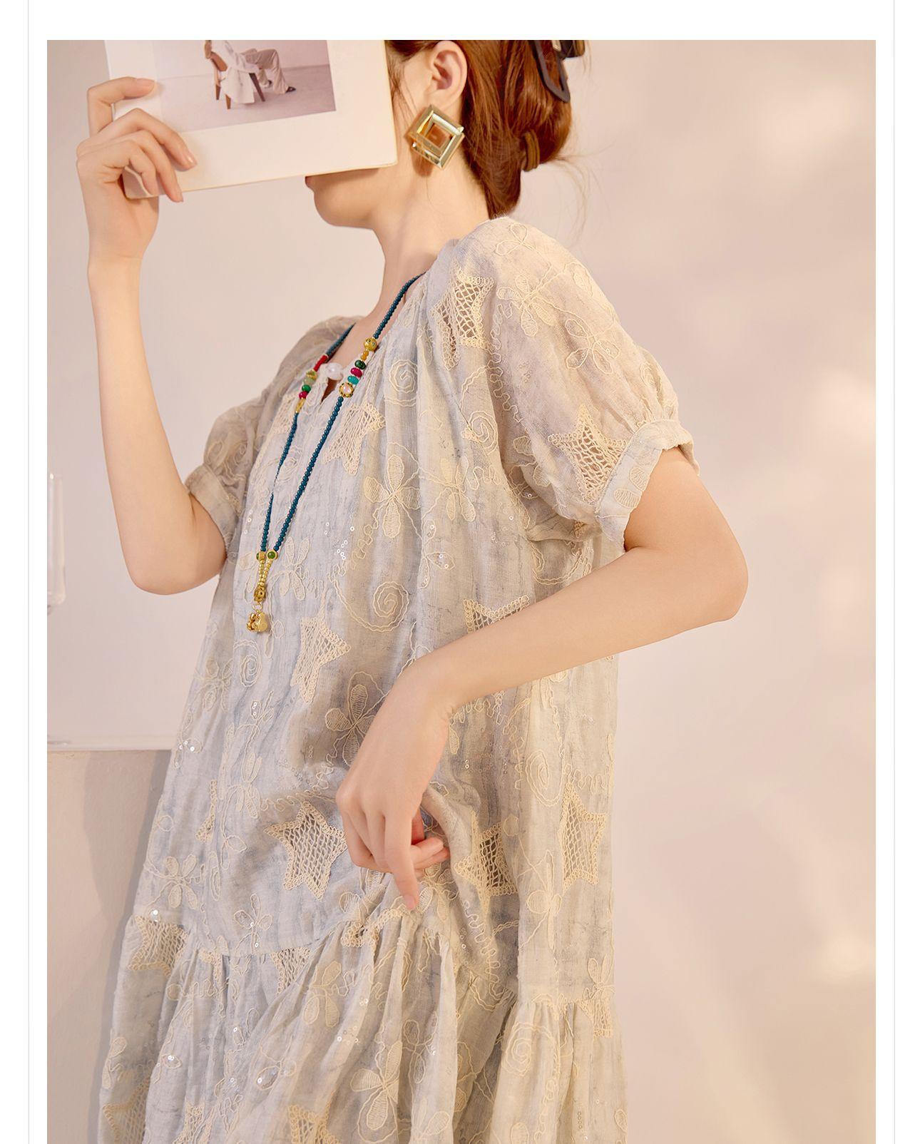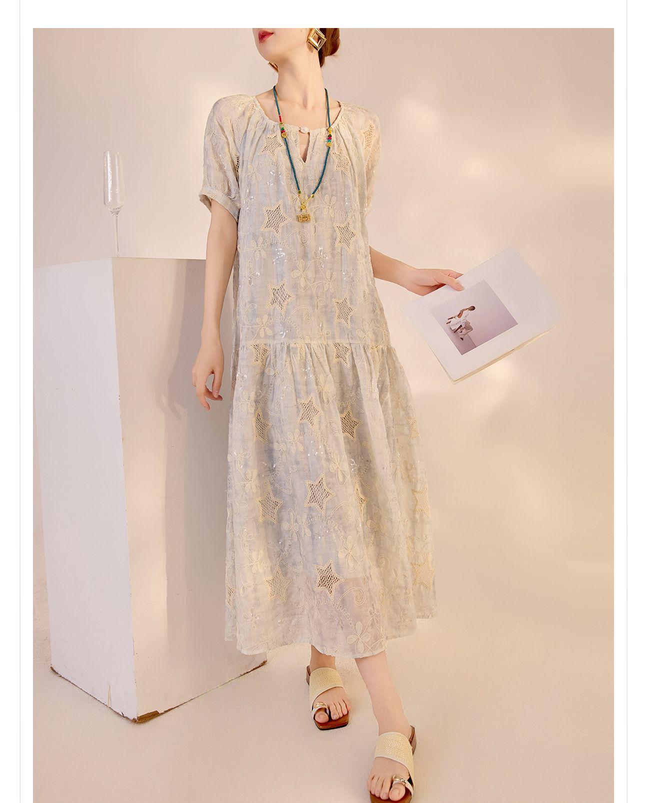 Estilo Nacional de Alta Gama 2025 Vacaciones de Verano Estilo Suave Vestido Largo para Mujer Suelto Bordado de Estrella Puntadas vestido N3099