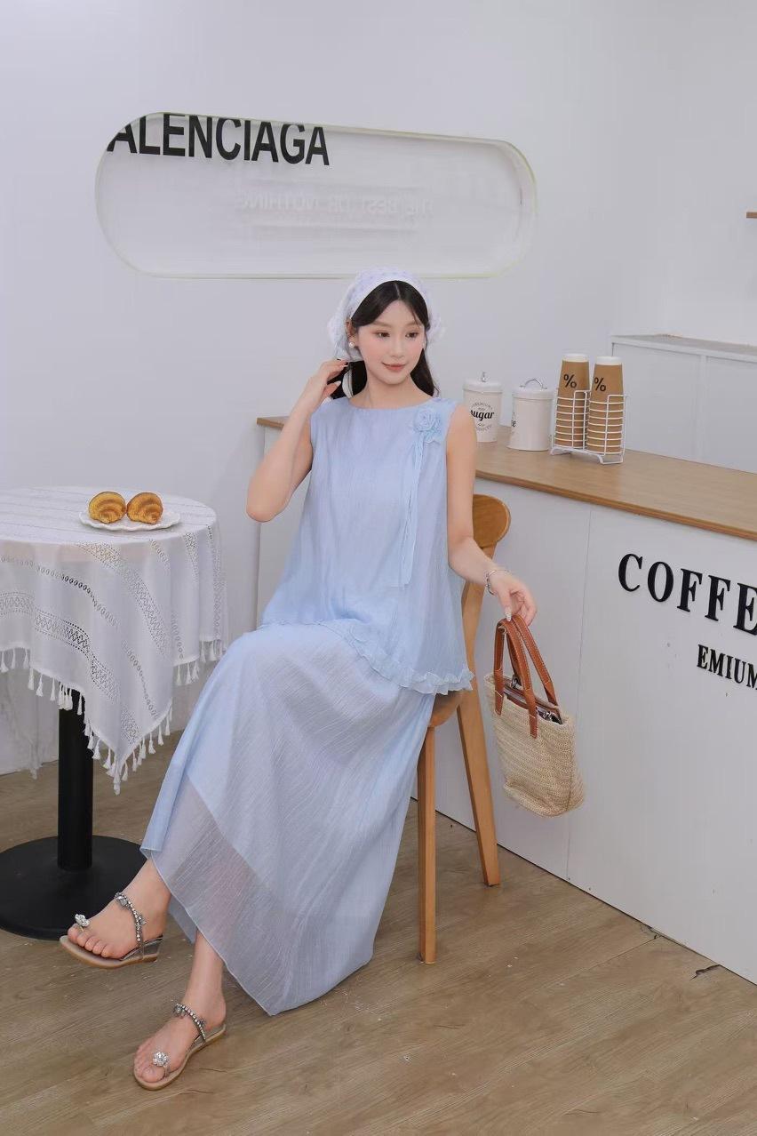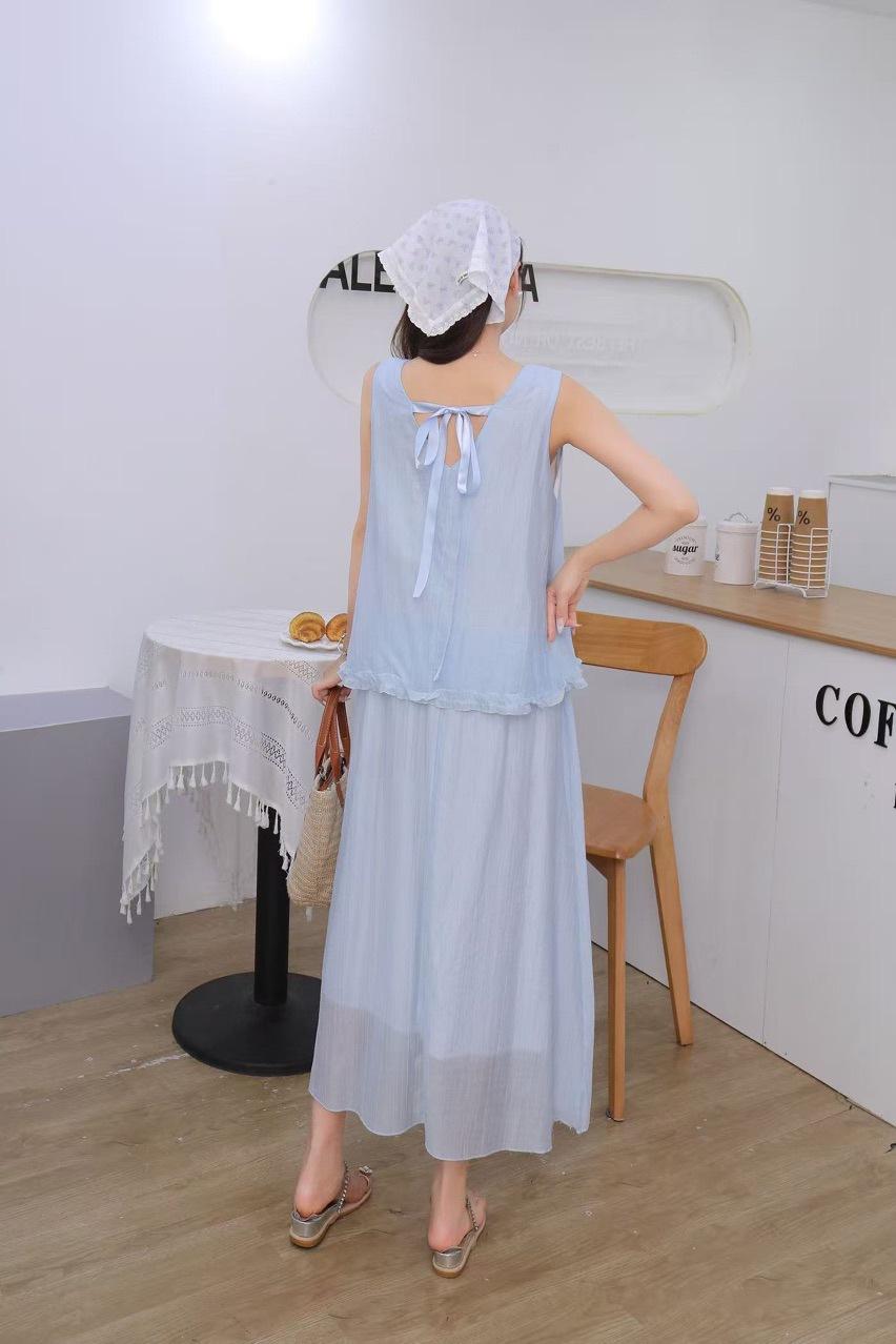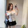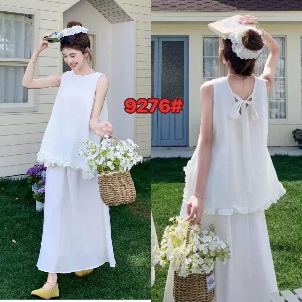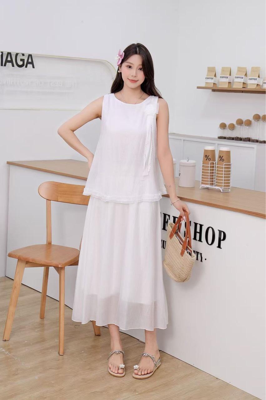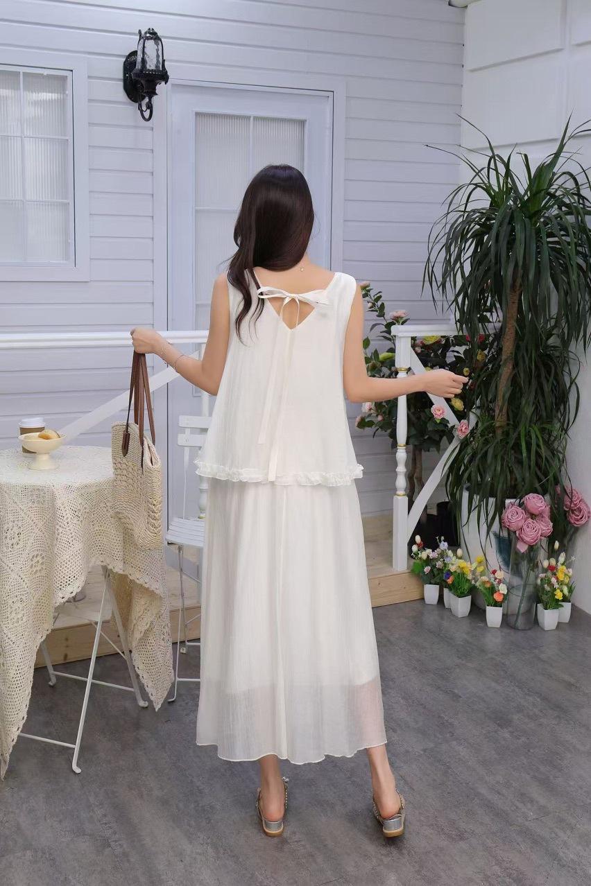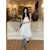 Foto Real Set Vestido Tank Top Blanco con Volantes Empalmados Verano 2025 Nuevo Super Hada Falso Dos Piezas