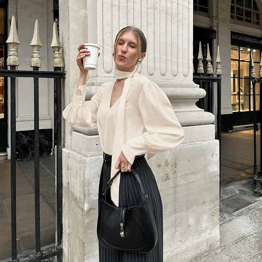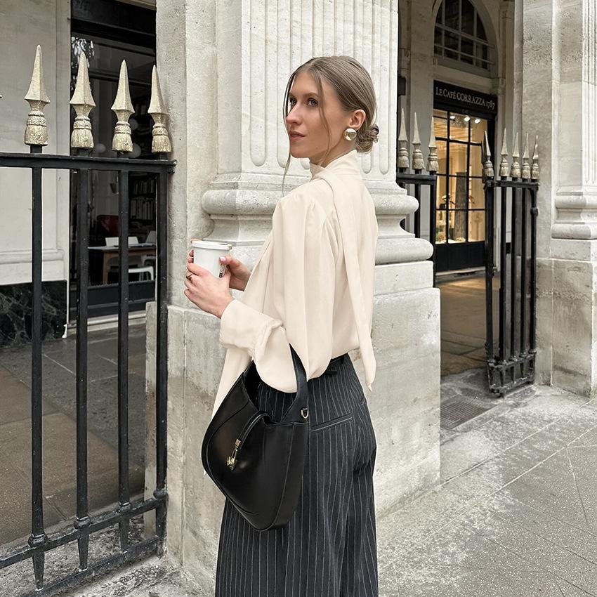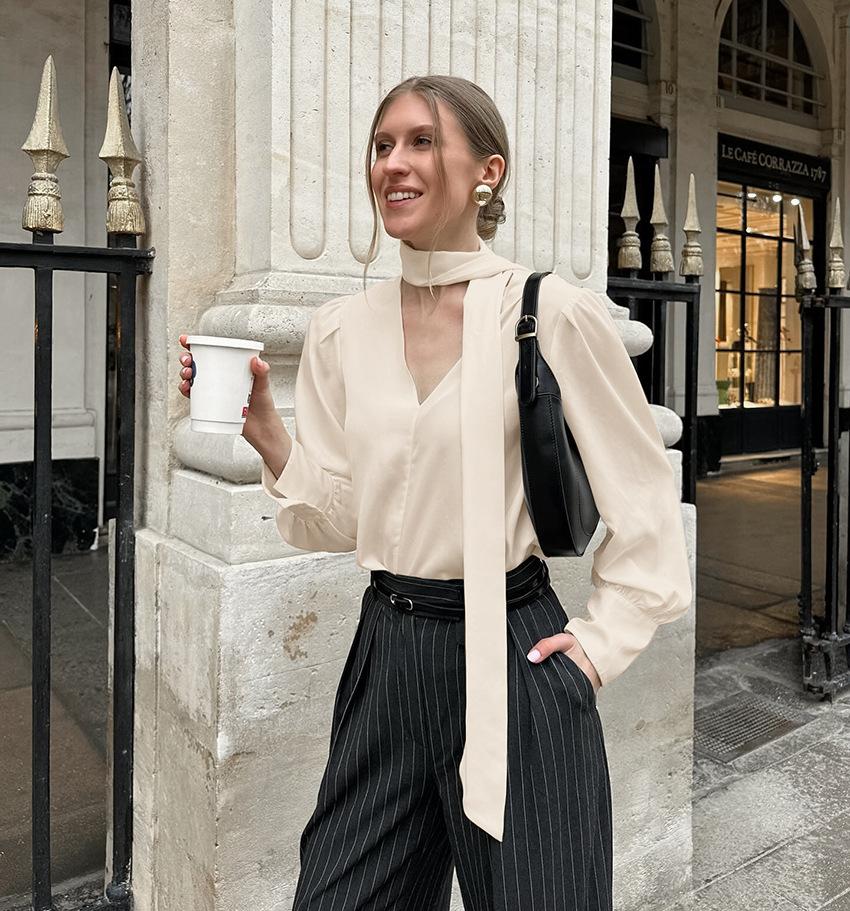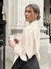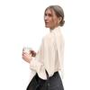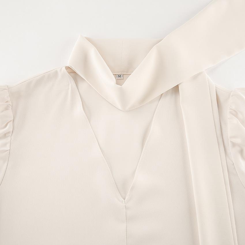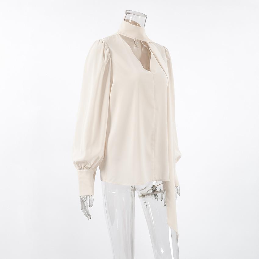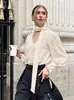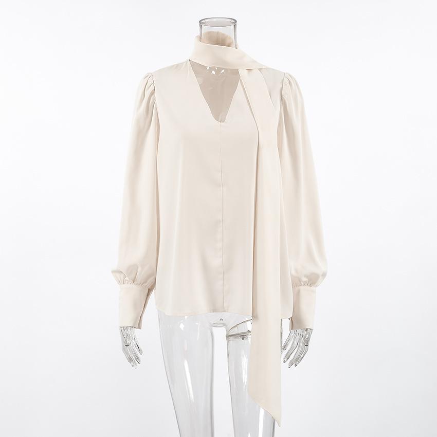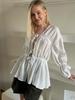 2025 Transfronterizo Europeo y Americano Nuevo Diseño de Cordones de Manga Larga Camisa con Cuello en V Ropa de Trabajo de Primavera y Verano Top Versátil
