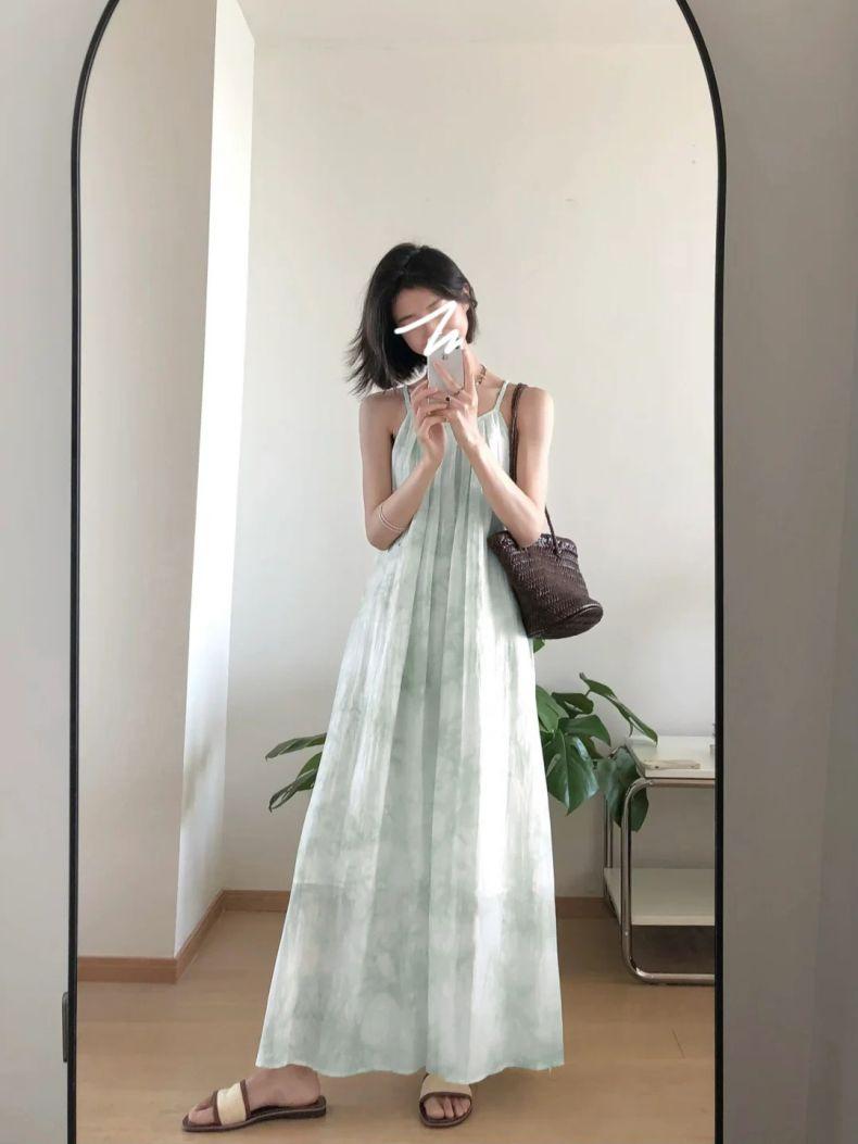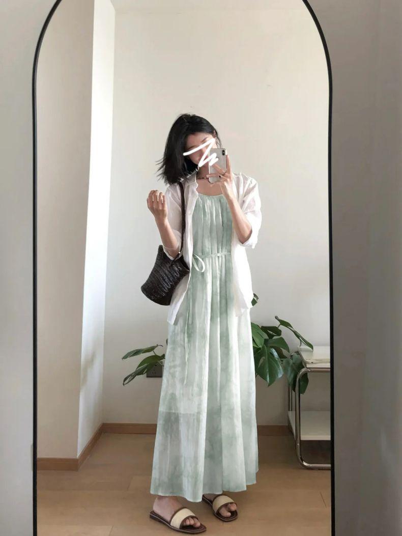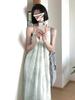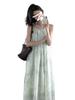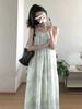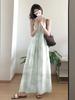 Vestido Verde de Tirantes Finos para Mujer Verano 2025 Nuevo Diseño Nicho Francés Temperamento Petite Adelgazante Vestido Largo