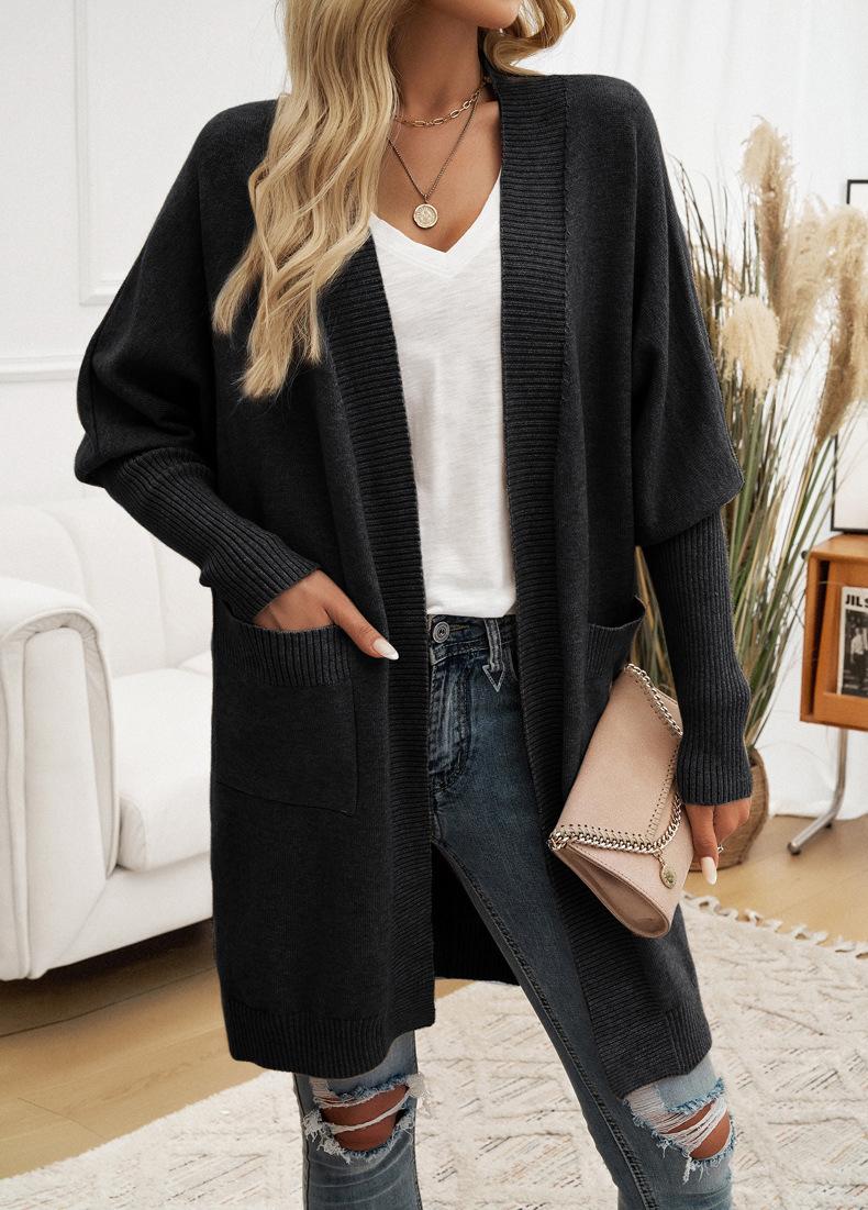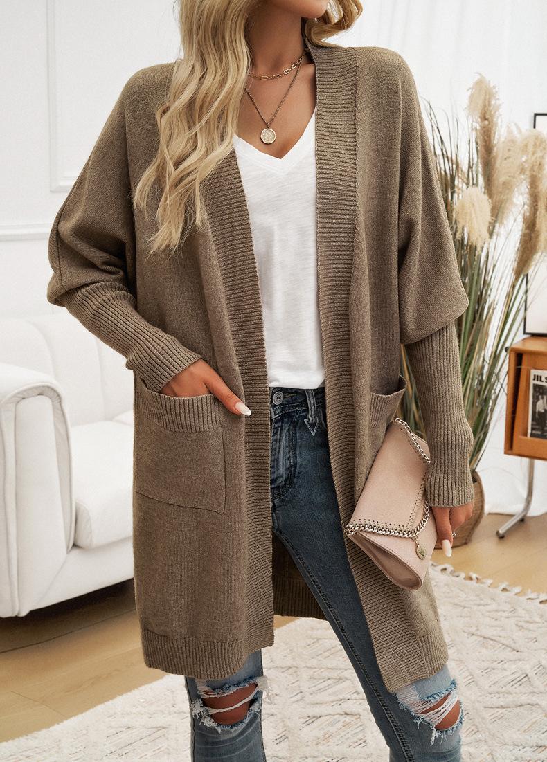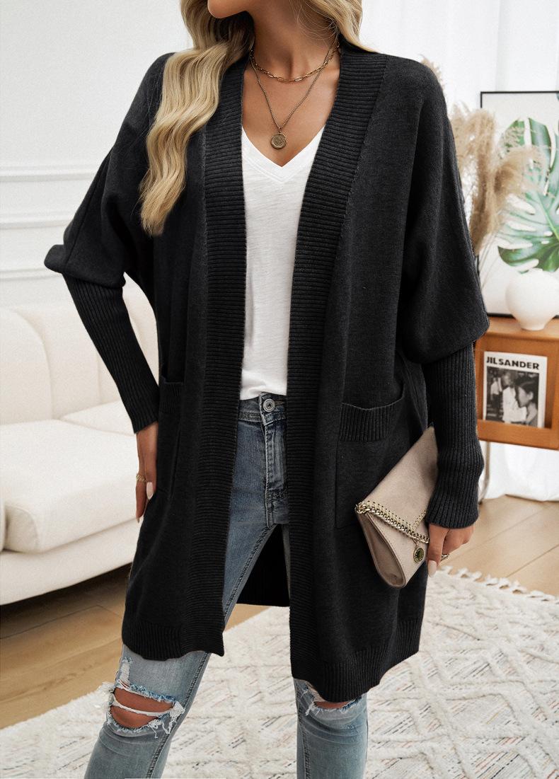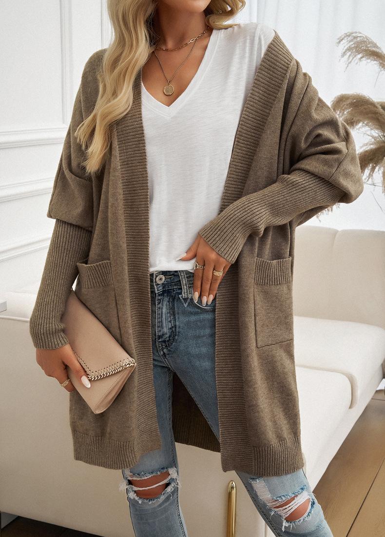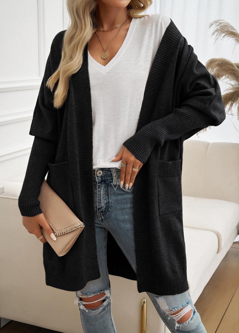 Nuevo Comercio Exterior Transfronterizo 2024 Otoño/Invierno Ropa de Mujer Europea y Americana Cárdigan de Temperamento Manga Murciélago Abrigo Suéter Color Sólido