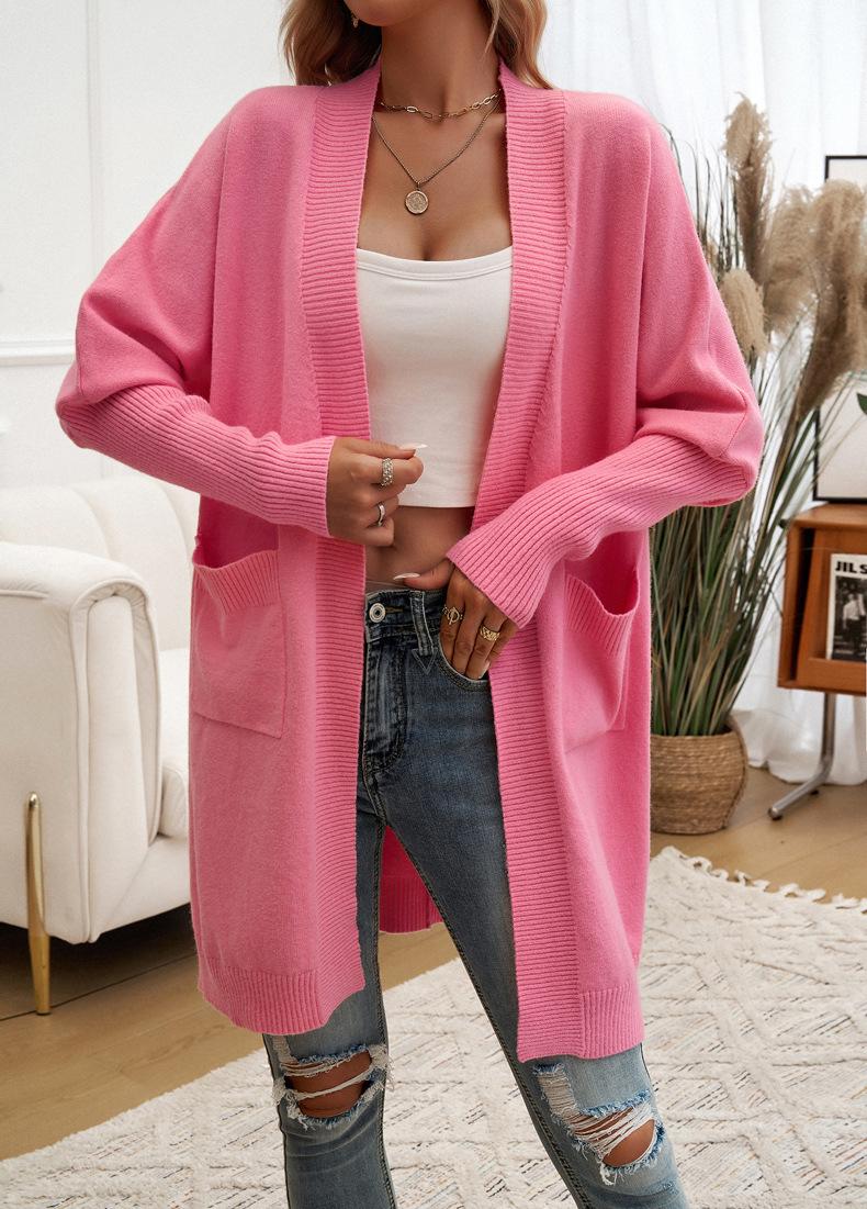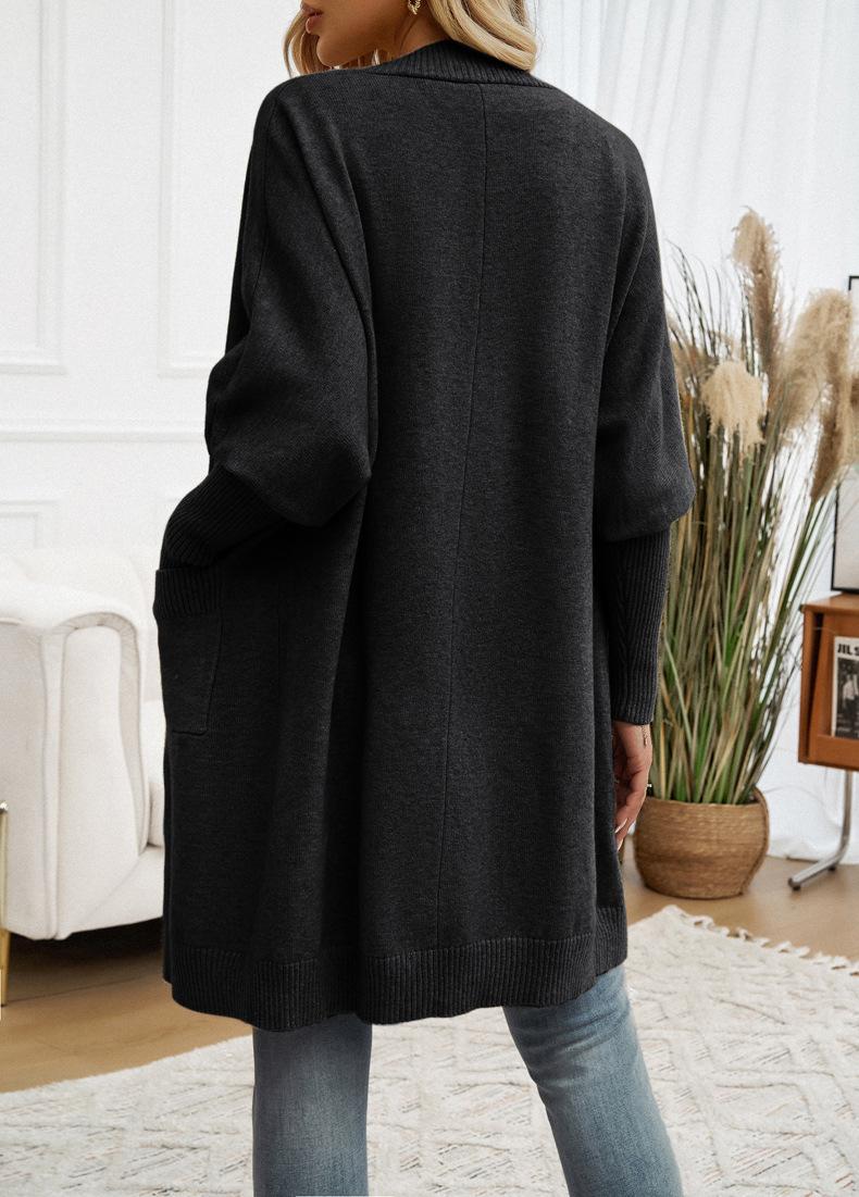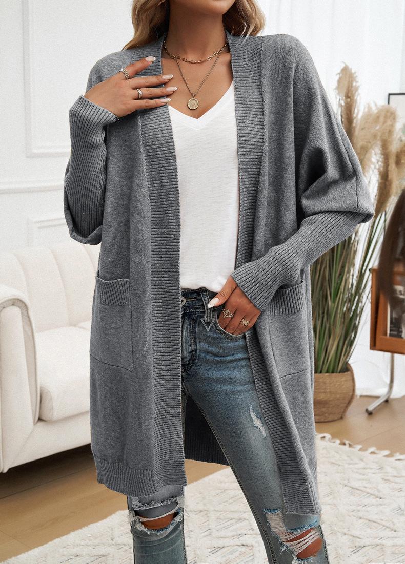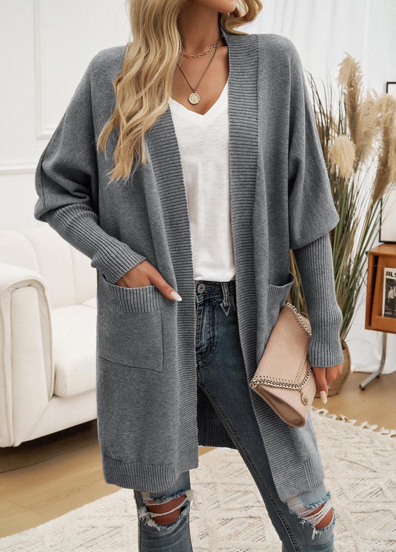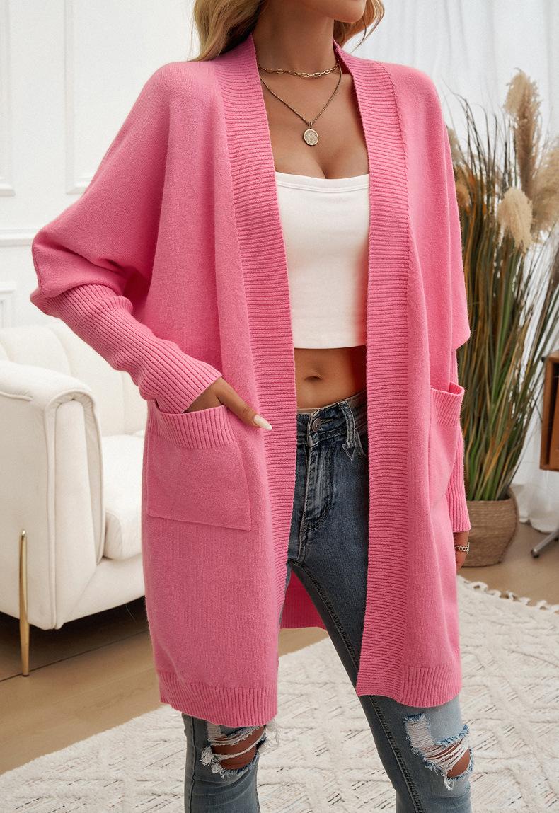 Nuevo Comercio Exterior Transfronterizo 2024 Otoño/Invierno Ropa de Mujer Europea y Americana Cárdigan de Temperamento Manga Murciélago Abrigo Suéter Color Sólido