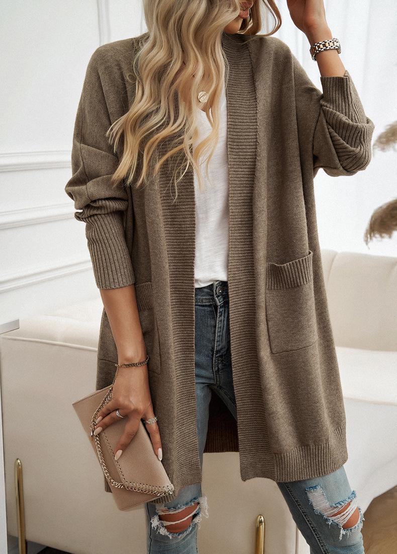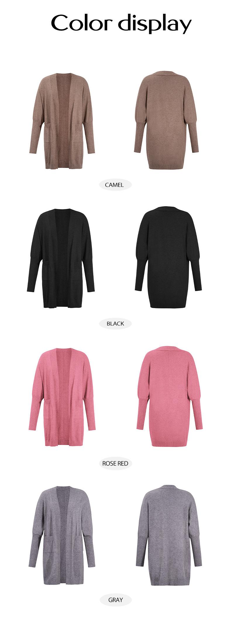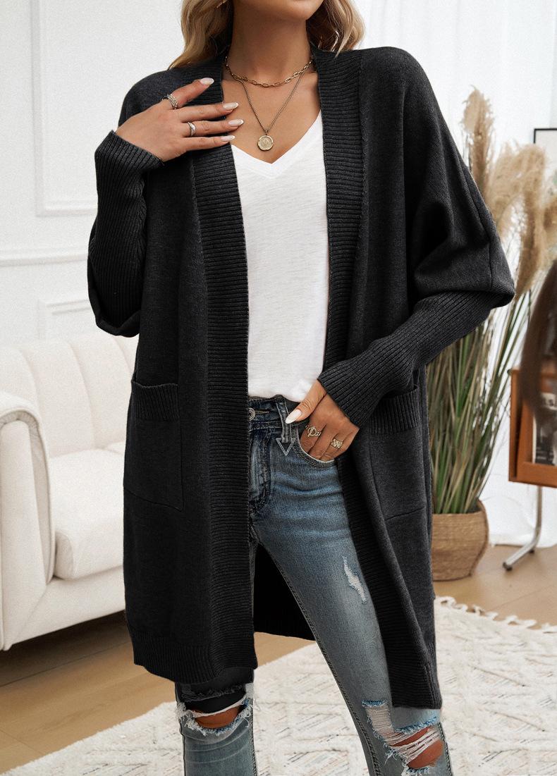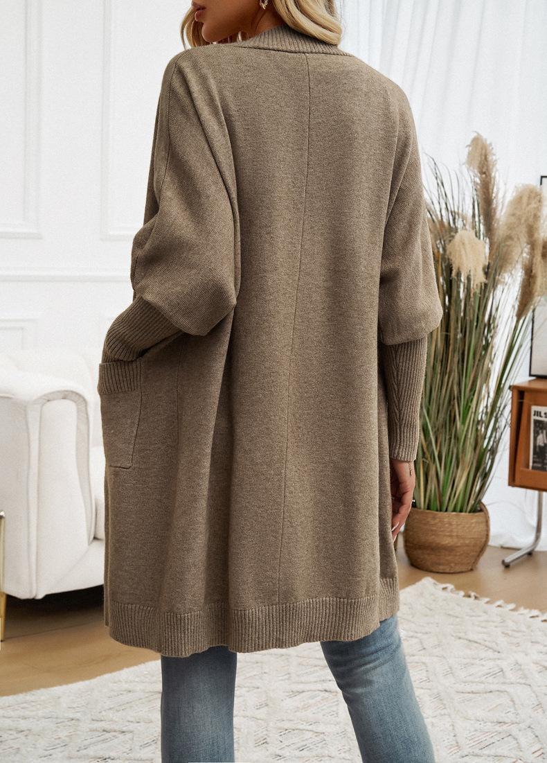 Nuevo Comercio Exterior Transfronterizo 2024 Otoño/Invierno Ropa de Mujer Europea y Americana Cárdigan de Temperamento Manga Murciélago Abrigo Suéter Color Sólido