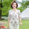 Camiseta de Verano de Manga Corta para Madre de Mediana Edad Camisa de Gasa Delgada Nuevo Estilo Estilo Extranjero Traje de Verano para Mujeres de Mediana Edad y Mayores