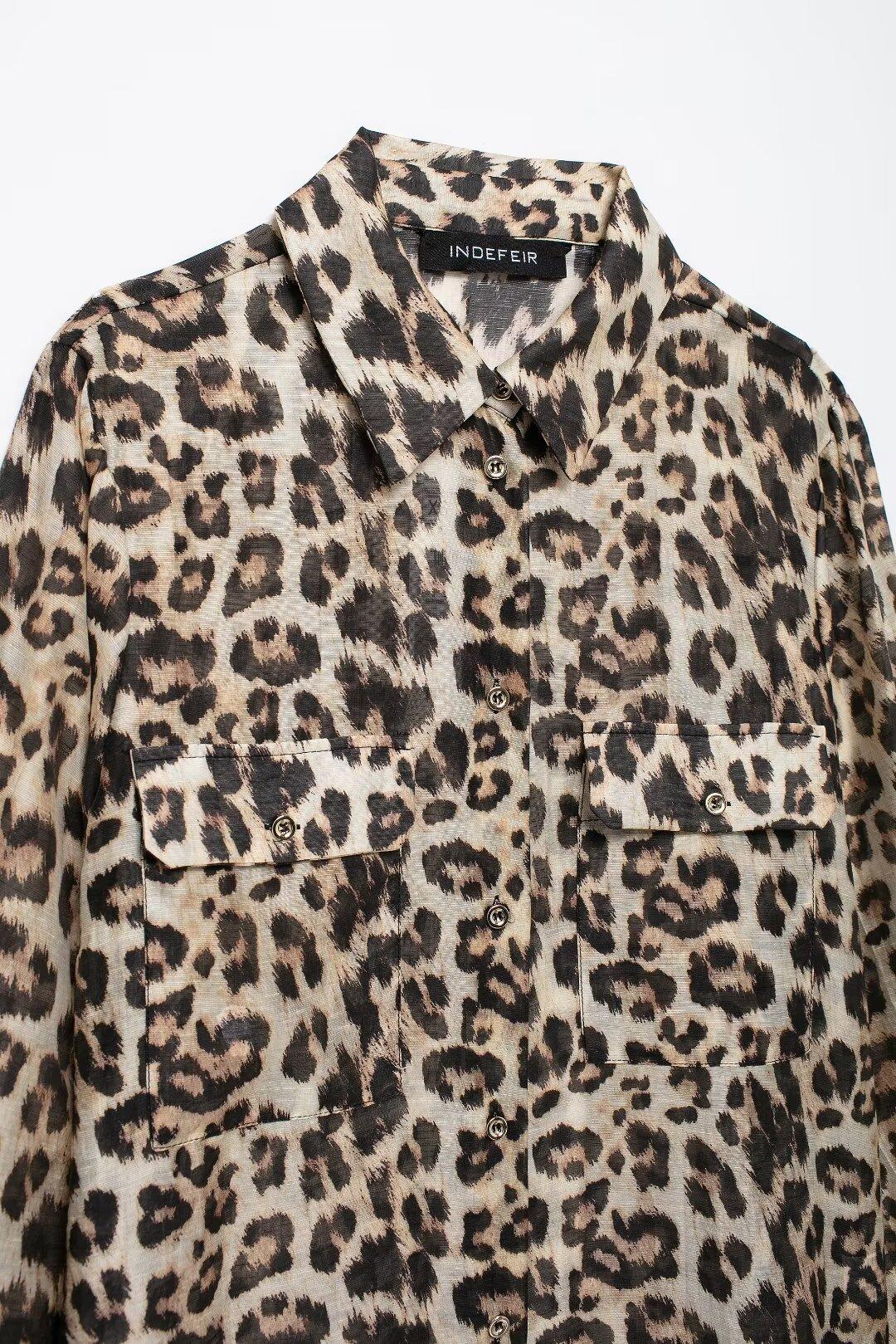 2024 Verano Nuevo Ropa de Mujer Moda Estilo Europeo y Americano Todo Combinable Camisa Estampado Animal 8052413