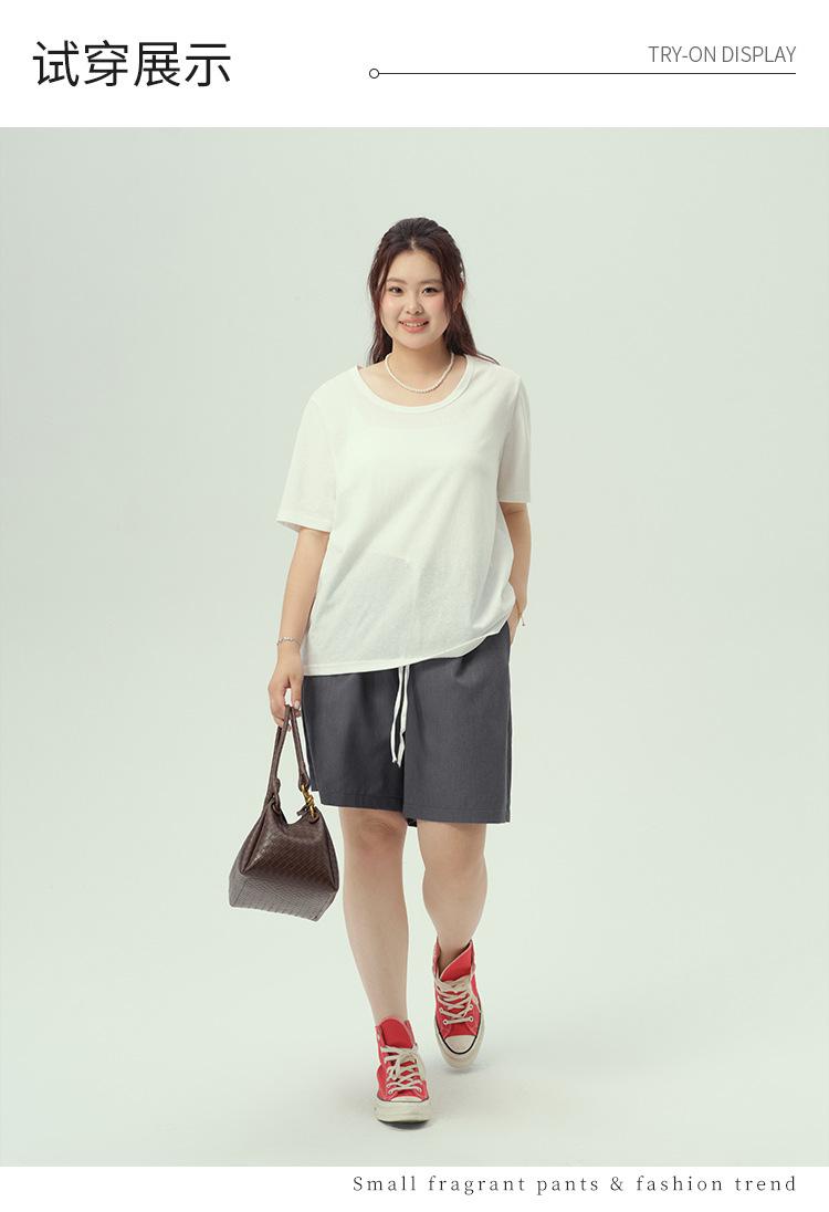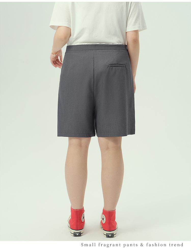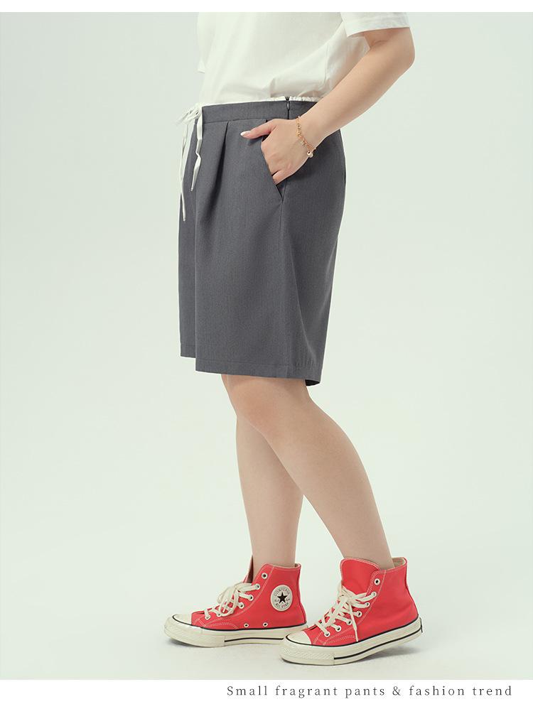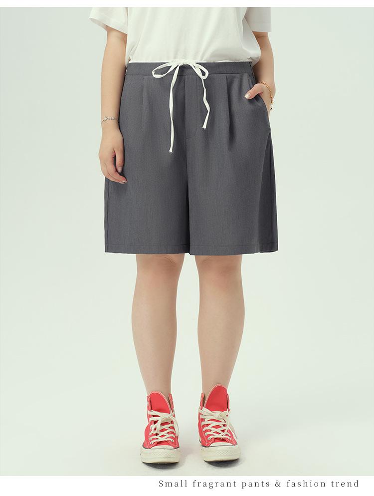 Shorts de Traje Gris de Alta Gama para Mujer de Talla Grande Delgados de Cintura Alta con Cordones Borde Blanco Casual Rectos de Largo Medio