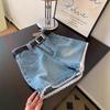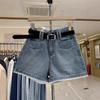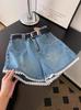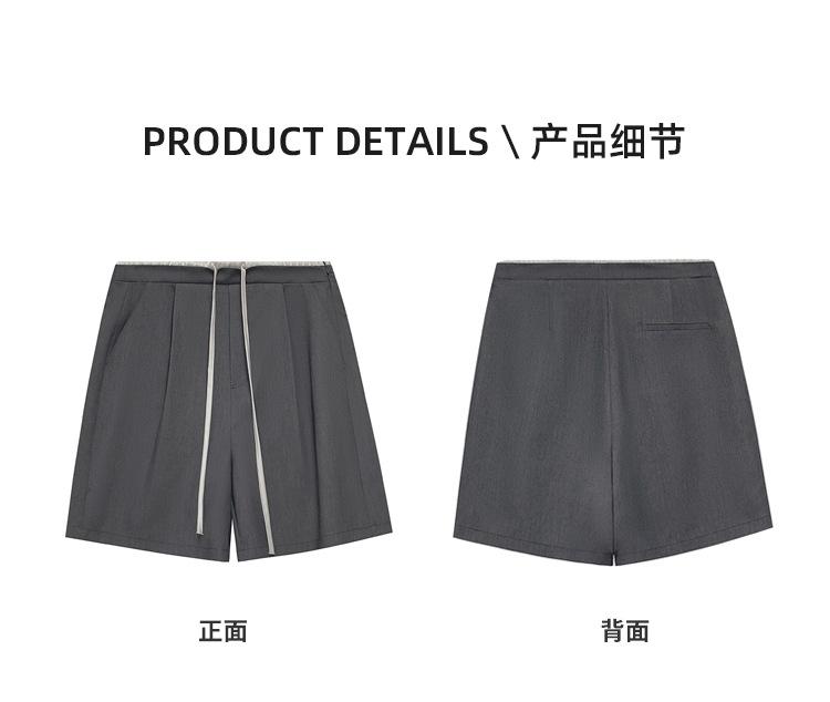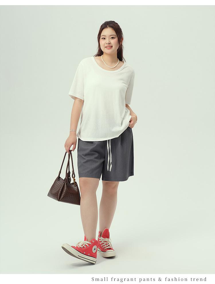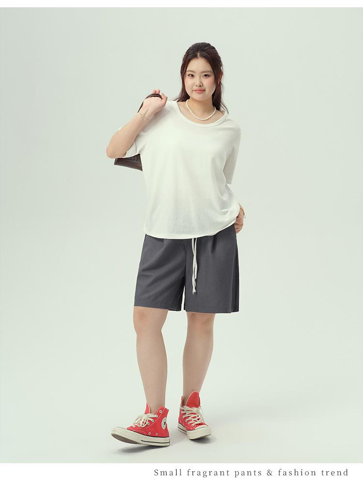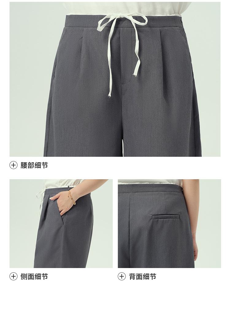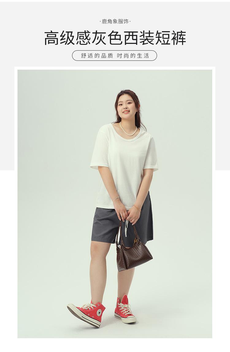 Shorts de Traje Gris de Alta Gama para Mujer de Talla Grande Delgados de Cintura Alta con Cordones Borde Blanco Casual Rectos de Largo Medio