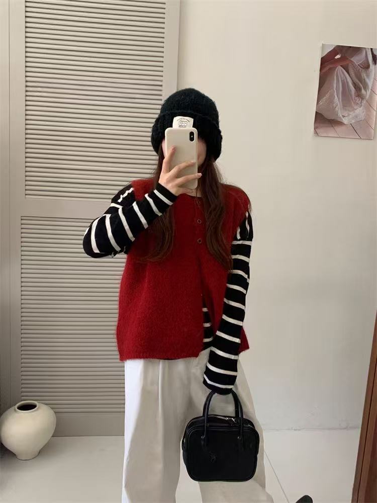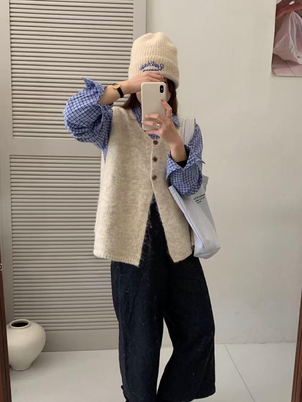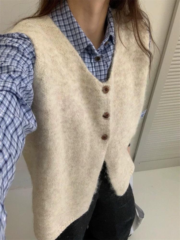 Estilo perezoso simple chaleco suéter de capas abrigo mujeres primavera 2025 nuevo holgado versátil sin mangas chaleco de punto
