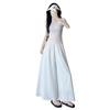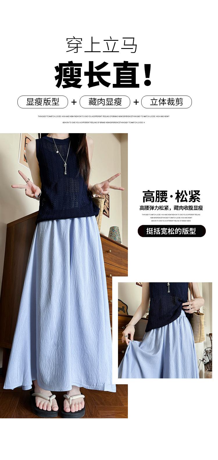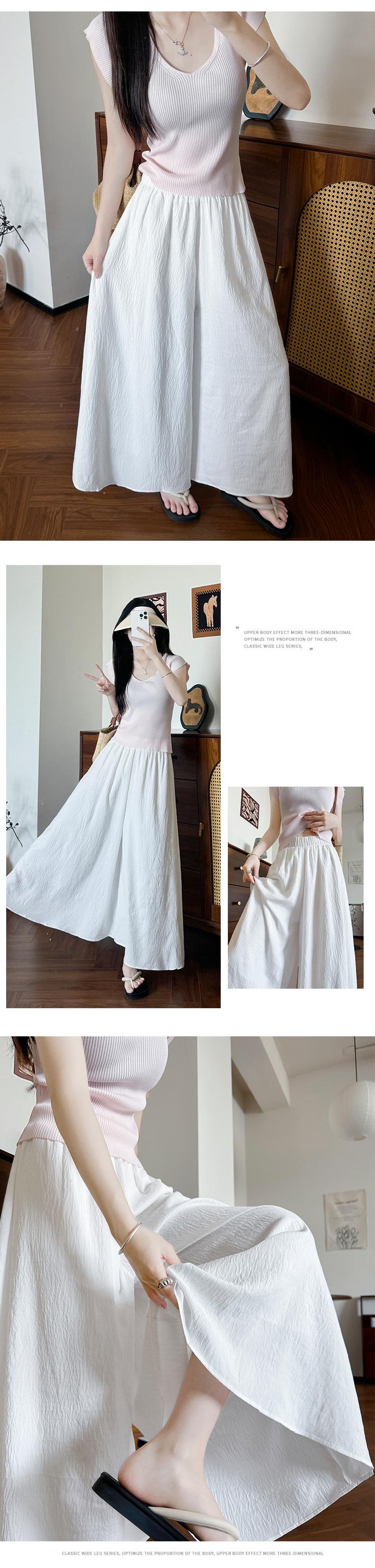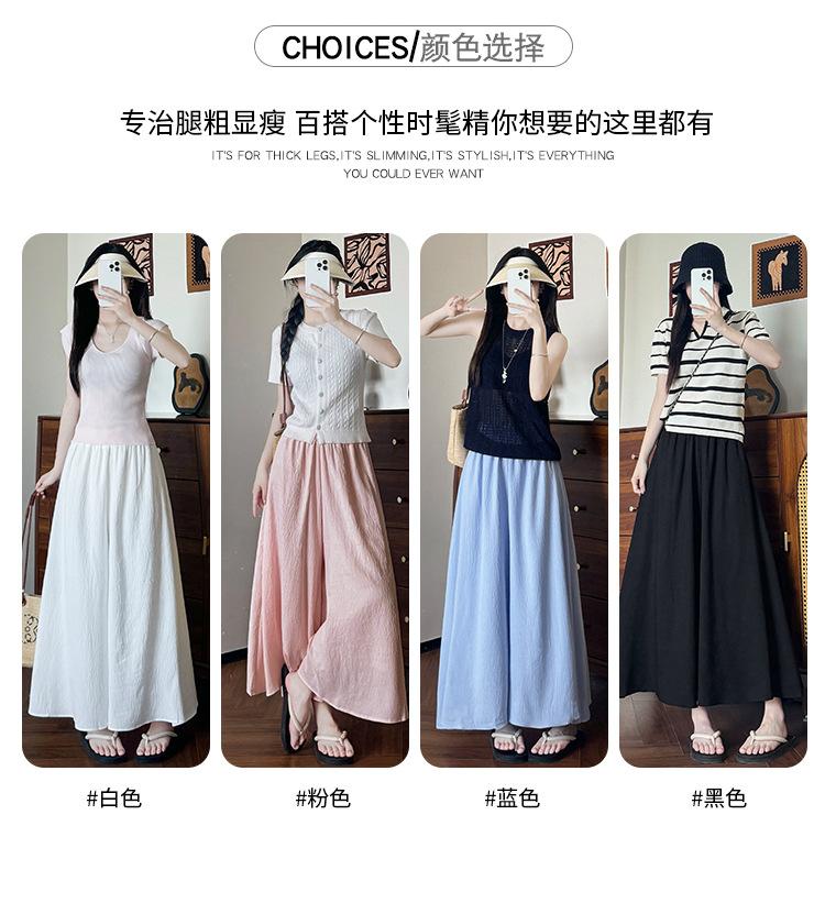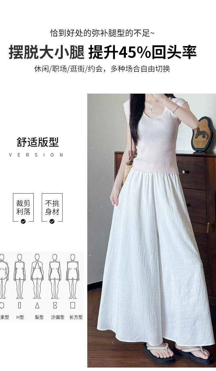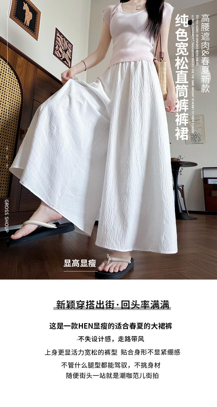 Culottes plisados blancos para mujer Verano 2025 Nueva falda A-line drapeada de cintura alta para mujer Pantalones casuales de pierna ancha de seda helada