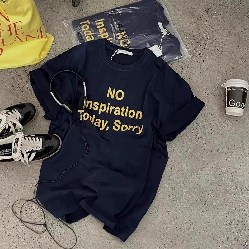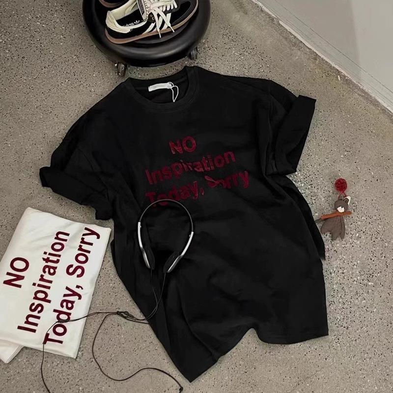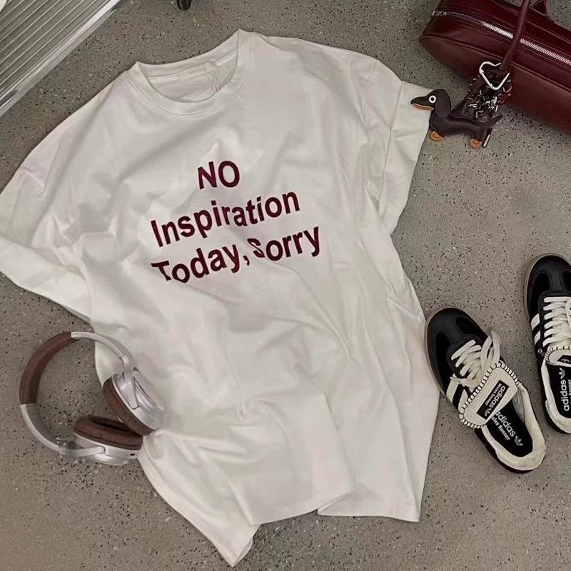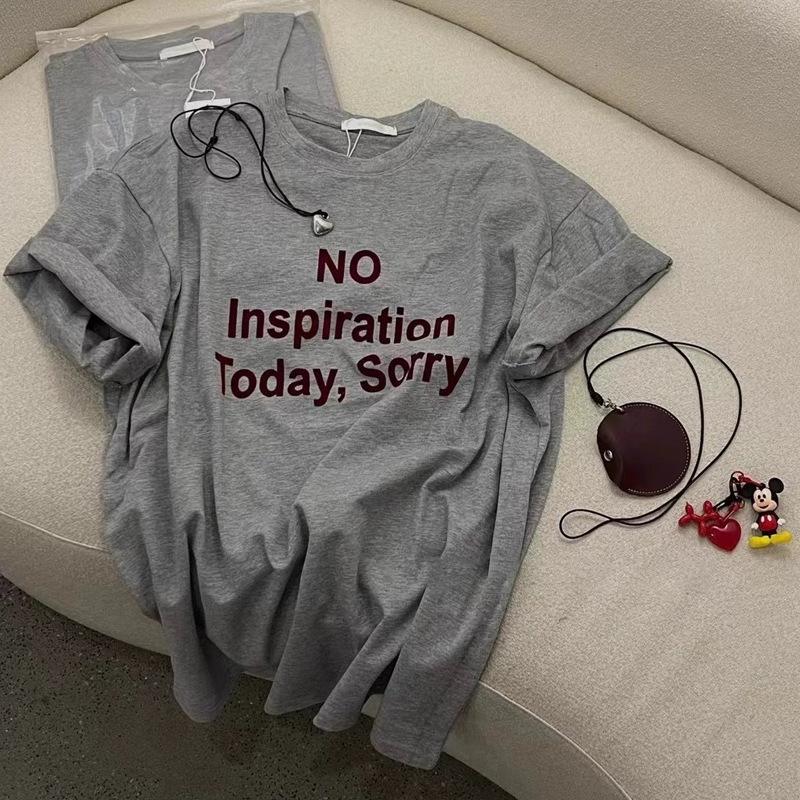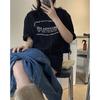 Ropa de Mujer Verano 2025 Nueva Camiseta de Manga Corta Estilo Coreano Holgada con Estampado de Letras Sencilla Versátil Cuello Redondo Algodón