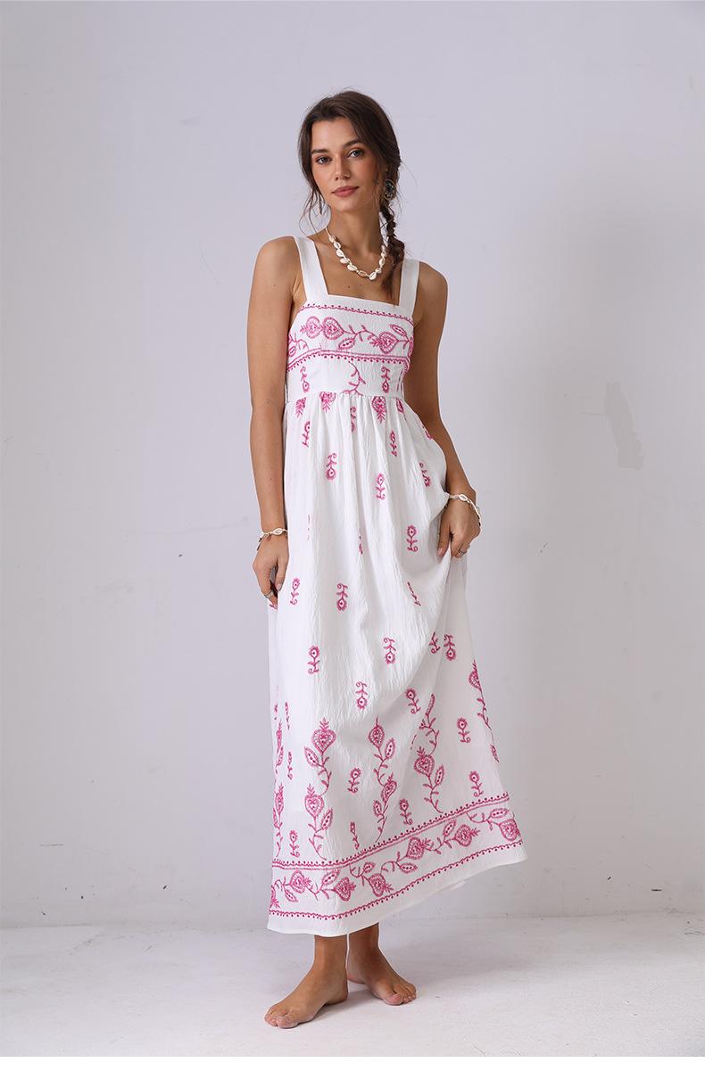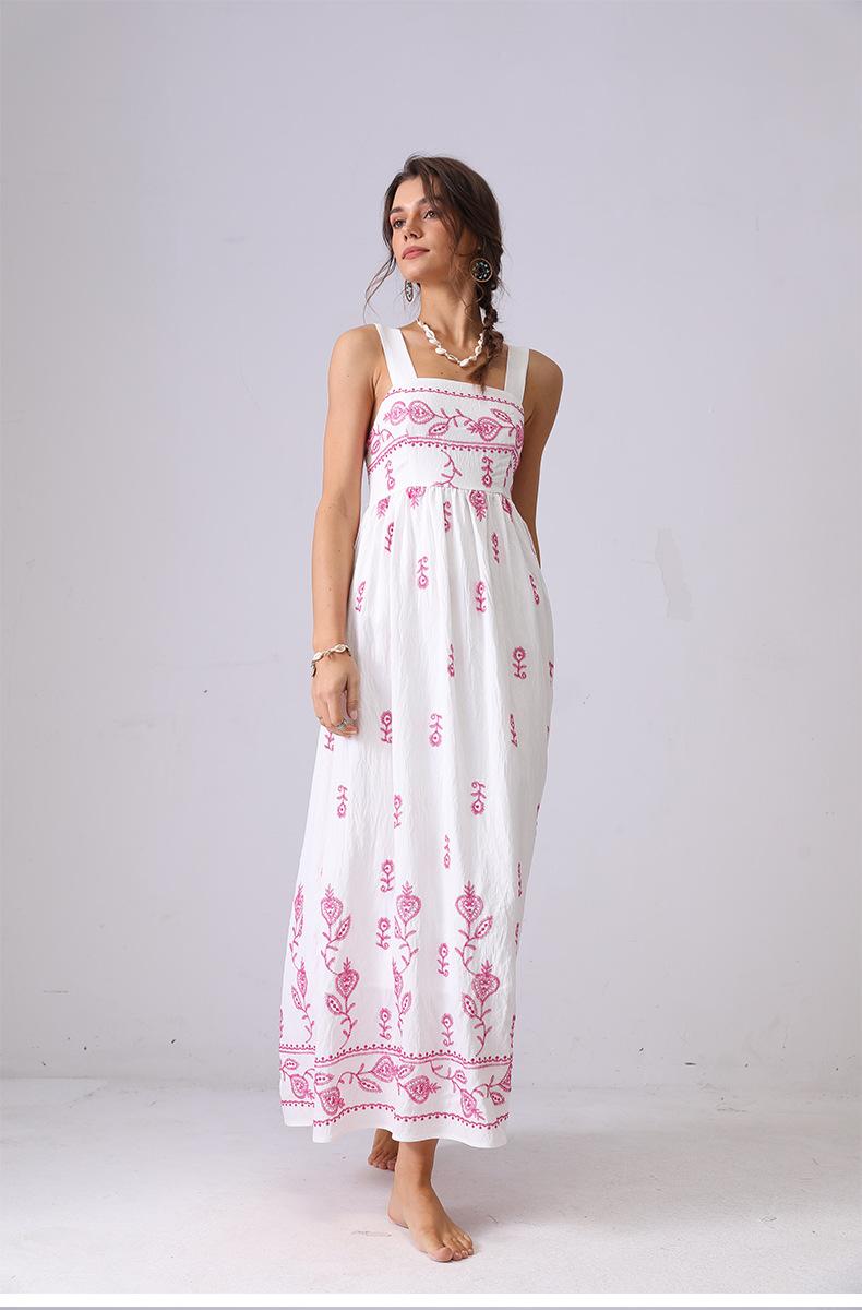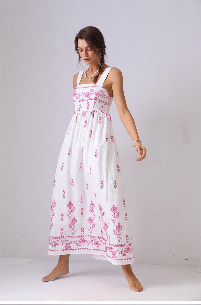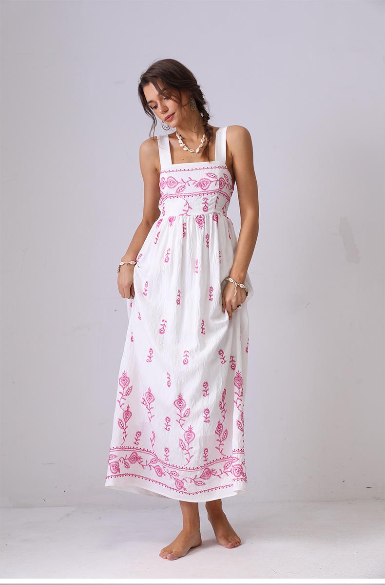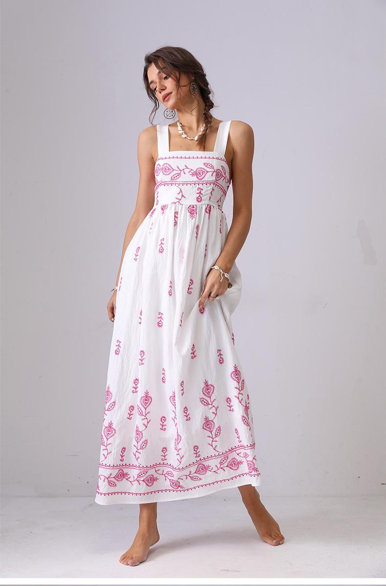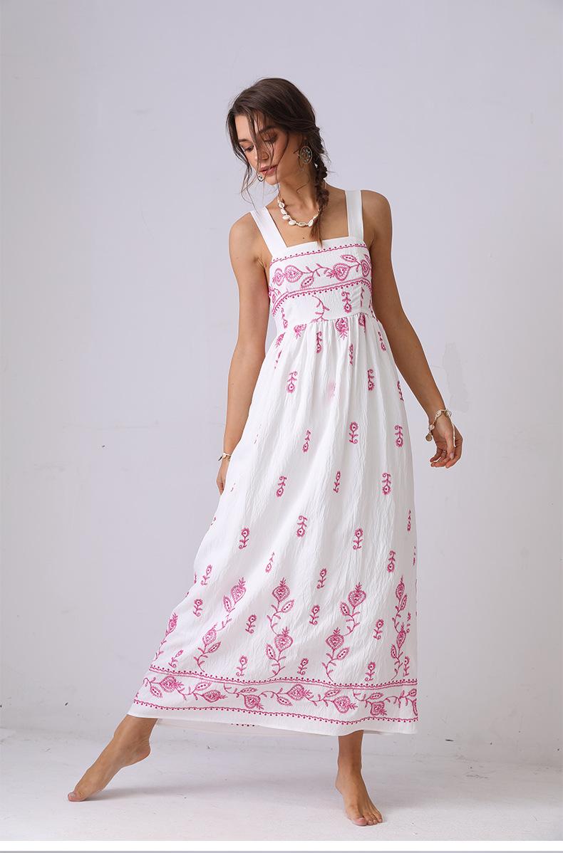 Vestido de tirantes iridiscente de nicho francés de alta gama con bordado floral, sin espalda, moda vacacional, vestido largo transfronterizo