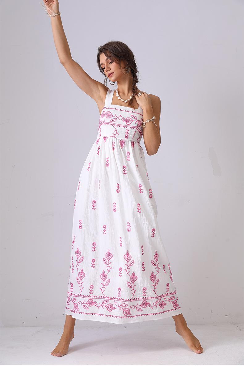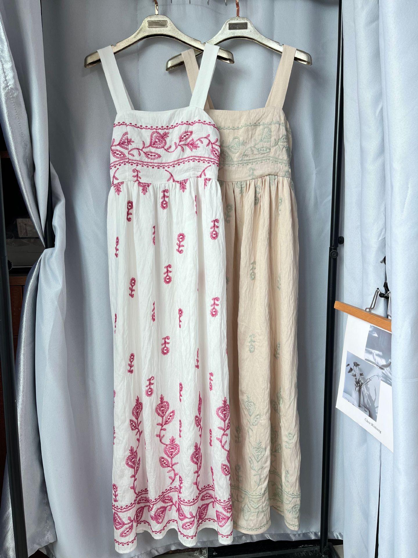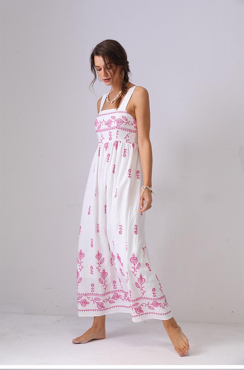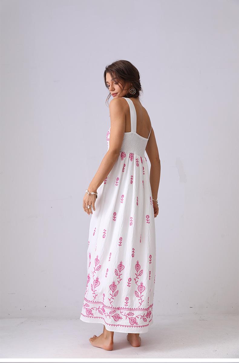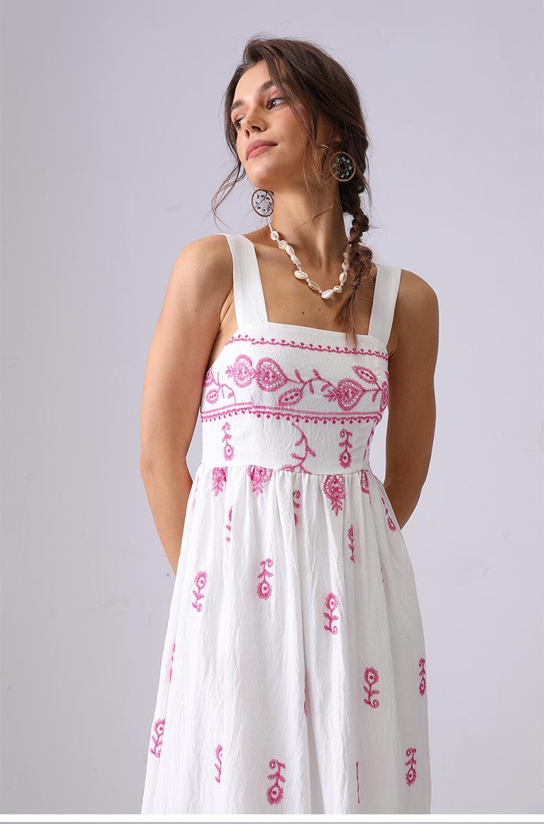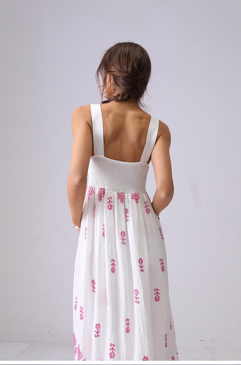 Vestido de tirantes iridiscente de nicho francés de alta gama con bordado floral, sin espalda, moda vacacional, vestido largo transfronterizo