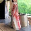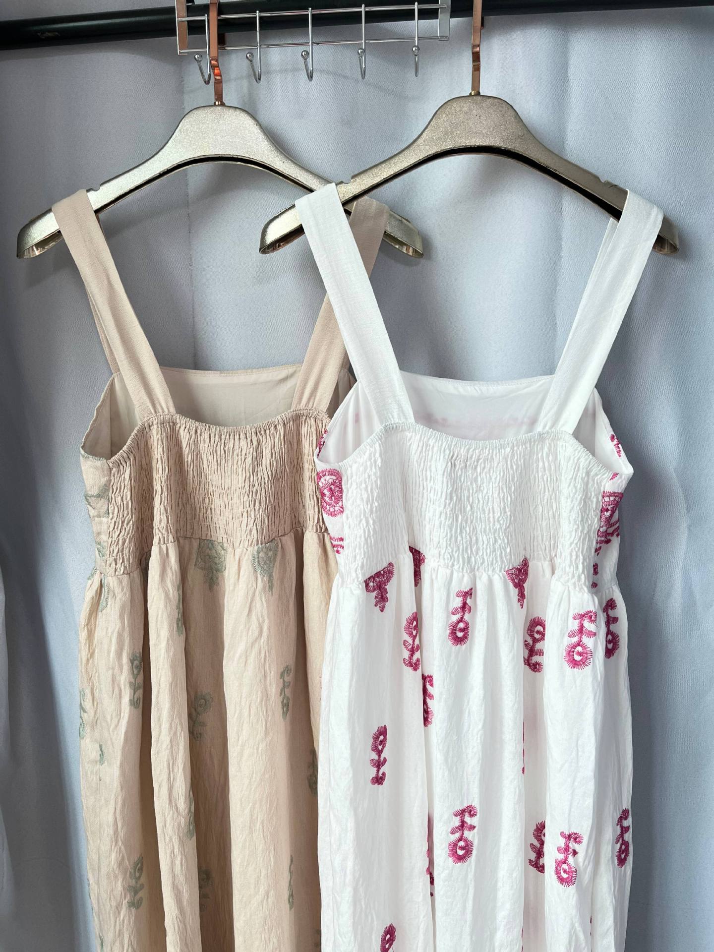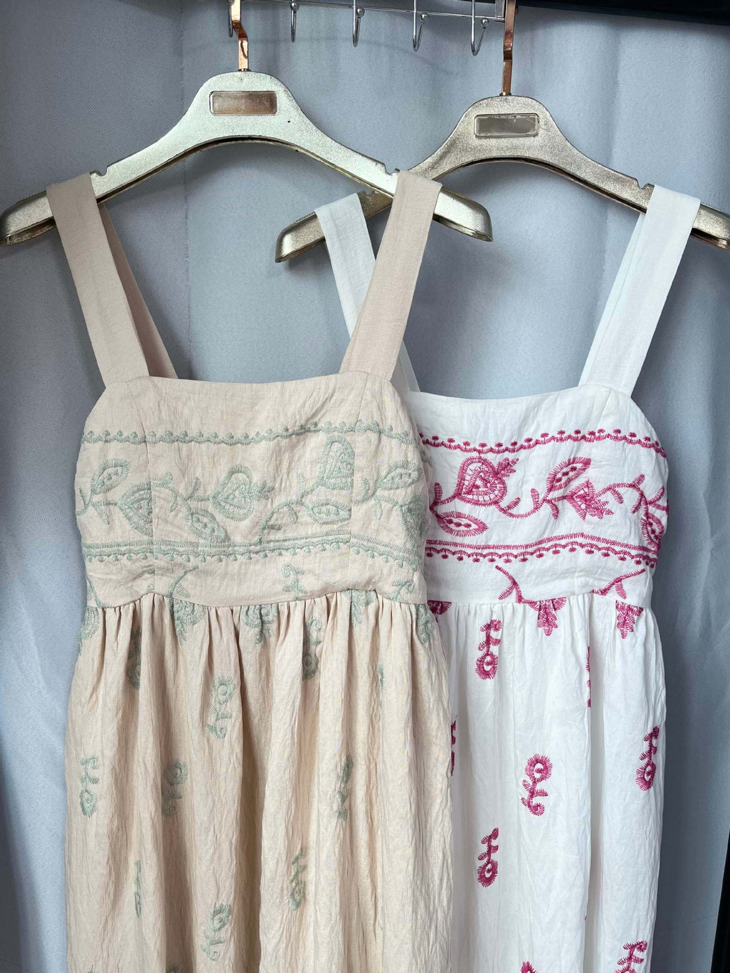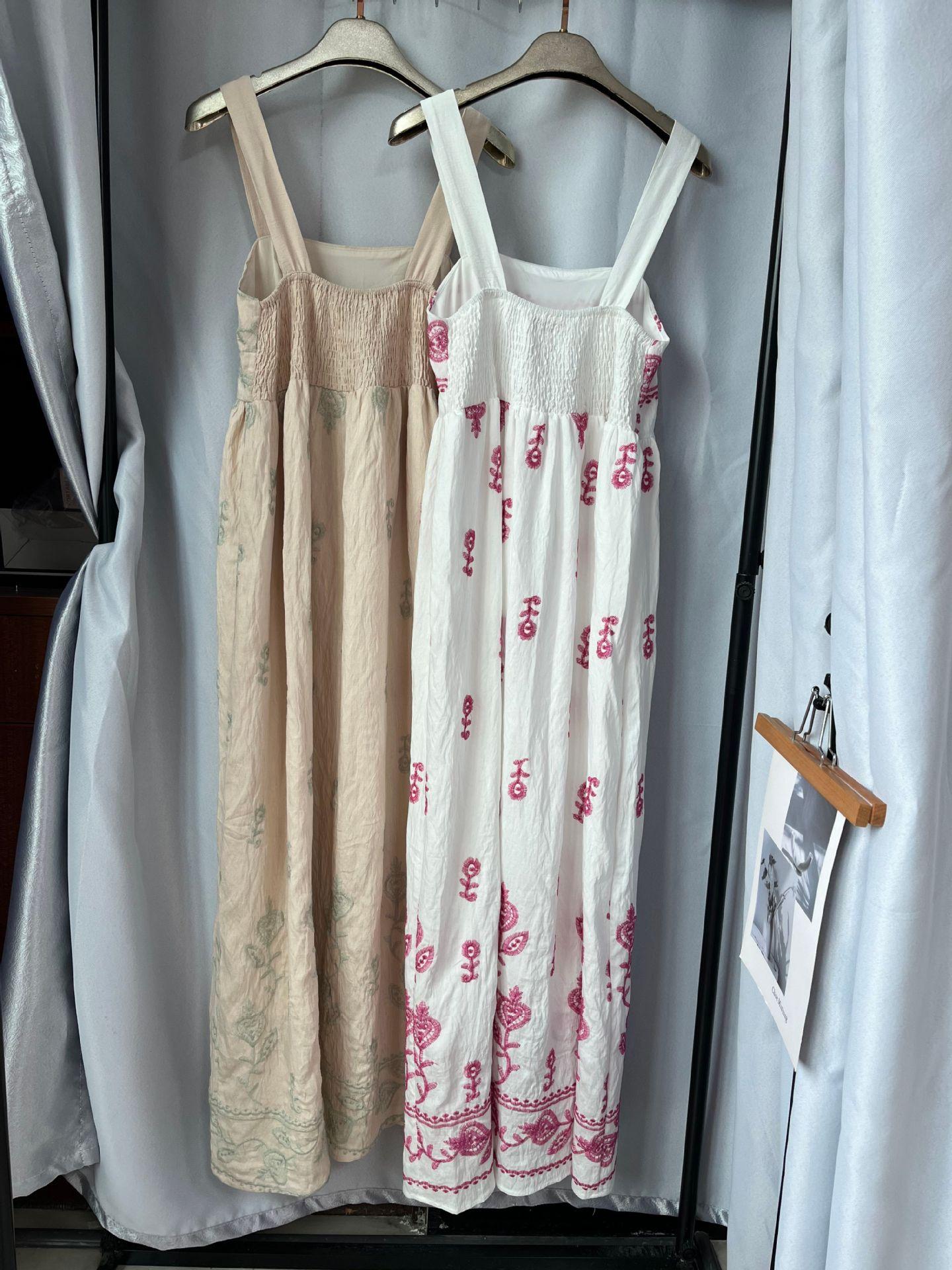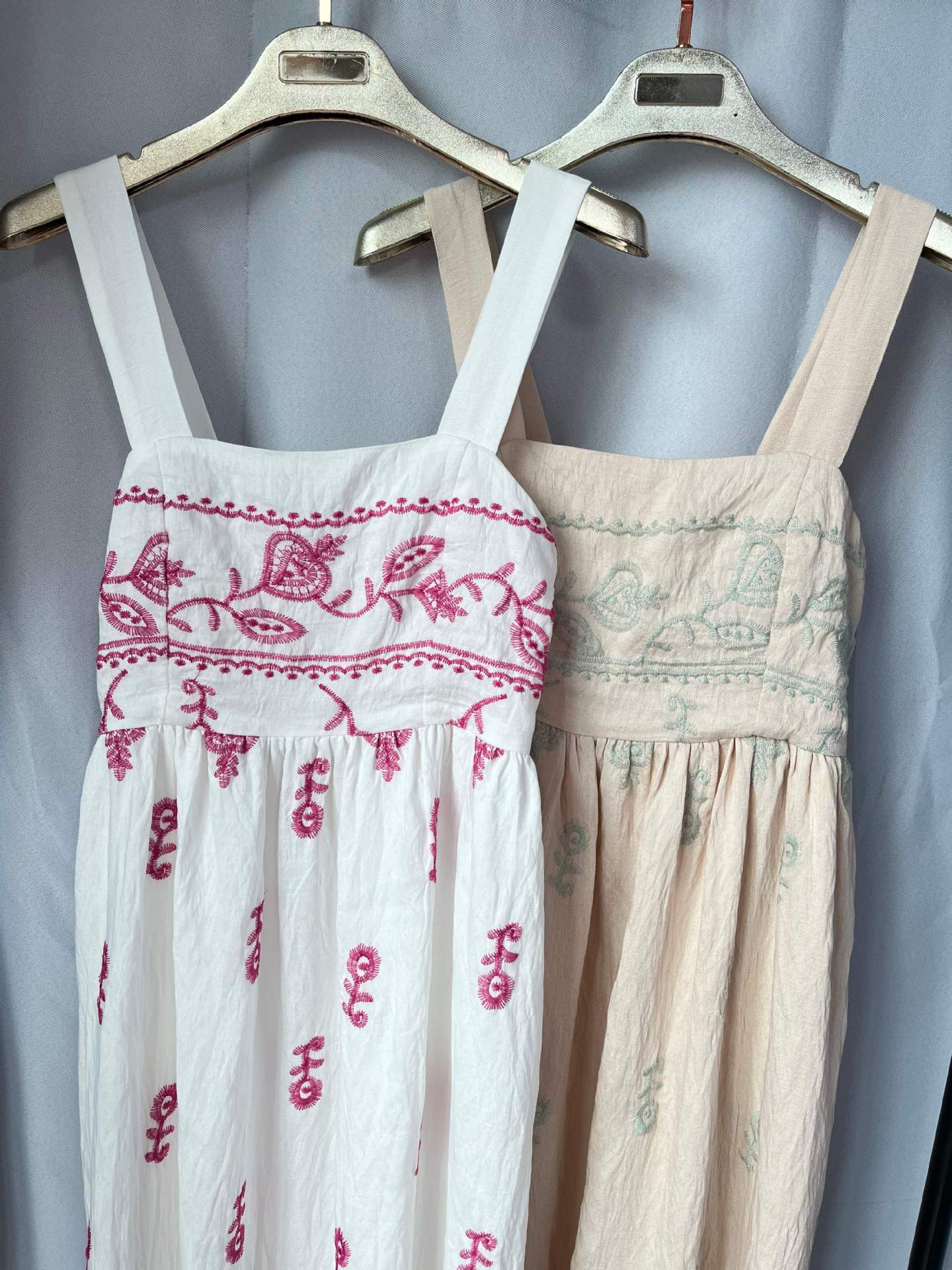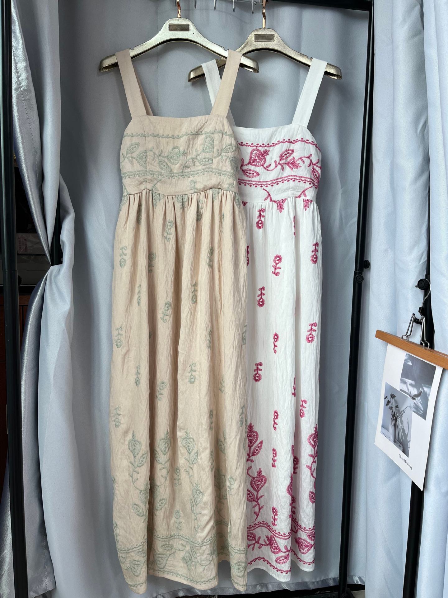 Vestido de tirantes iridiscente de nicho francés de alta gama con bordado floral, sin espalda, moda vacacional, vestido largo transfronterizo