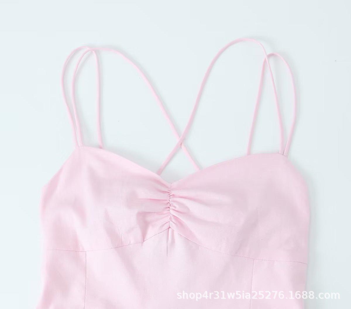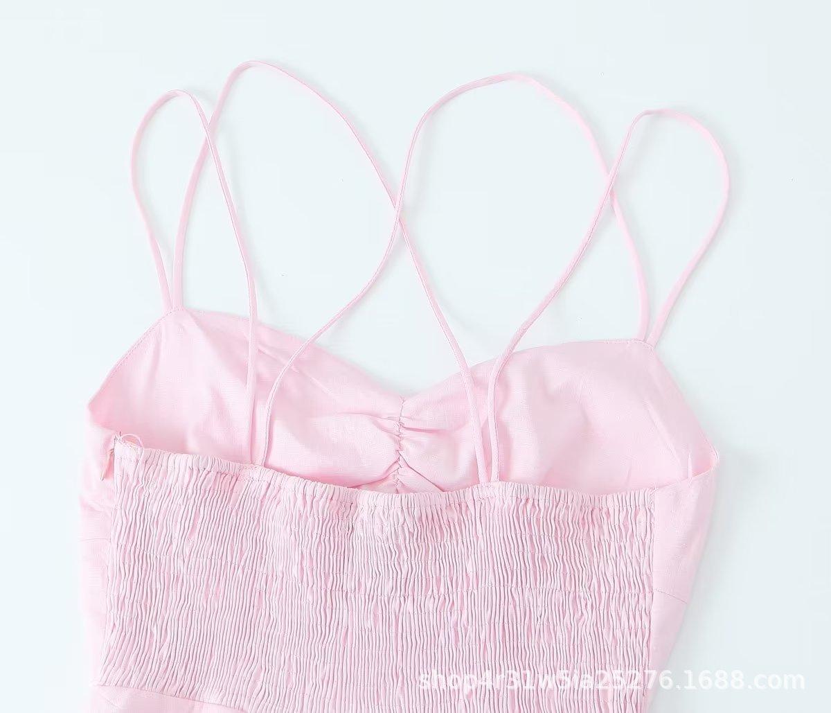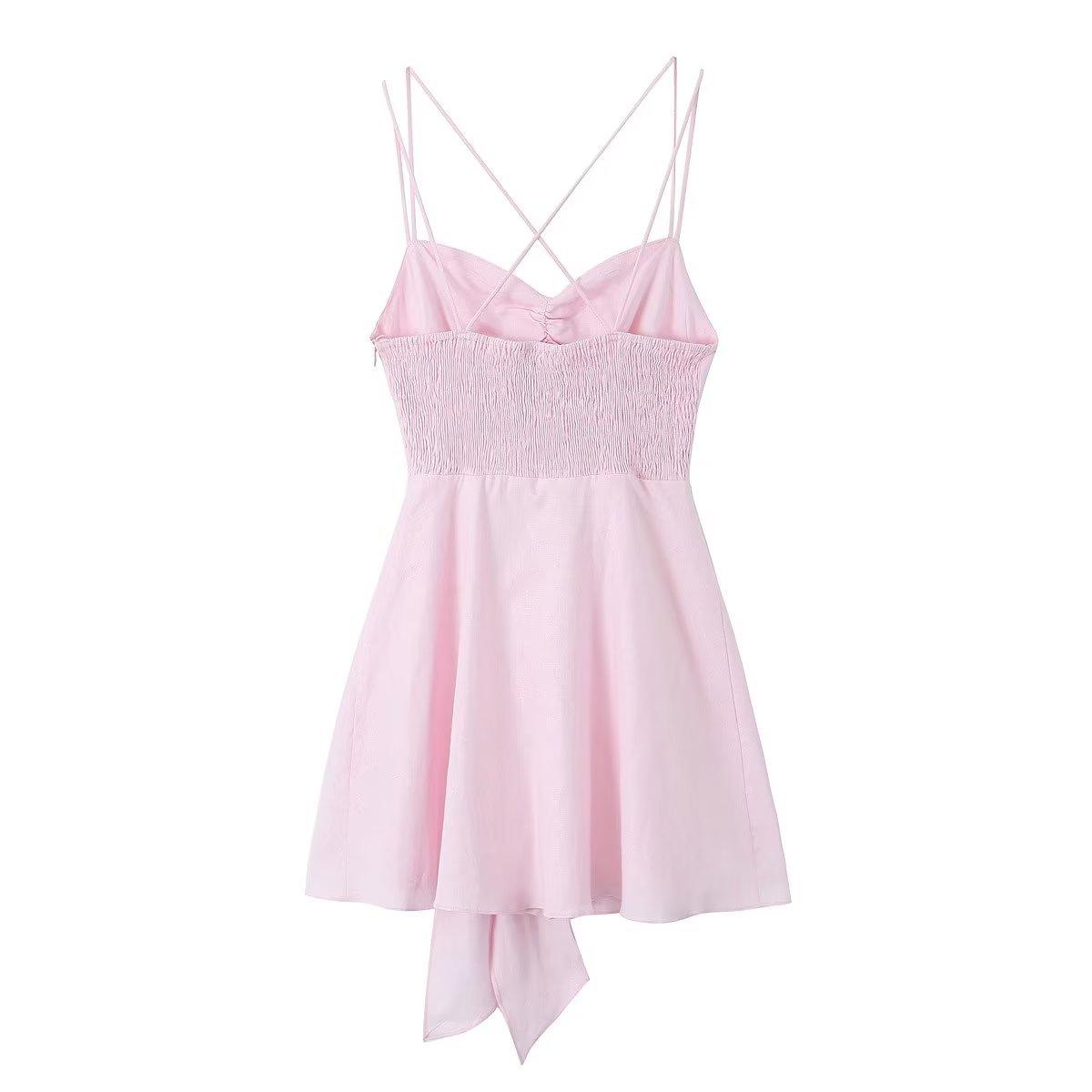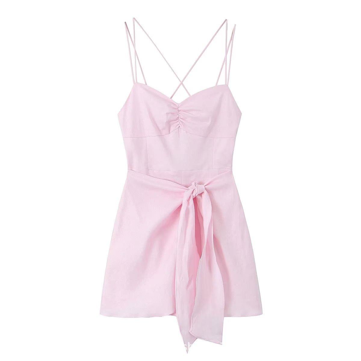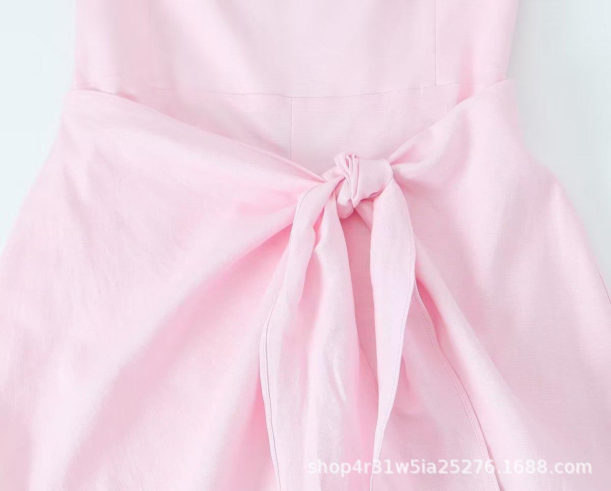 Estilo europeo y americano 2023 Verano nuevo vestido de lazo de color sólido para mujer, moda delgada y entallada, al por mayor