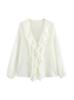 Camisa de Manga Larga con Cuello en V para Mujer Europea y Americana Transfronteriza Nueva Moda Primavera Verano 2025 Decorativa Laminada Esponjosa 9479040