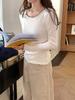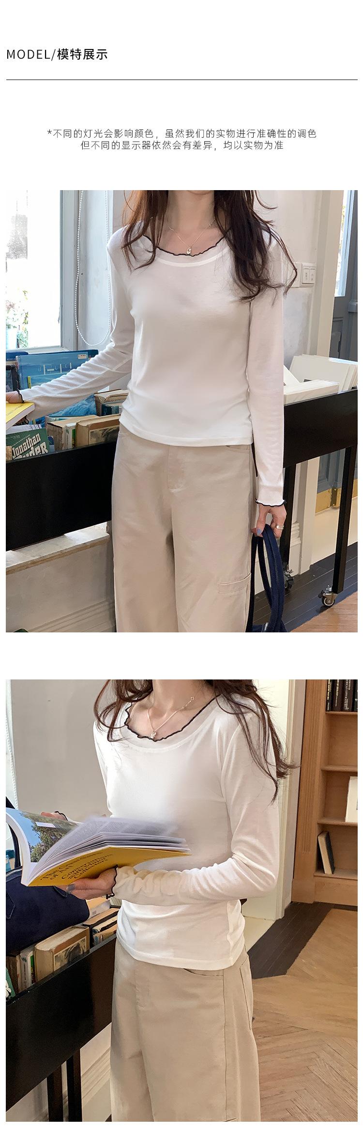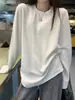 Camiseta Blanca de Manga Larga para Mujer Otoño 2025 Nuevo Estilo Coreano Corte Ajustado Versátil Casual Jersey Cuello Redondo Camiseta Básica