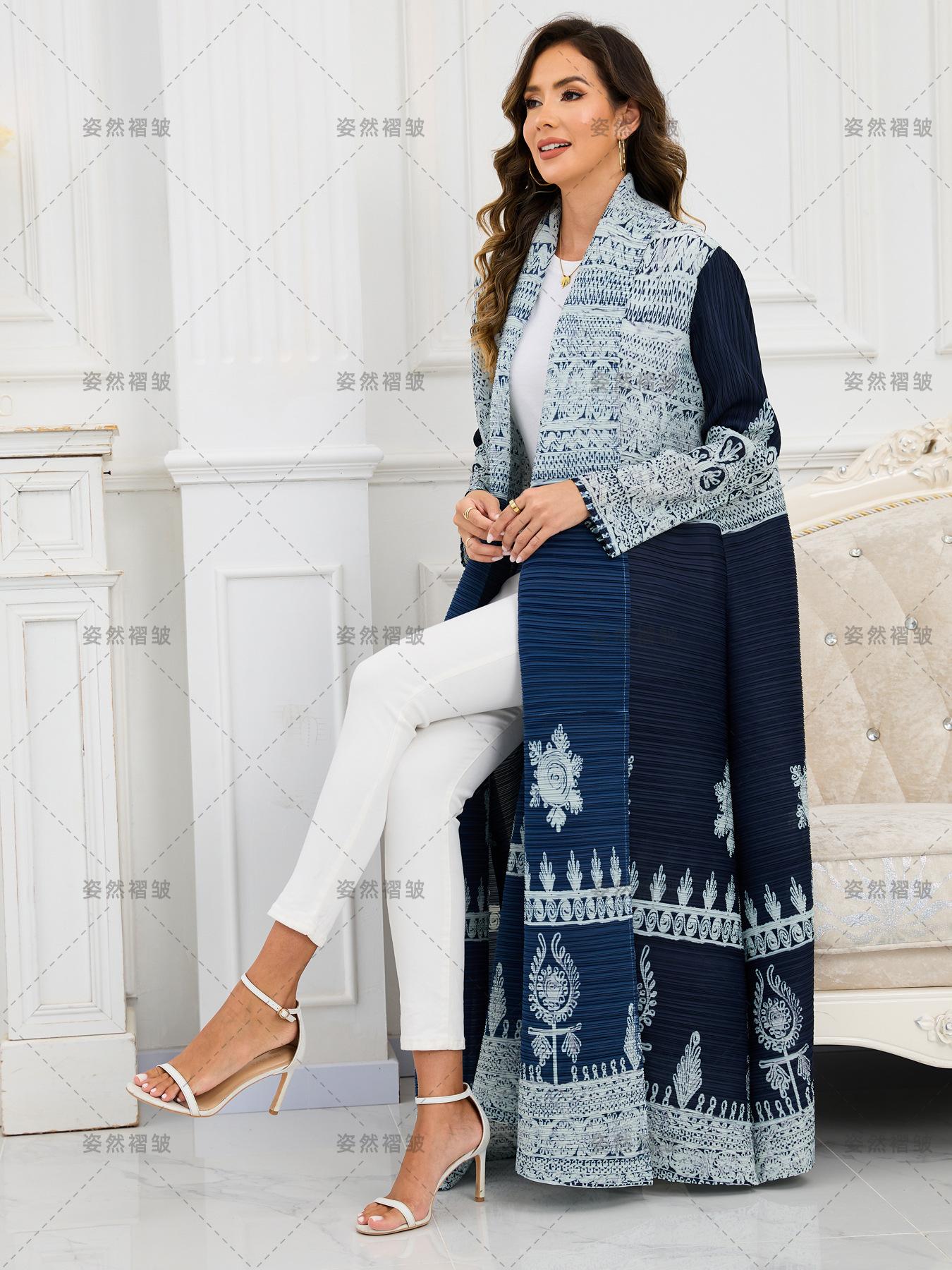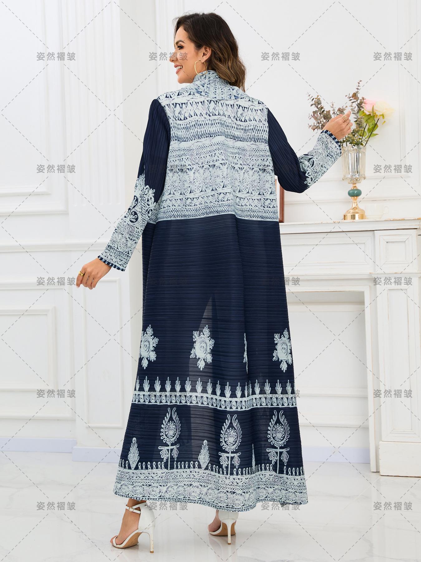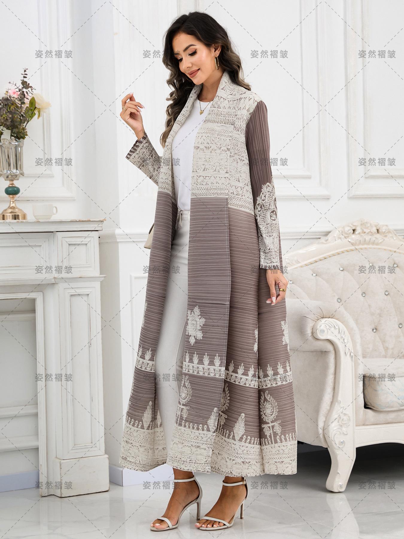 Medio Oriente Medio Oriente Ropa Abaya Moda Arabia Saudita Estampado Plisado Chaqueta Cárdigan Miyake Abaya