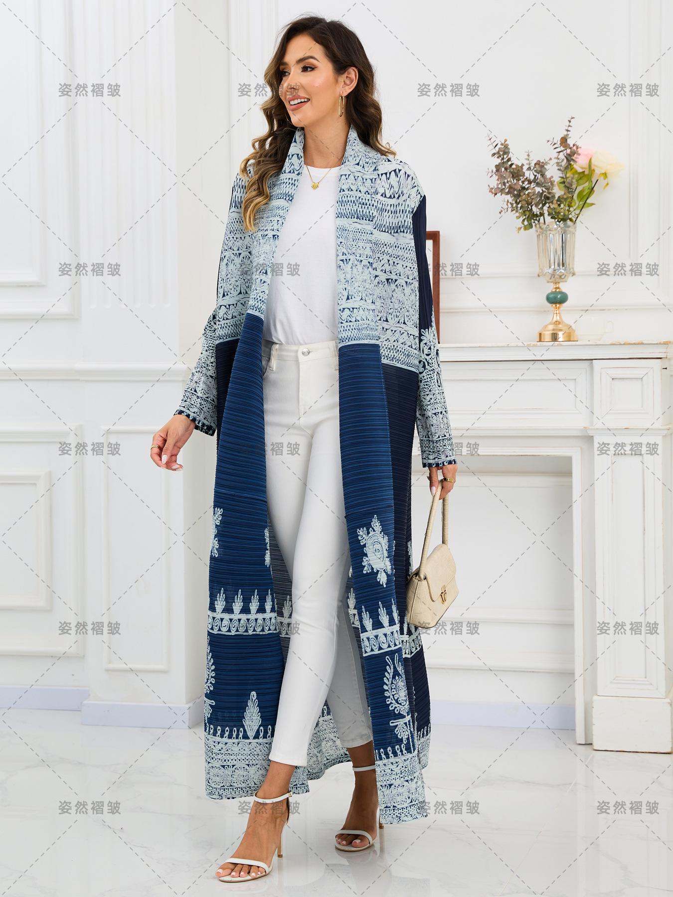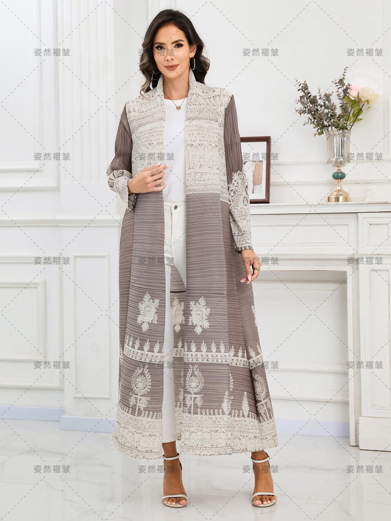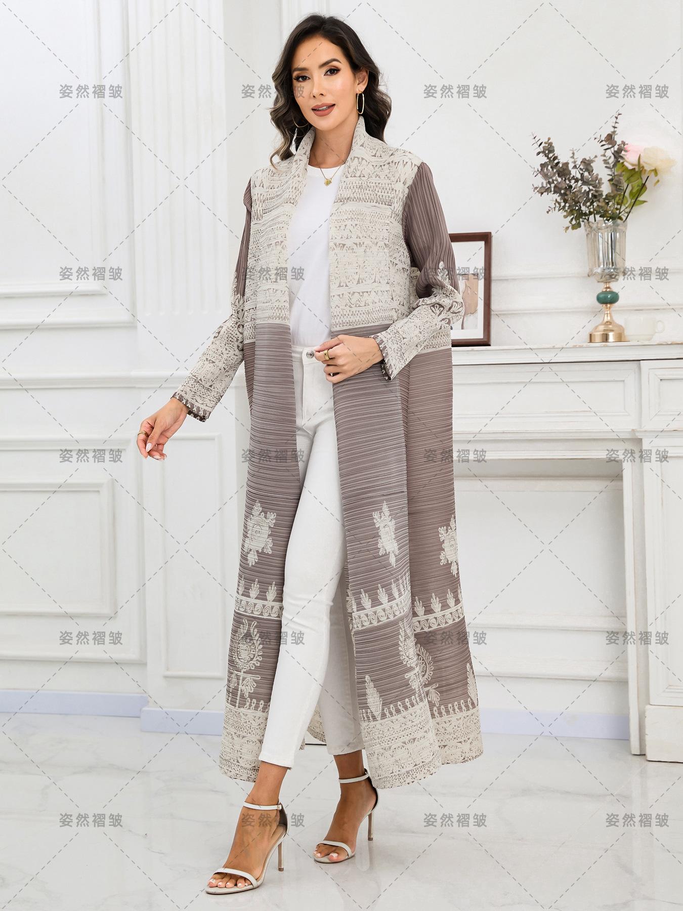 Medio Oriente Medio Oriente Ropa Abaya Moda Arabia Saudita Estampado Plisado Chaqueta Cárdigan Miyake Abaya
