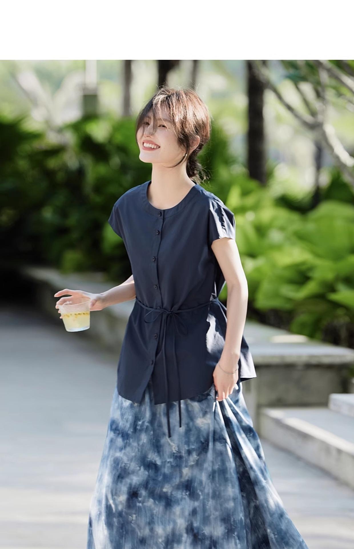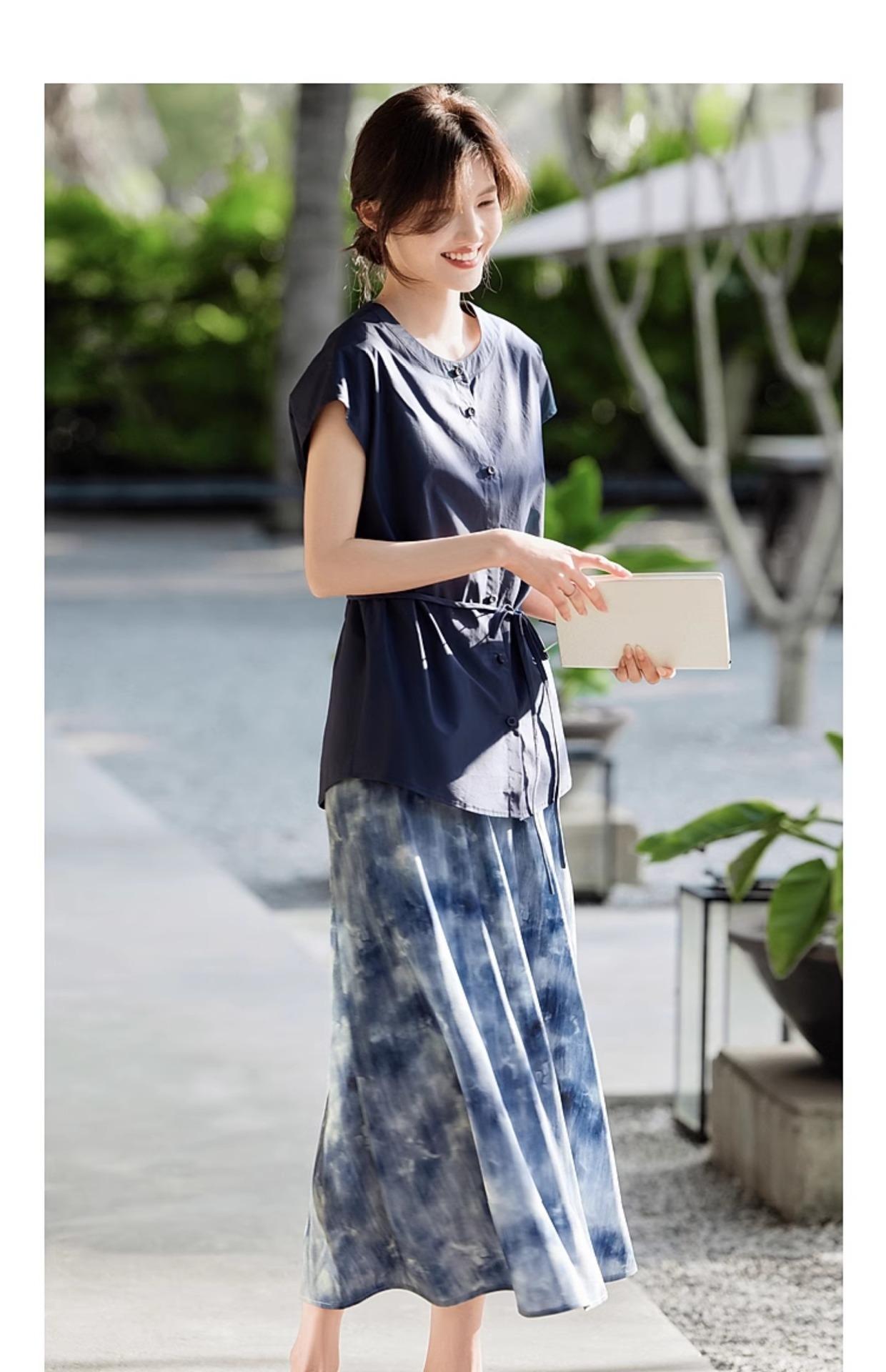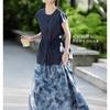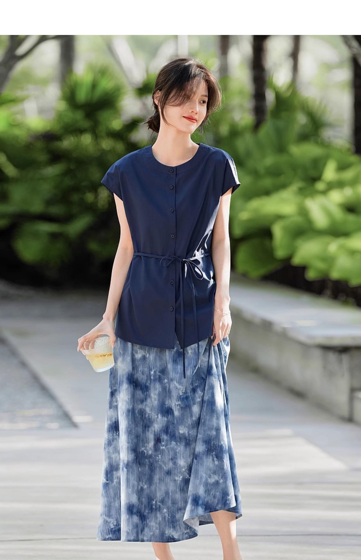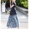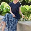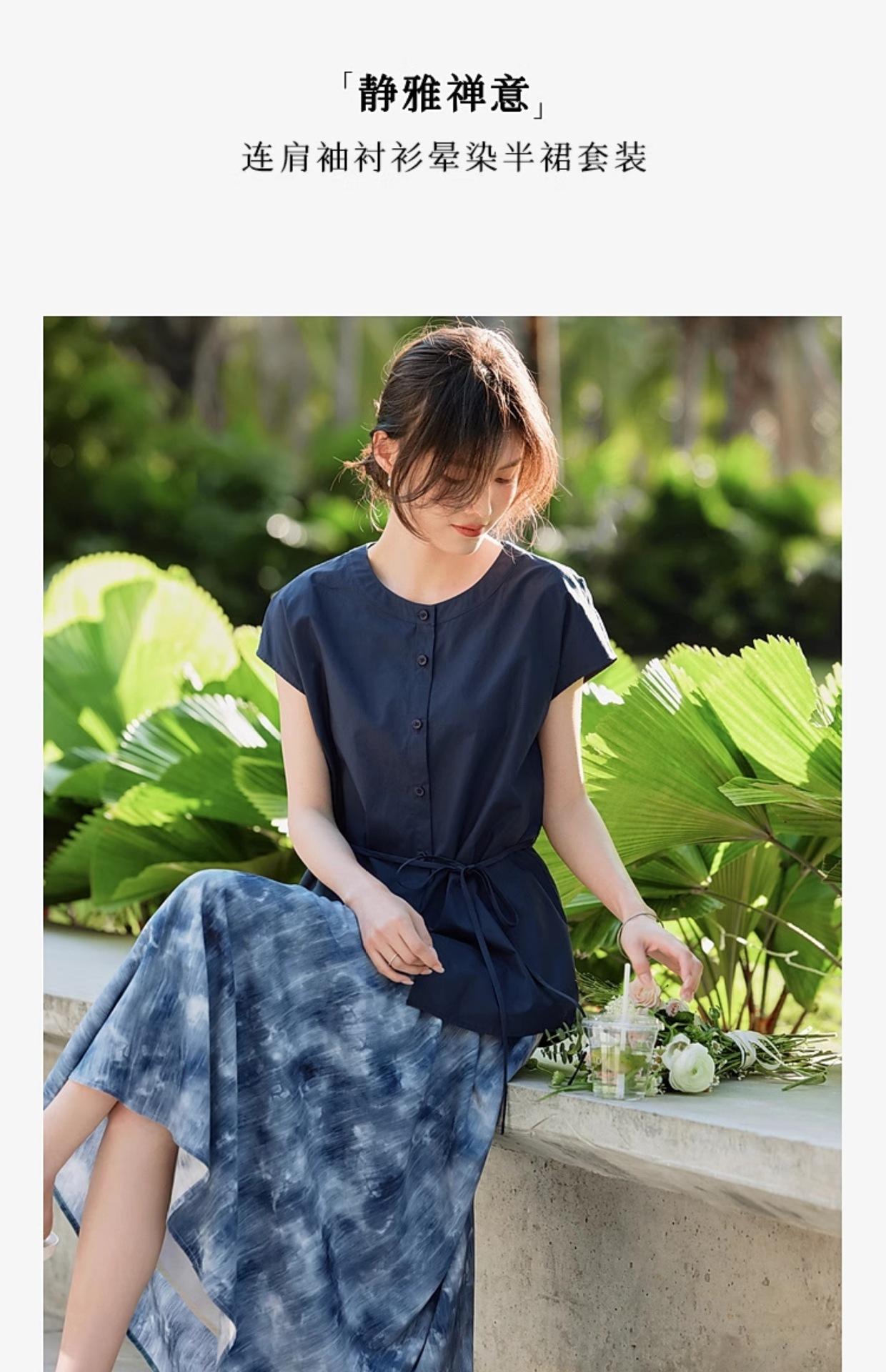 En stock, el popular y hermoso traje de mujer de verano 2025, camisa de algodón con falda floreciente, conjunto de dos piezas.