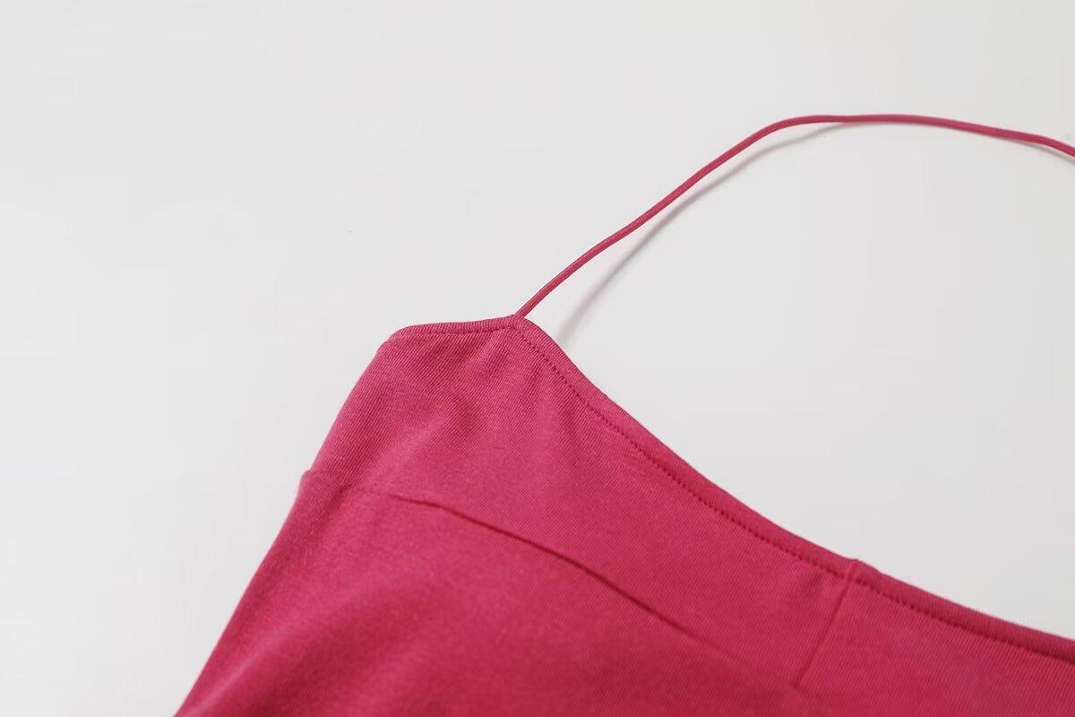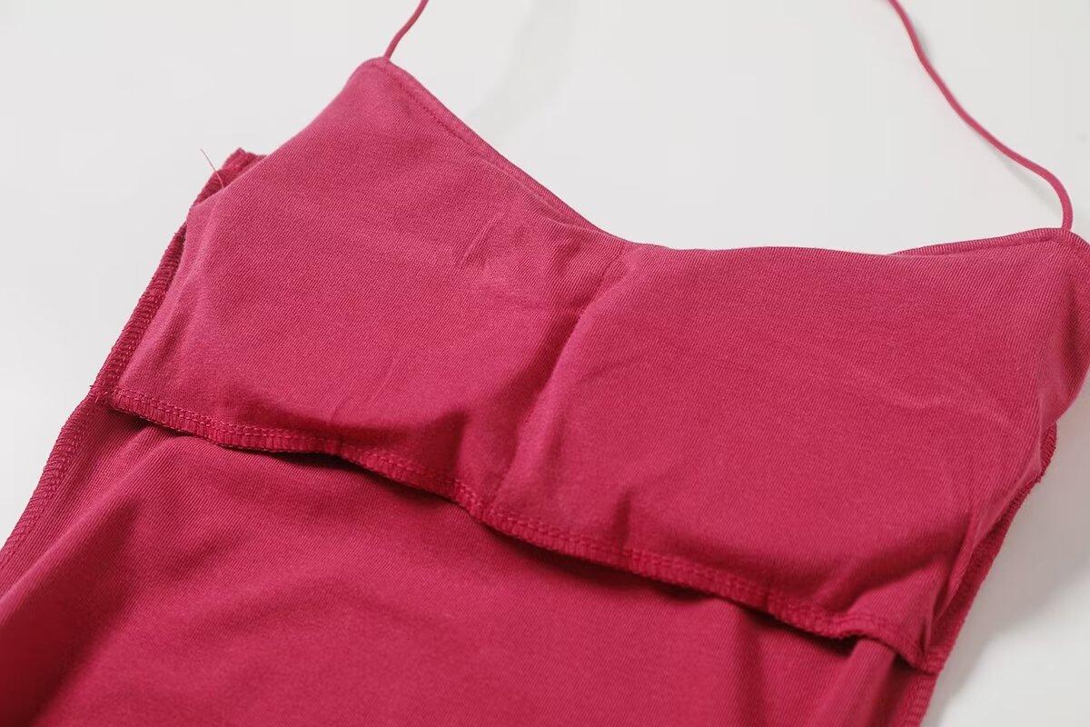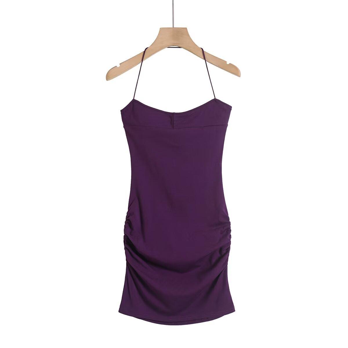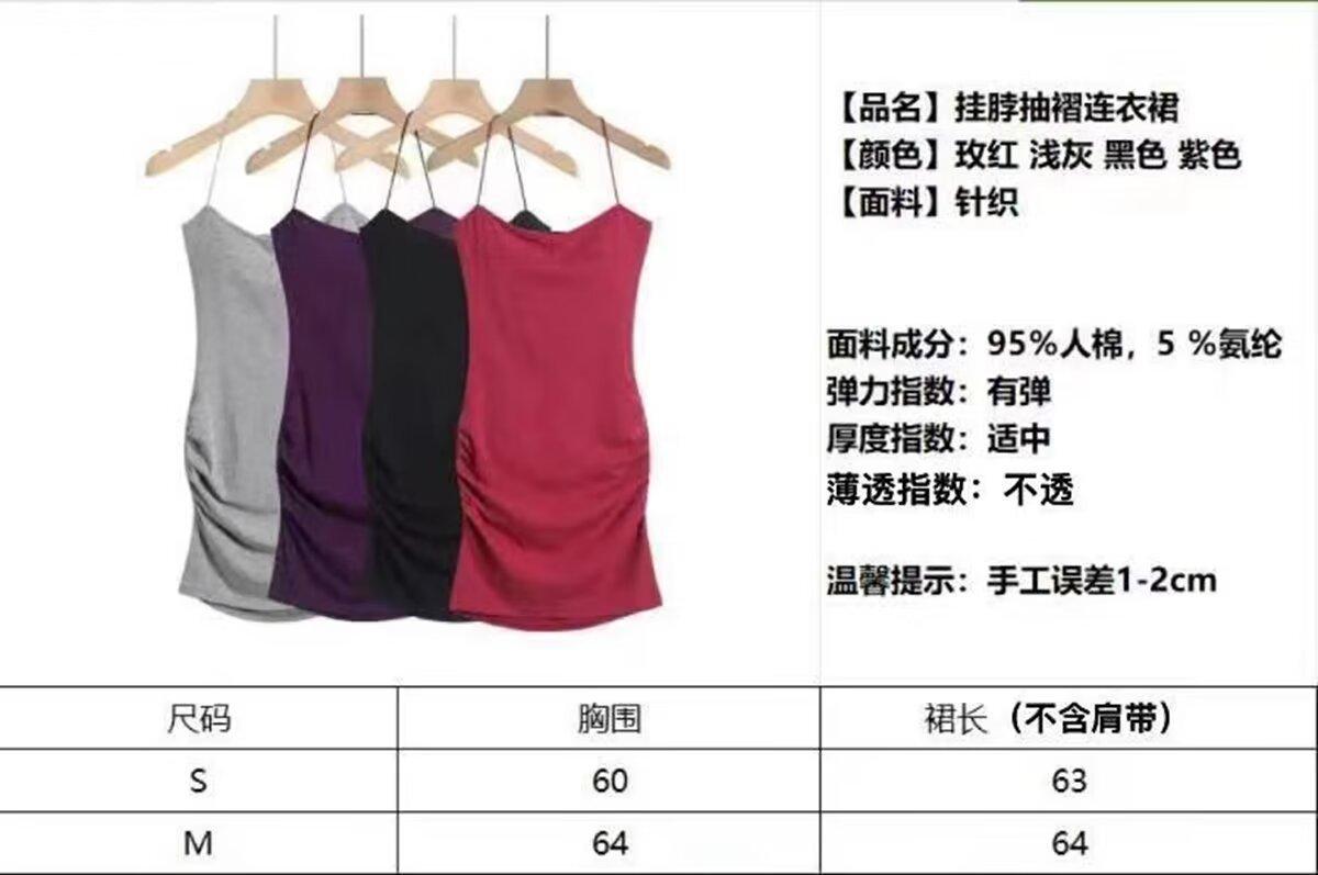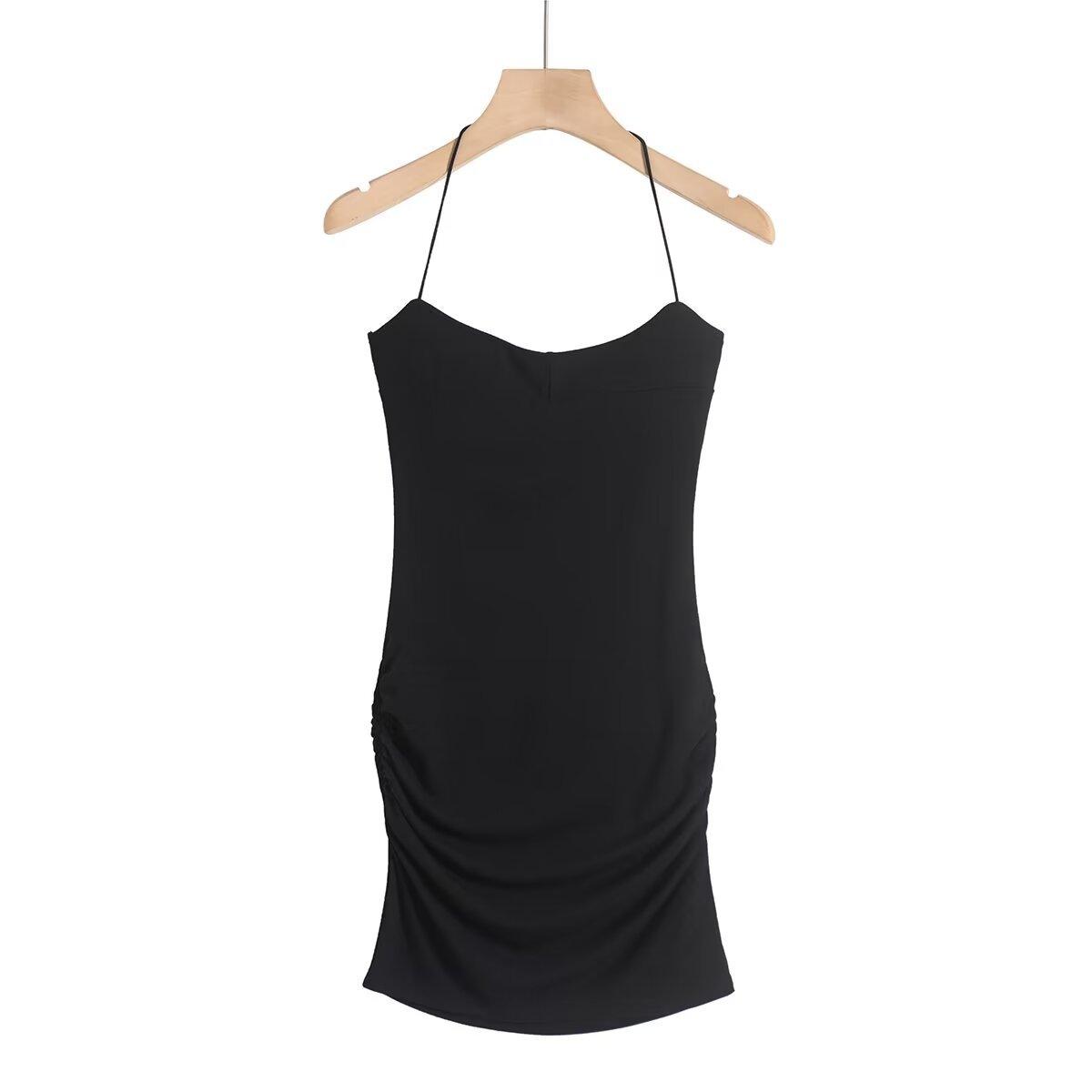 Spice Girls Vestido de Cuello con Tirante Delgado para Mujer Verano con Almohadilla en el Pecho Plisado Sexy Ajustado Adelgazante Cadera Largo Tubo Moderno Falda Corta