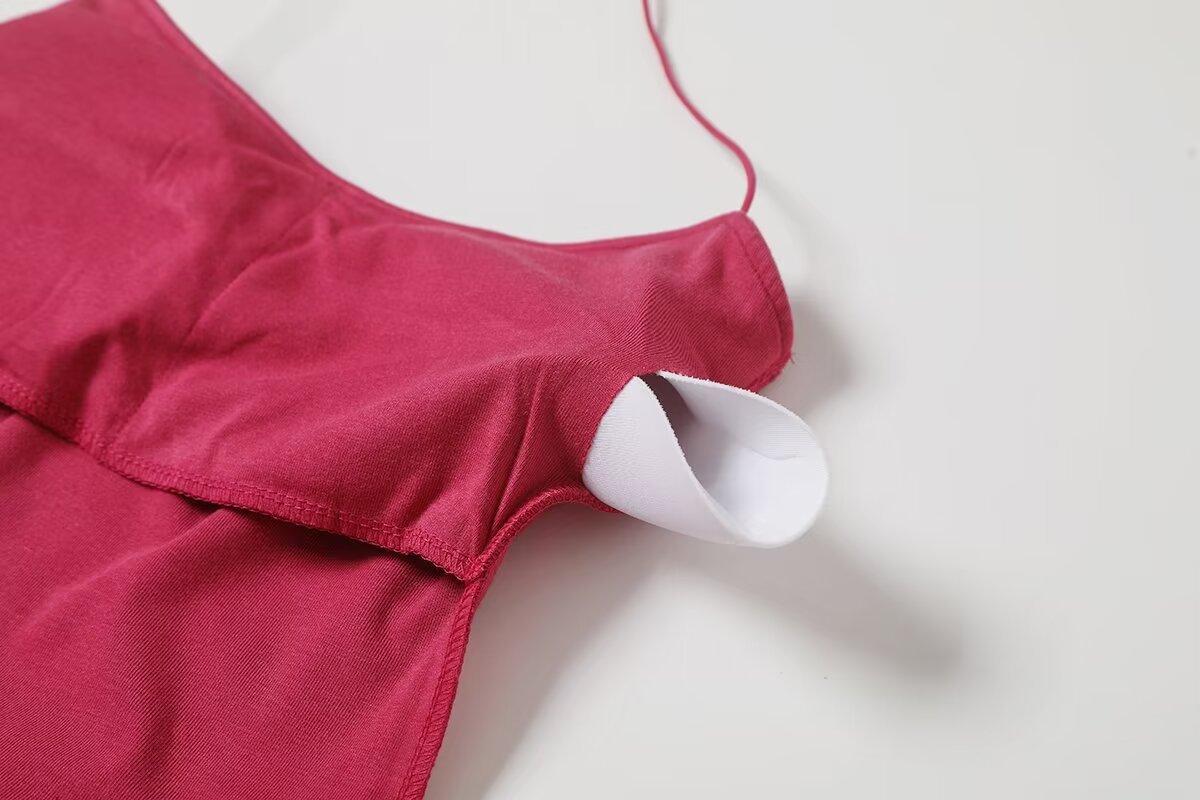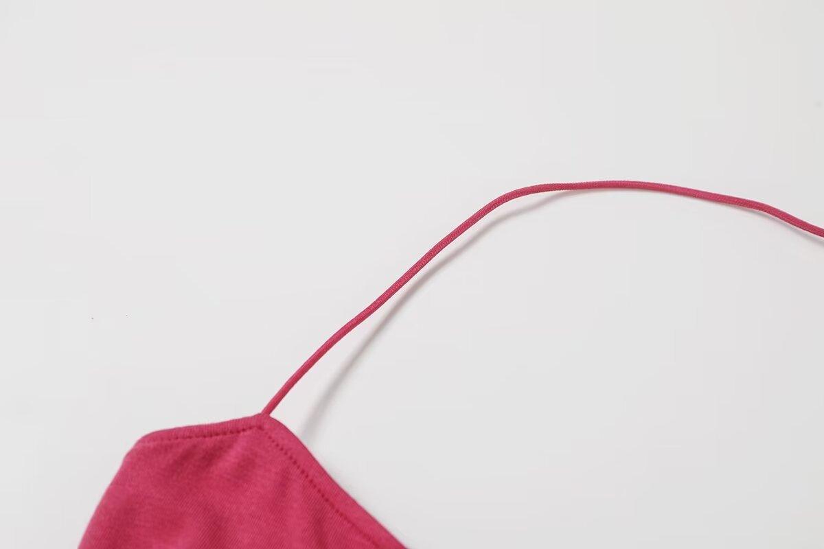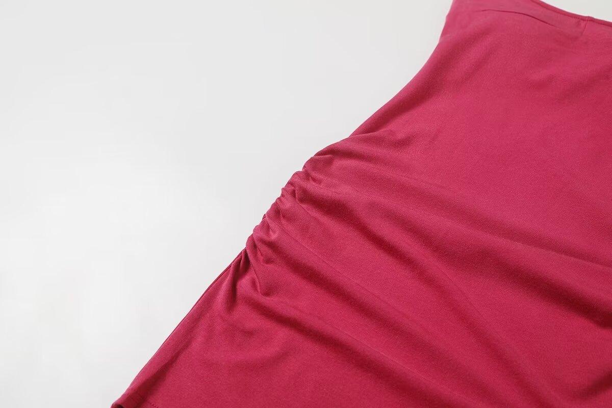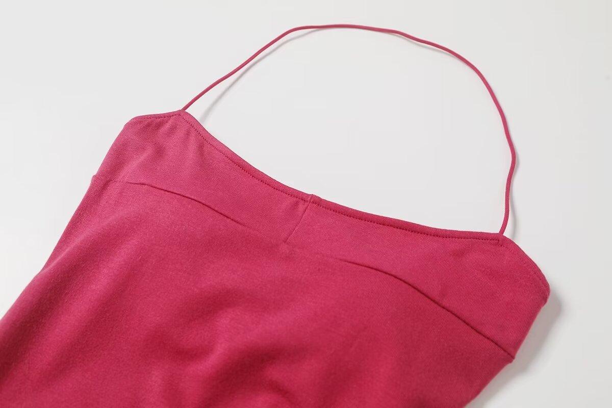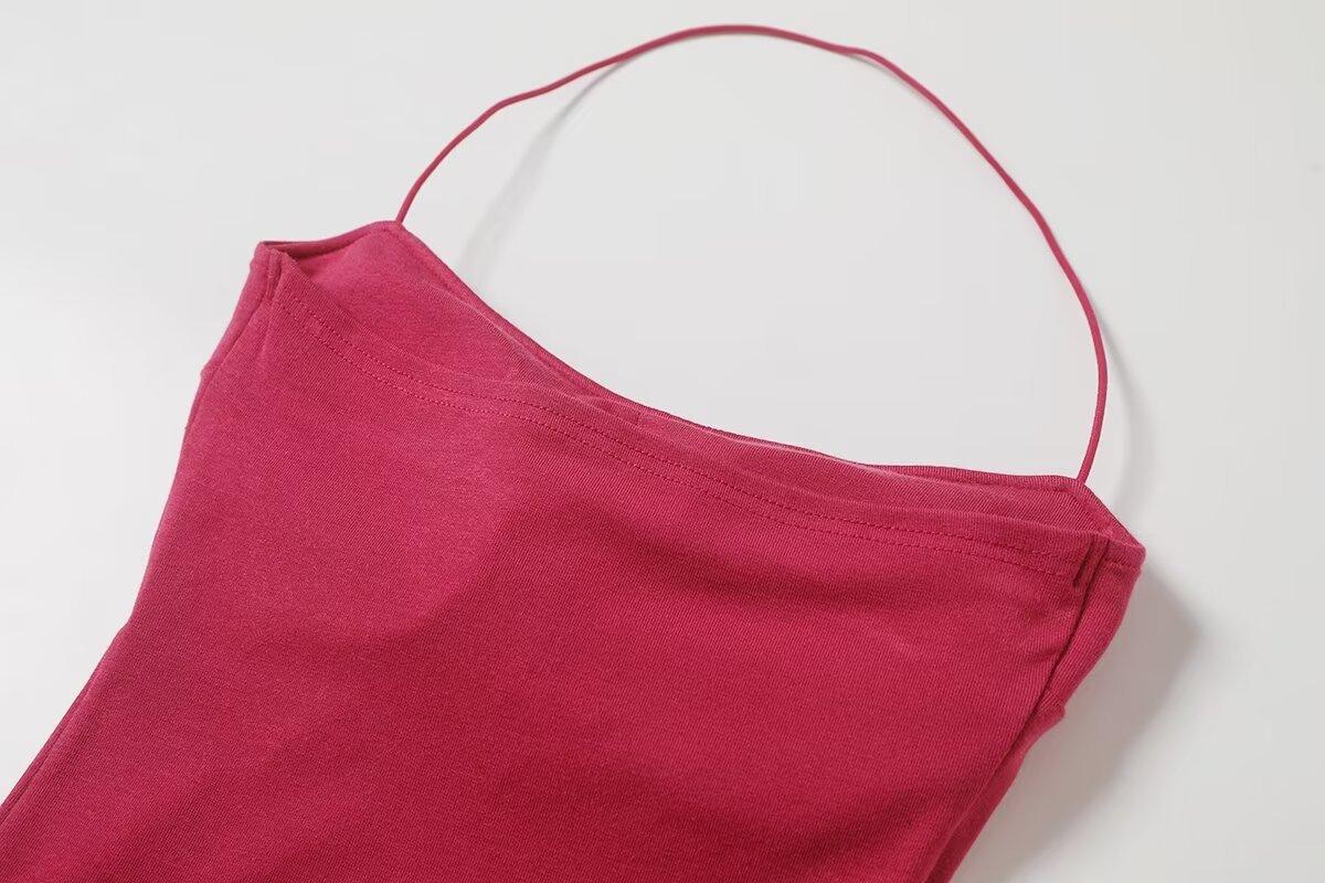 Spice Girls Vestido de Cuello con Tirante Delgado para Mujer Verano con Almohadilla en el Pecho Plisado Sexy Ajustado Adelgazante Cadera Largo Tubo Moderno Falda Corta