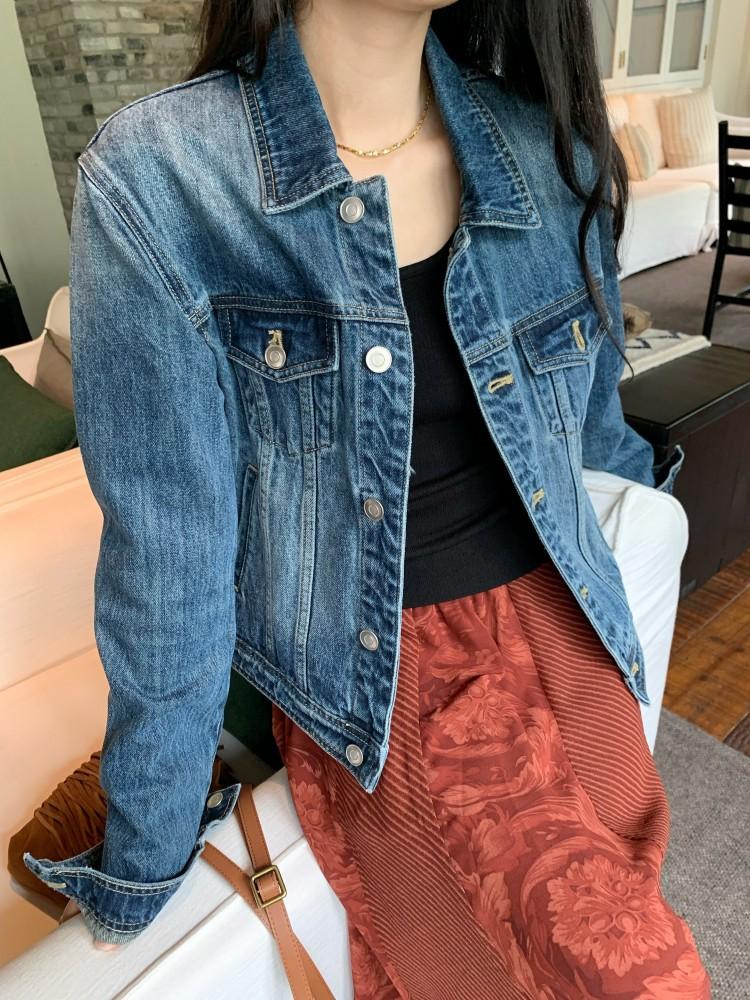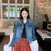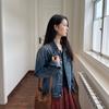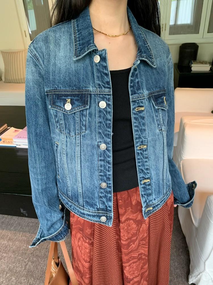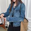 DIGM | Otoño 2025 Retro Americano Lavado Denim Desgastado Chaqueta Suelta para Mujer A0M009