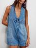 2025 Nuevo Amazon Transfronterizo Europeo y Americano Cuello Peter Pan Personalidad Moda Sin Mangas Lavado de Agua Mono de Mezclilla Shorts Ropa de Mujer