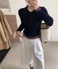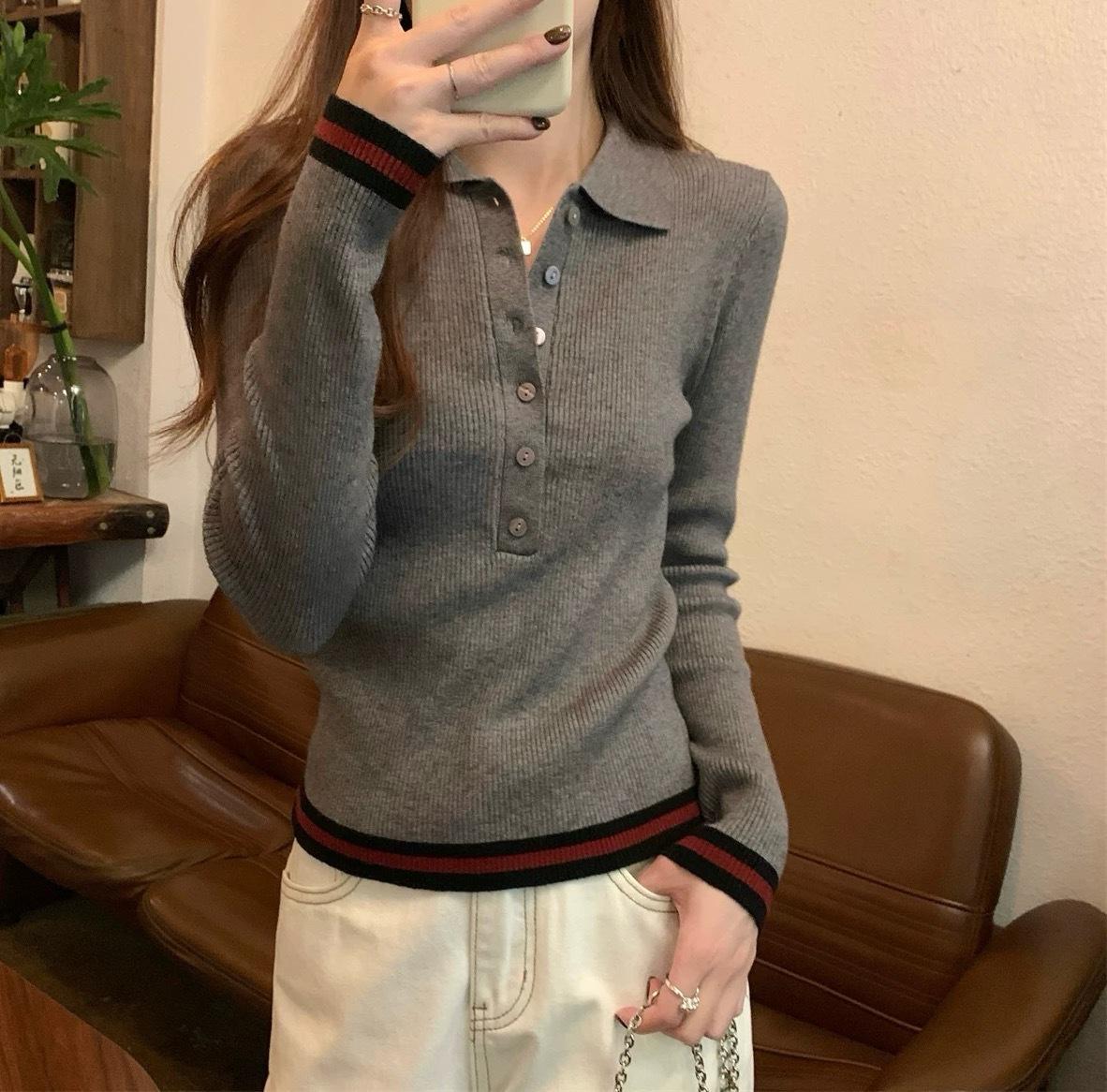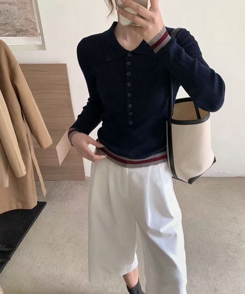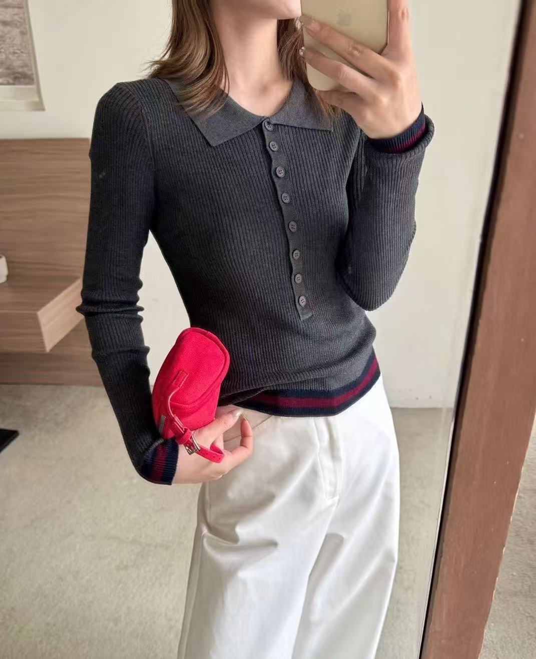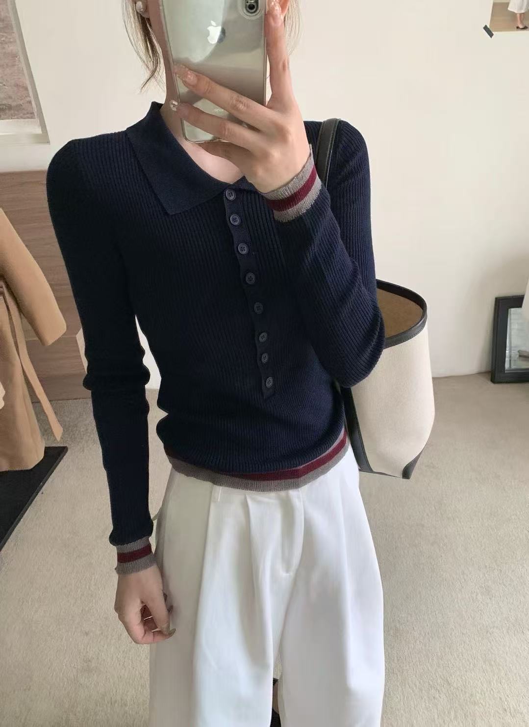 Suéter de Punto de Manga Larga con Cuello Vuelto de Medio Botón de Gama Alta 2025, Diseño de Bloques de Color Empalmado con Sentido del Diseño, Moda Otoño