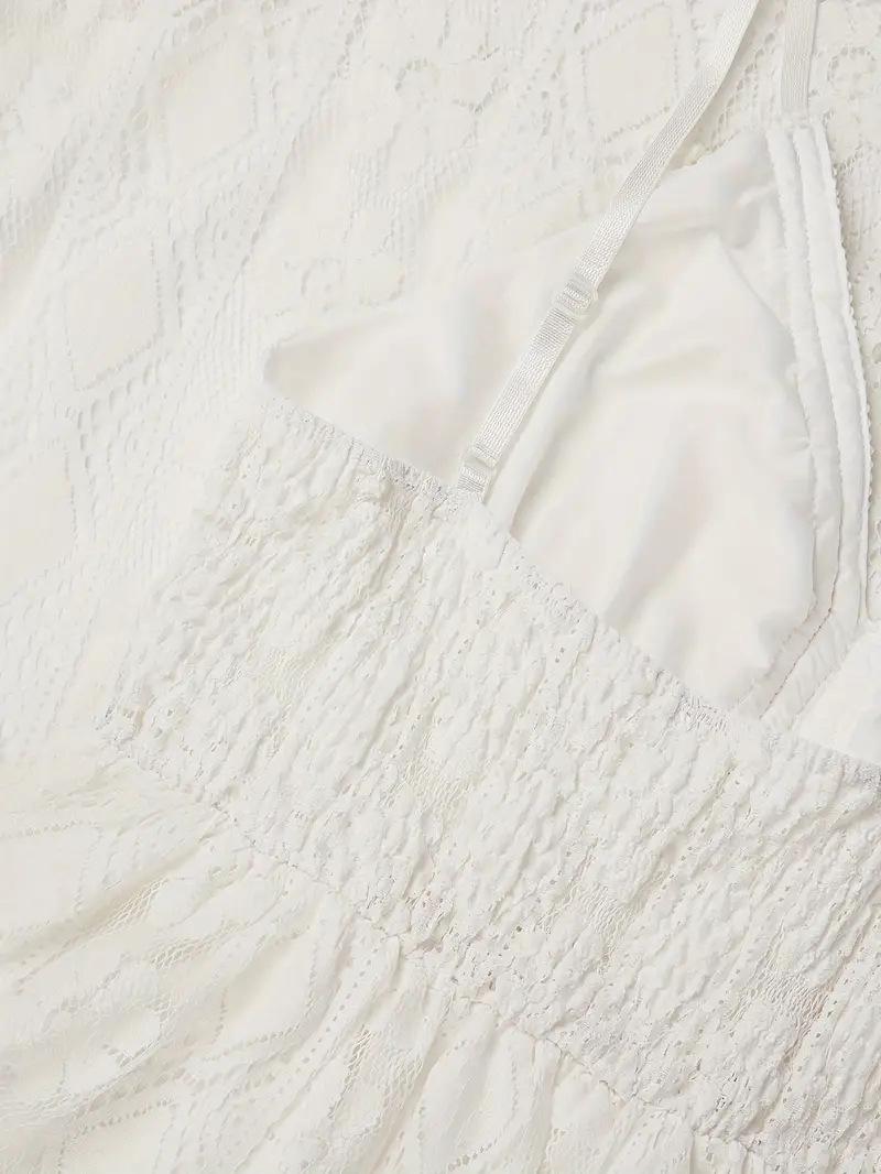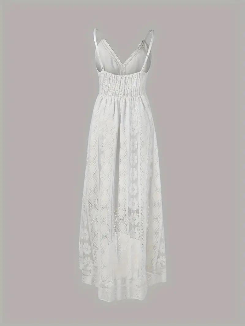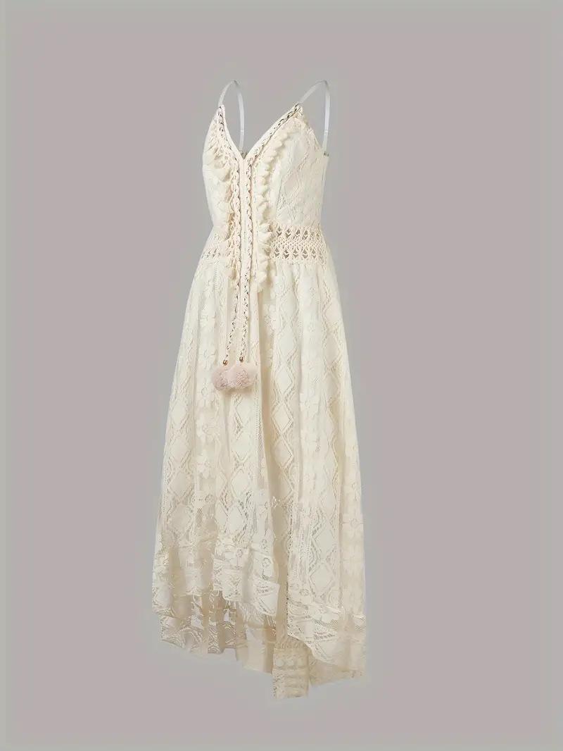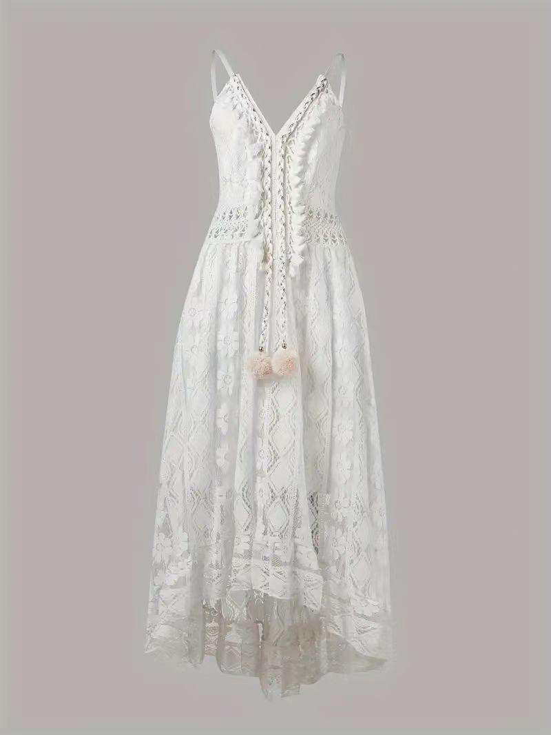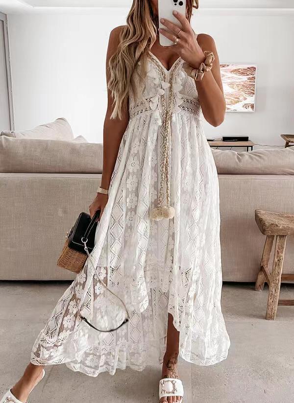 Vestido Largo de Verano 2024 Nuevo Europeo y Americano de Encaje con Tirantes y Vuelo Amplio Color Sólido