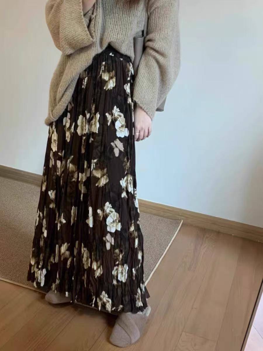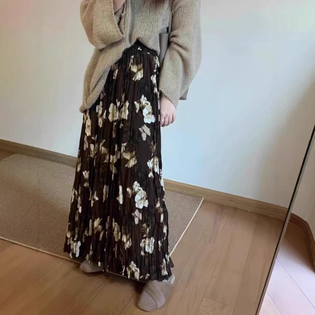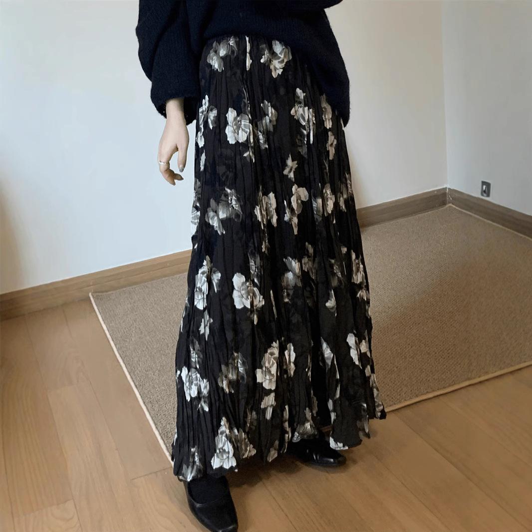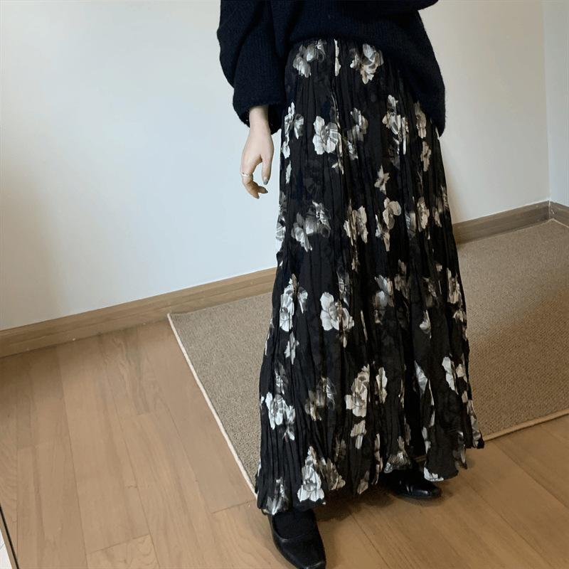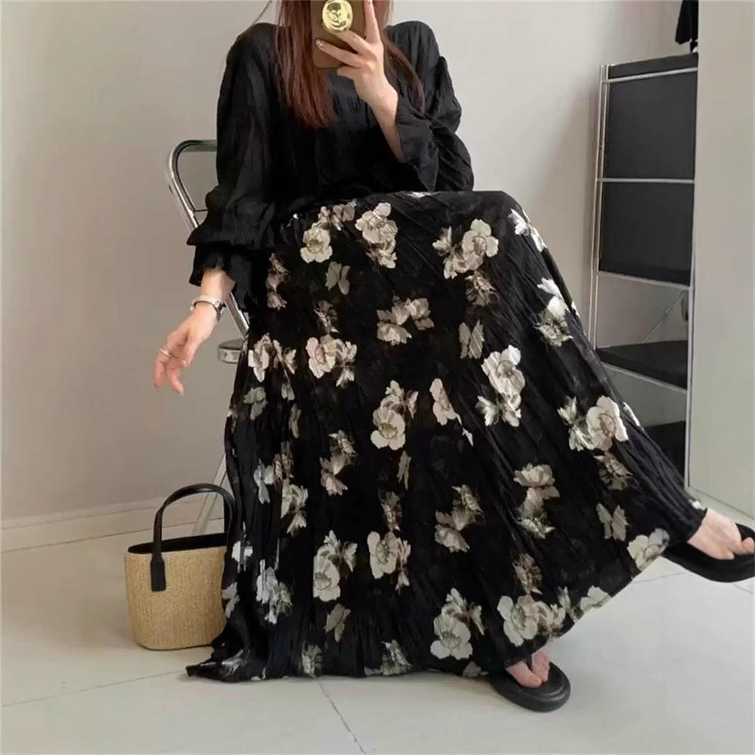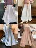 Nanyou Vestido Largo Línea A de Gran Vuelo Plisado Retro Francés de Alta Calidad 2025 Cintura Alta Adelgazante Elegante Falda Midi