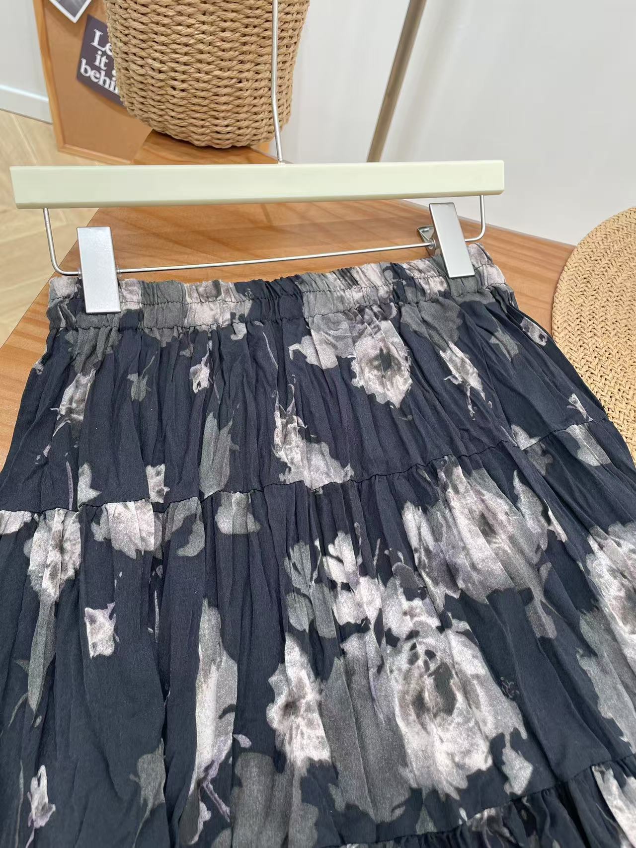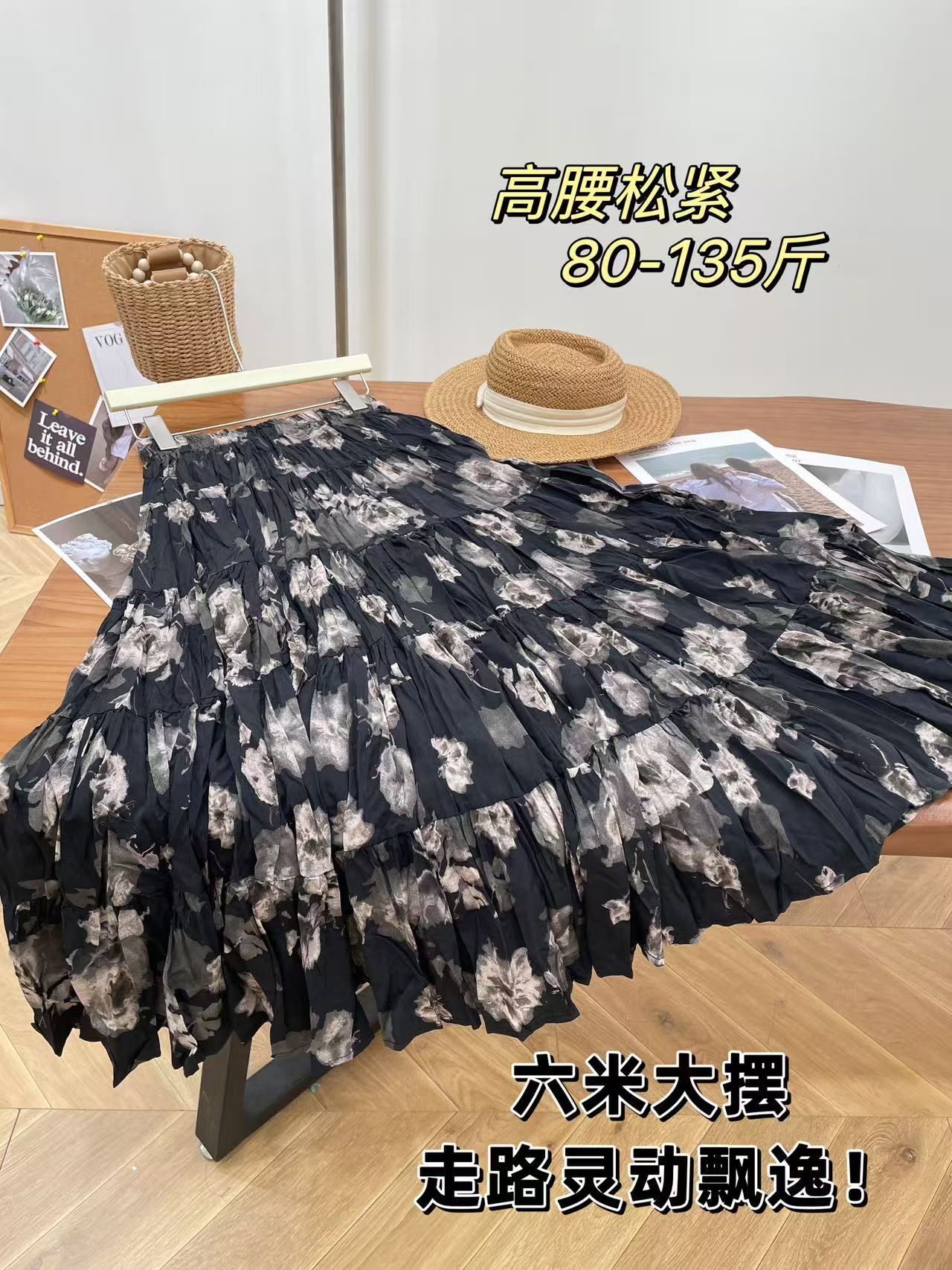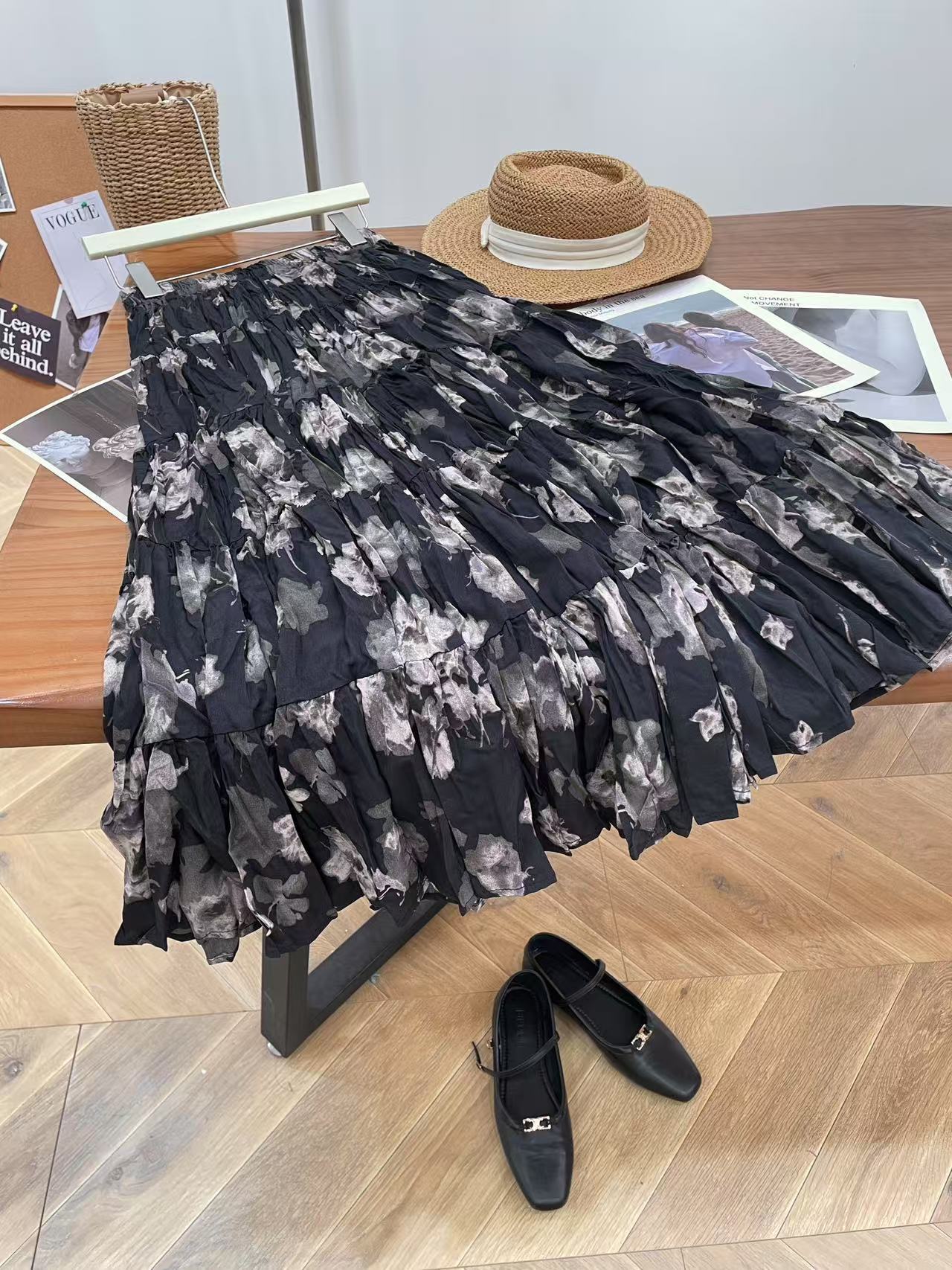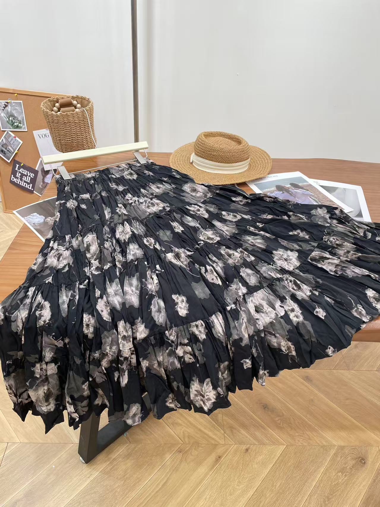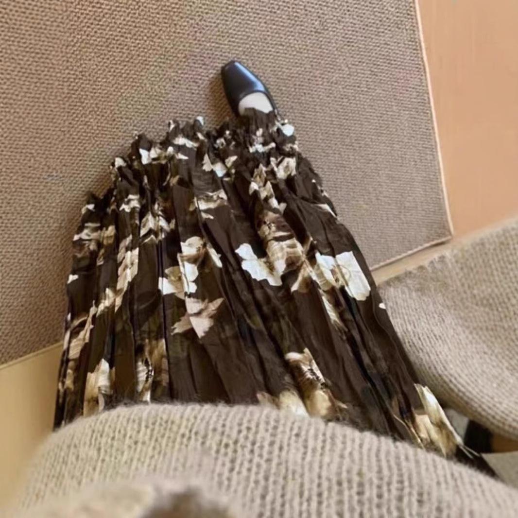 Nanyou Vestido Largo Línea A de Gran Vuelo Plisado Retro Francés de Alta Calidad 2025 Cintura Alta Adelgazante Elegante Falda Midi