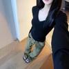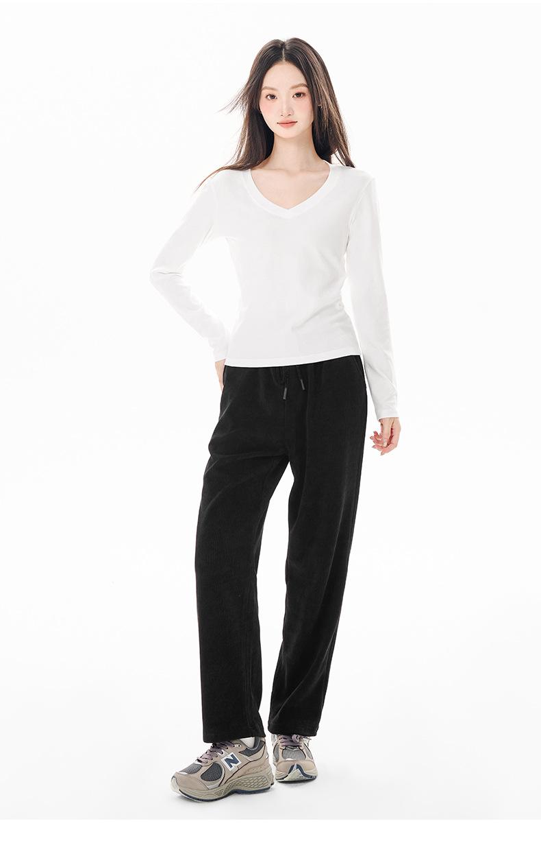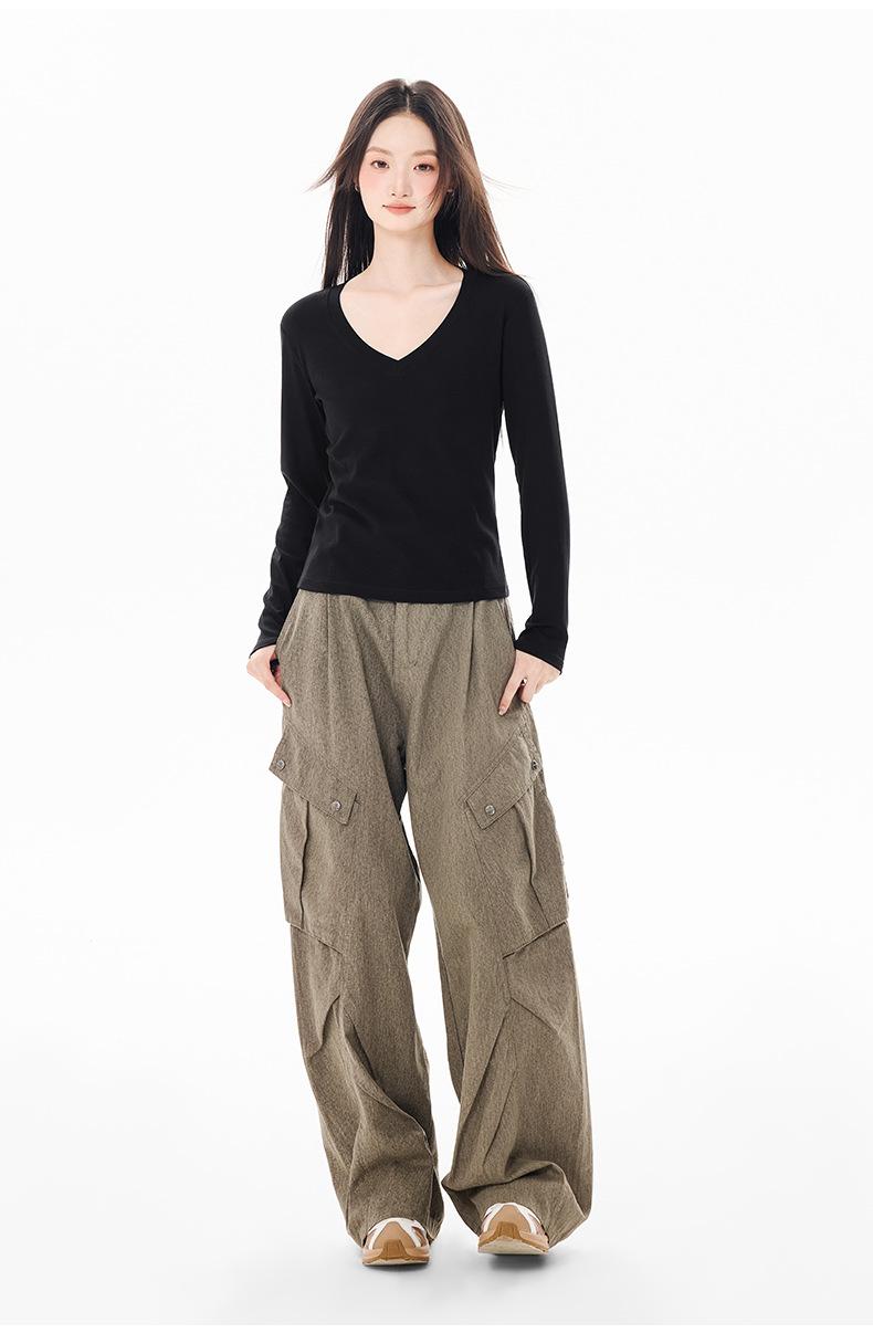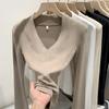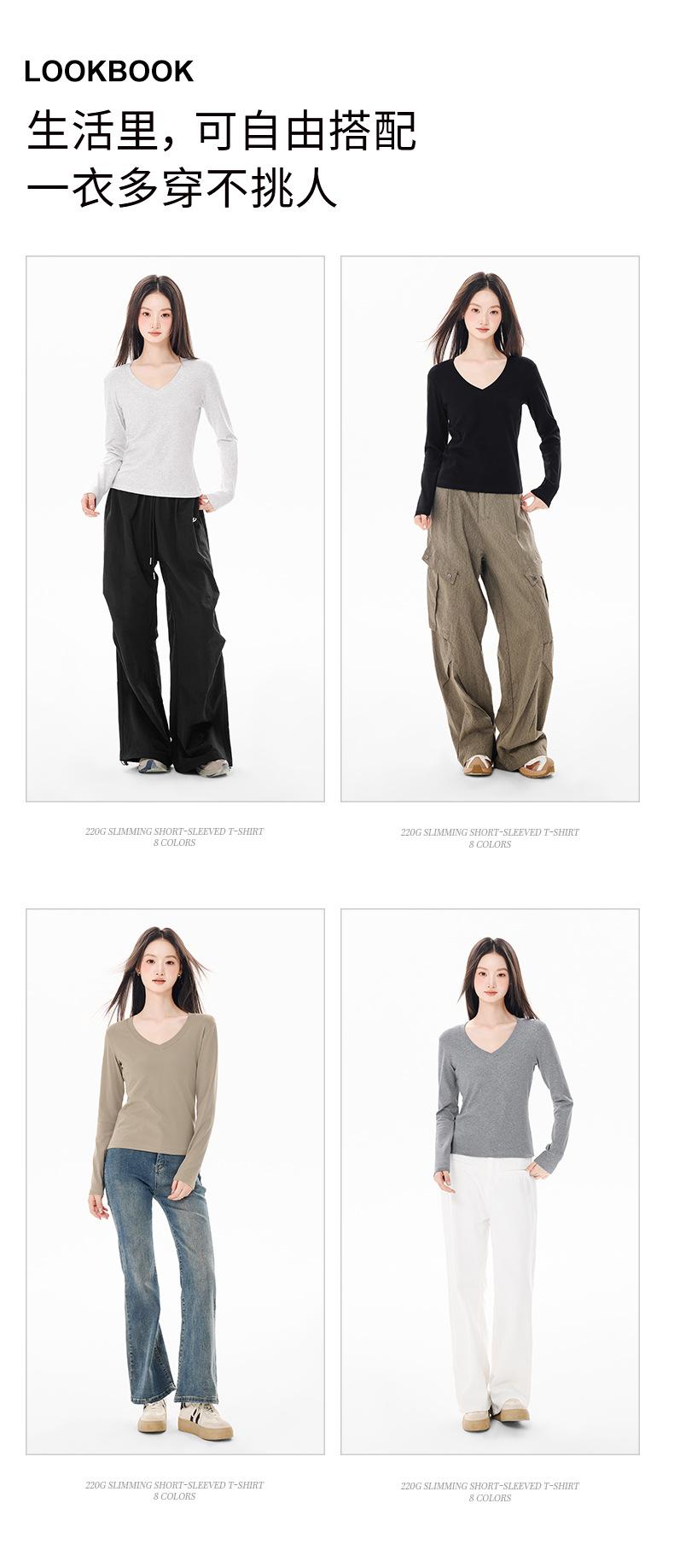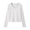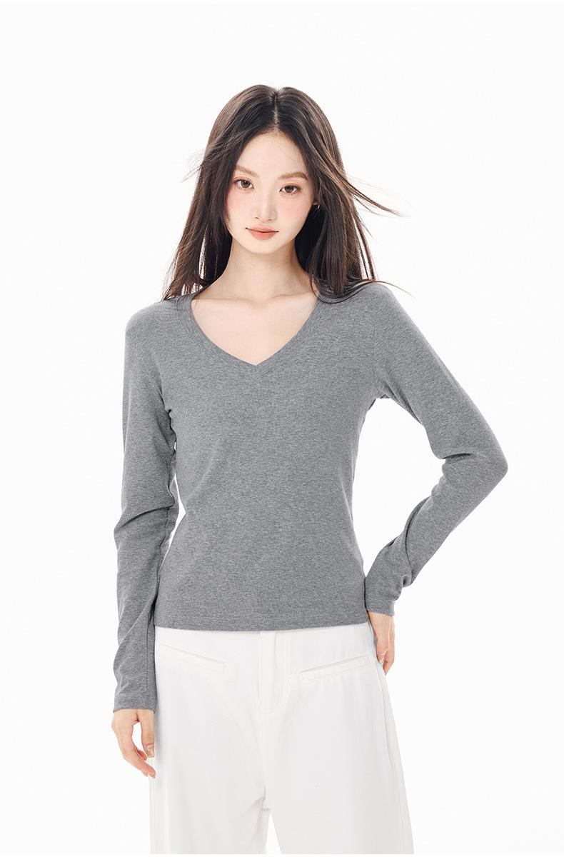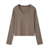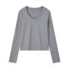 Camiseta de Manga Larga con Cuello en V de Color Sólido y Corte Slim para Mujer Otoño Nuevo Adelgazante Corto Chica Caliente Capa Interior Top Básico