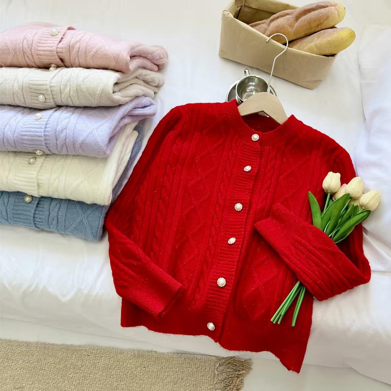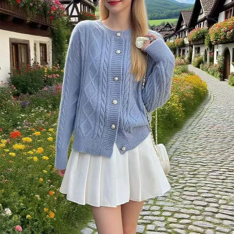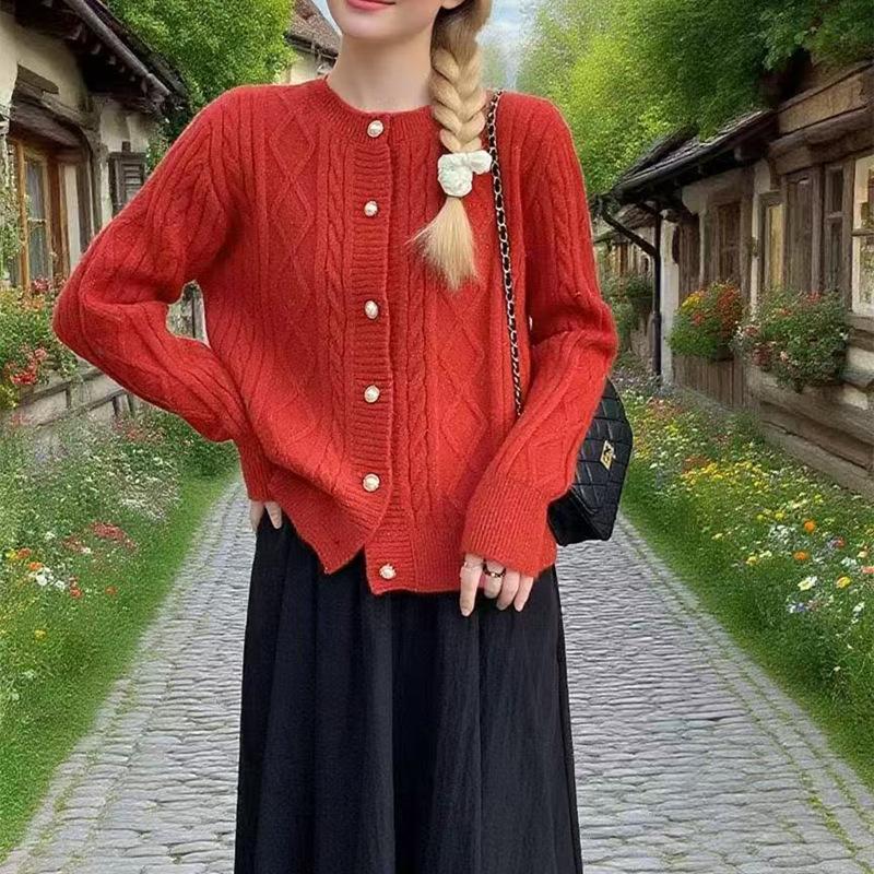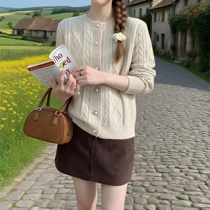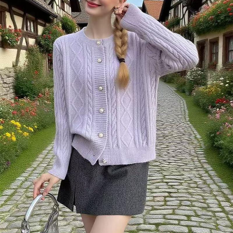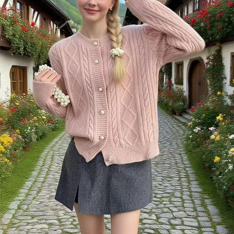 Abrigo suéter de punto trenzado de cuello redondo de otoño e invierno para mujer 2025 nuevo estilo coreano holgado abrigo de punto