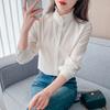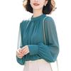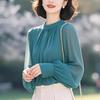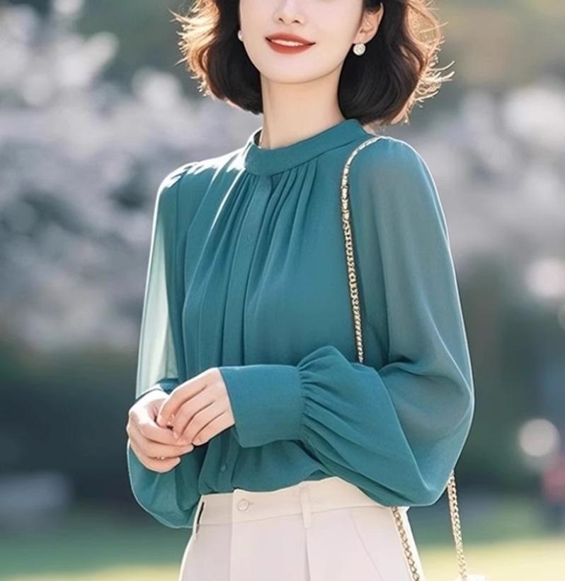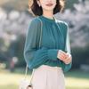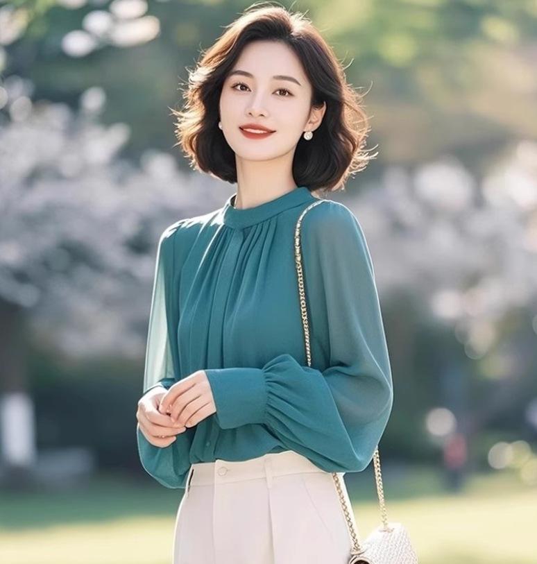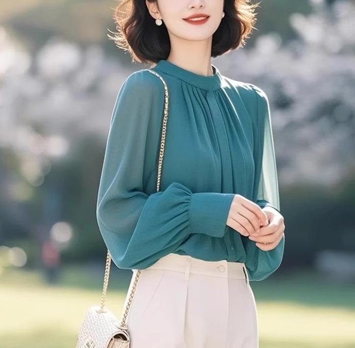 Camiseta de Gasa de Cuello Redondo Francés para Mujer 2025 Principios de Primavera Nueva Super Hermosa Estilo Occidental Camisa que Reduce la Edad